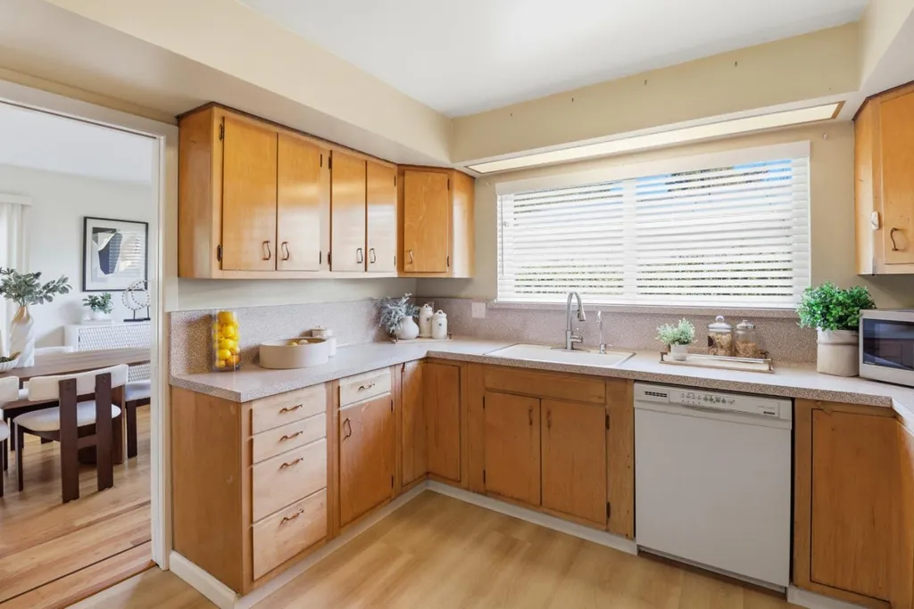One story home offers 2 bedrooms, 2-baths on a level corner lot. This home offers a sprawling living room with a fireplace, and a large dining room with access to the low-maintenance yard. A spacious kitchen offers abundant space and is adjacent to the dining room. There's also a 2 car attached garage with added storage as well as a separate laundry room. This home is a great opportunity to add your personal touch and modernize it to your liking. Centrally located and walking distance to shopping, dining, schools and major commute routes in the heart of the Peninsula.