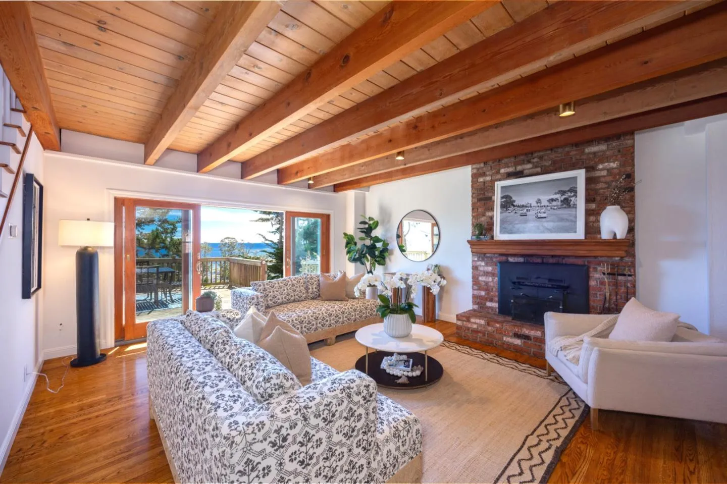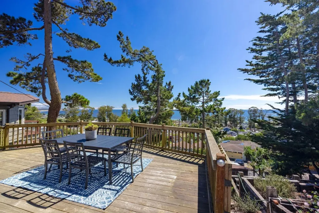 150K price adjustment on this custom Half Moon Bay home with sweeping ocean views! Perched above the harbor on a quiet El Granada cul-de-sac, this light-filled 4BR, 3BA retreat offers panoramic views of Mavericks surf break and open ocean. Natural materials and thoughtful design -- including open-beam ceilings and wood-clad accent walls -- create a sense of warmth and comfort, while expansive windows invite the seascape into nearly every room. The spacious living room opens to a large view deck, perfect for entertaining or relaxing in the jacuzzi at sunset. The open kitchen connects seamlessly to the dining and living areas -- ideal for gatherings and everyday living. The main level also features a junior suite with ocean views, plus a guest bedroom and full bath for added flexibility. Upstairs, the primary suite includes a vaulted-ceiling, fireplace, walk-in closet, and ensuite bath with rare Koa wood vanities and mirrors sourced from Hawaii. A 4th bedroom with built-ins currently serves as an office, flowing into a sunroom bathed in natural light and framed by panoramic views. Outside, raised garden beds and a charming chicken coop add a touch of homestead charm. Just moments from Quarry Park, the Coastal Trail, and the beach, this is the relaxed coastal lifestyle -- elevated.