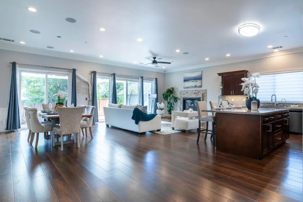 Live stylishly in Cupertino - Monta Vista area! This beautifully renovated single-story home offers 4 spacious bedrooms, 4.5 modern bathrooms (each equipped with Japanese-style electric bidet) and a bonus office for added flexibility. Entire home was remodeled in 2019 (95% complete renovation), blending modern luxury effortless comfort. Enjoy 2,635 sq. ft. of open living space (buyer to verify) on a generous 9,276 sq. ft. lot, featuring high ceilings, elegant crown molding, and ensuite baths in every bedroom. The gourmet kitchen flows into bright living and dining areas, perfect for hosting. Outside, this corner lot property provides a decorative stone facade, roomy driveway for 4 vehicles, RV parking, and a 2-car garage deliver everyday convenience. The peaceful backyard, with mature lemon and orange trees, invites relaxation. Sustainable living supported by a 20 KW solar system - grandfathered under NEM 2.0, can power most or all household energy needs, plus two EVs. Prime location near apple HQ, shopping, parks, and top-rated Cupertino schools-Lincoln, Kennedy, Monte Vista. This home checks all the boxes: smart, stylish, and brilliantly located!