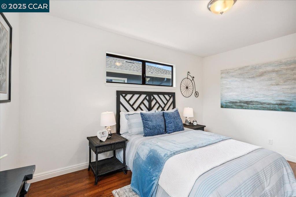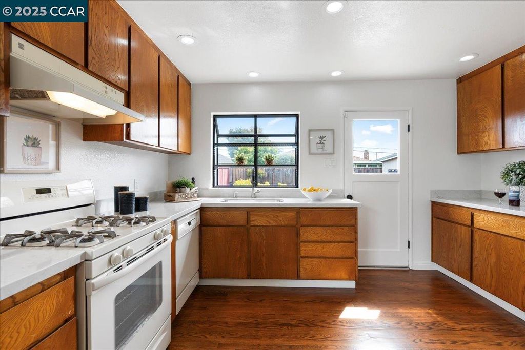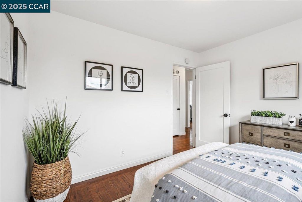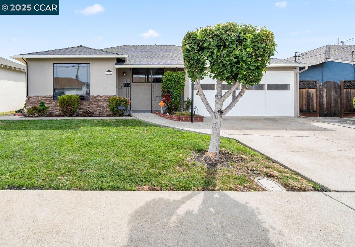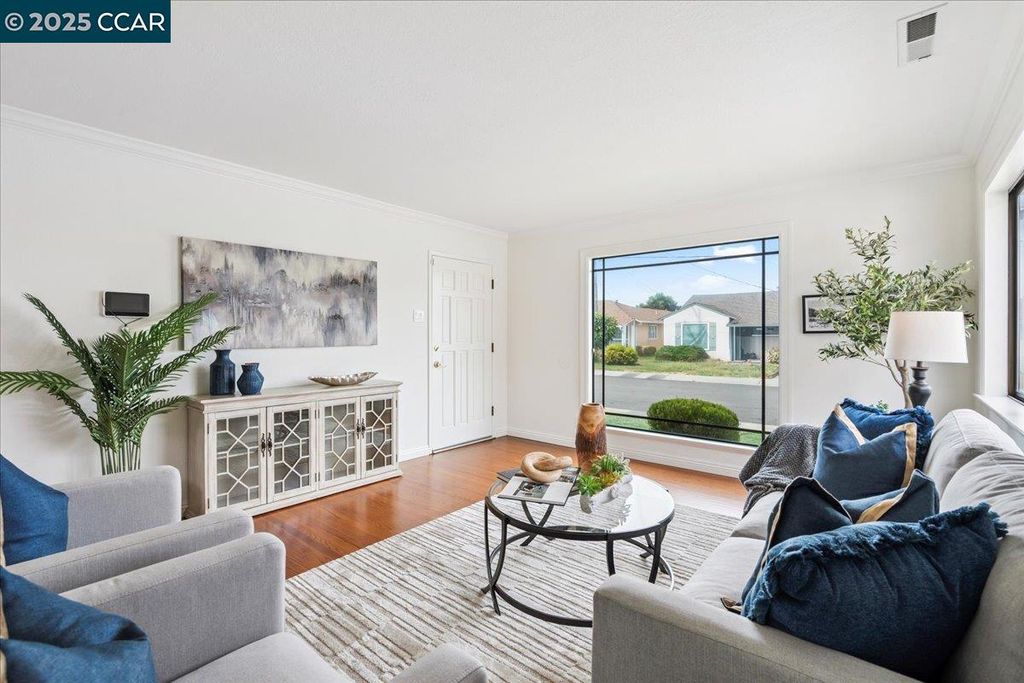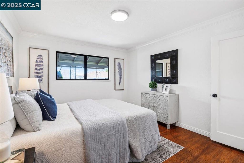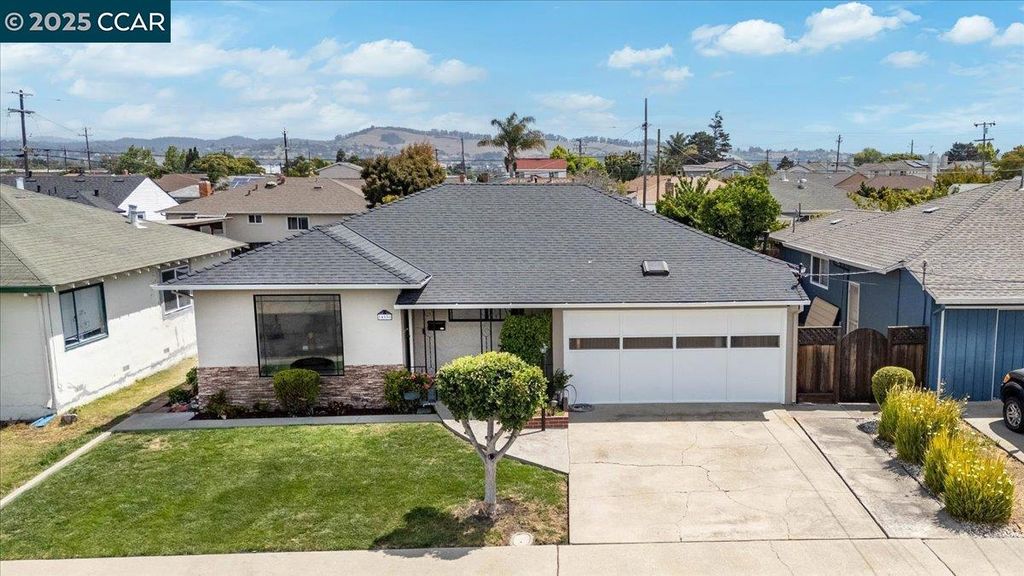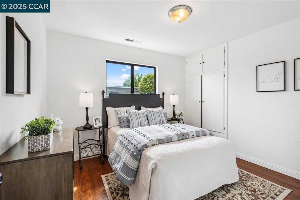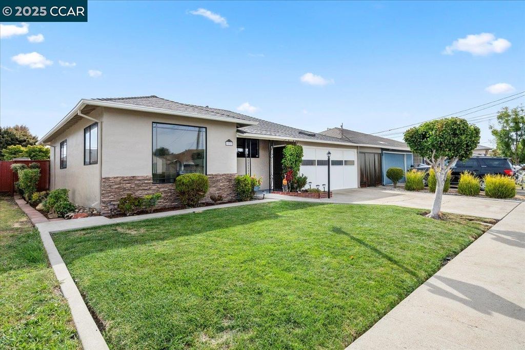Inviting neighborhood! This AMAZING mid-century three bedroom home in Bonaire Estates, adjacent to Washington Manor, is situated on an approximately 5300 square foot lot offering a detached shed with incredible potential for an ADU! There is an expansive backyard with freshly landscaped gardens, spacious patio, perfect for entertaining, and mature fruit trees - guava, passion fruit, lime and lemon! As you enter this lovely home, you will enjoy a light and airy design with original RED OAK HARDWOOD FLOORING, crown moldings, spacious bedrooms, cedar-lined closets, fresh interior and exterior paint, and an expansive picture window in the living room. A NEW ROOF was installed in 2024, and there is central heating, updated lighting, and an open kitchen with beautifully maintained wood cabinets, gas range, pantry, and NEW QUARTZ COUNTERTOPS! This highly sought after Bonaire neighborhood enjoys a high walk score and is close to several local vibrant eateries, great schools, Bay Fair Mall, 880/580/238 freeways, Kaiser Hospital, Washington Manor Park, Bonaire Park, local Library branch, BART, and picturesque San Leandro Marina! Truly a MUST SEE!