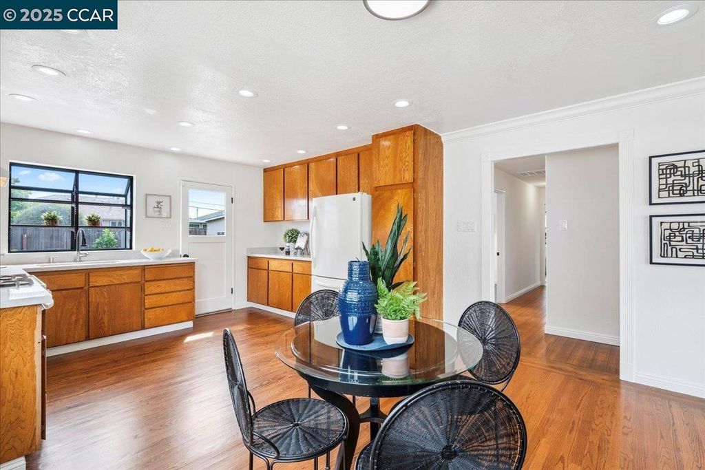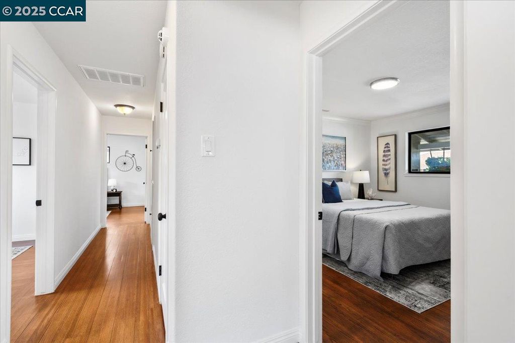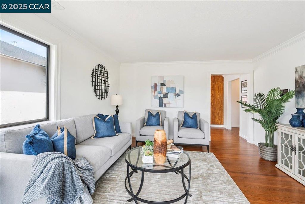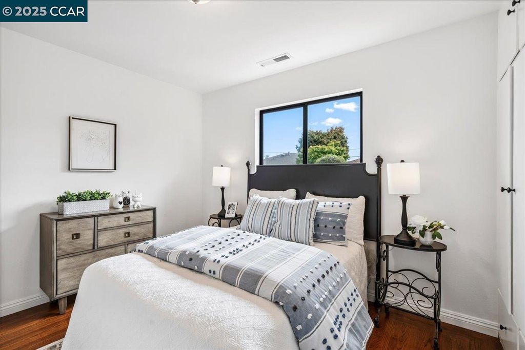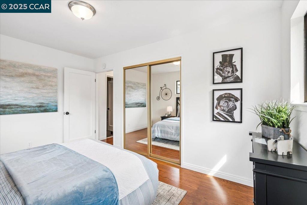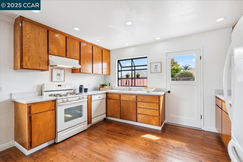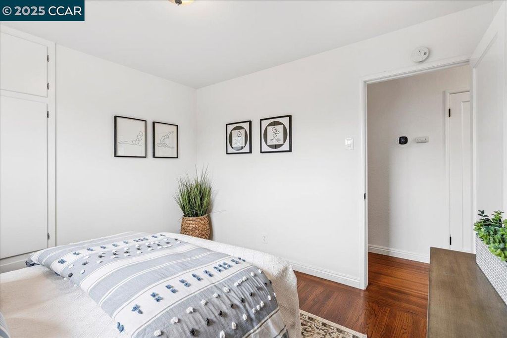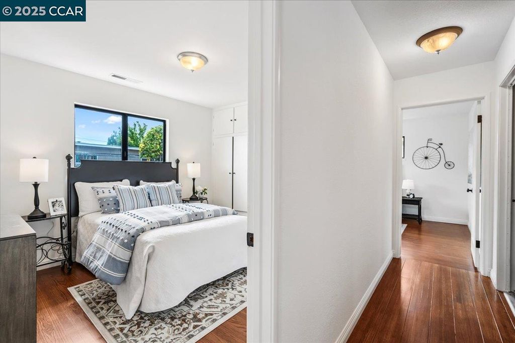 Inviting neighborhood! This AMAZING mid-century three bedroom home in Bonaire Estates, adjacent to Washington Manor, is situated on an approximately 5300 square foot lot offering a detached shed with incredible potential for an ADU! There is an expansive backyard with freshly landscaped gardens, spacious patio, perfect for entertaining, and mature fruit trees - guava, passion fruit, lime and lemon! As you enter this lovely home, you will enjoy a light and airy design with original RED OAK HARDWOOD FLOORING, crown moldings, spacious bedrooms, cedar-lined closets, fresh interior and exterior paint, and an expansive picture window in the living room. A NEW ROOF was installed in 2024, and there is central heating, updated lighting, and an open kitchen with beautifully maintained wood cabinets, gas range, pantry, and NEW QUARTZ COUNTERTOPS! This highly sought after Bonaire neighborhood enjoys a high walk score and is close to several local vibrant eateries, great schools, Bay Fair Mall, 880/580/238 freeways, Kaiser Hospital, Washington Manor Park, Bonaire Park, local Library branch, BART, and picturesque San Leandro Marina! Truly a MUST SEE!