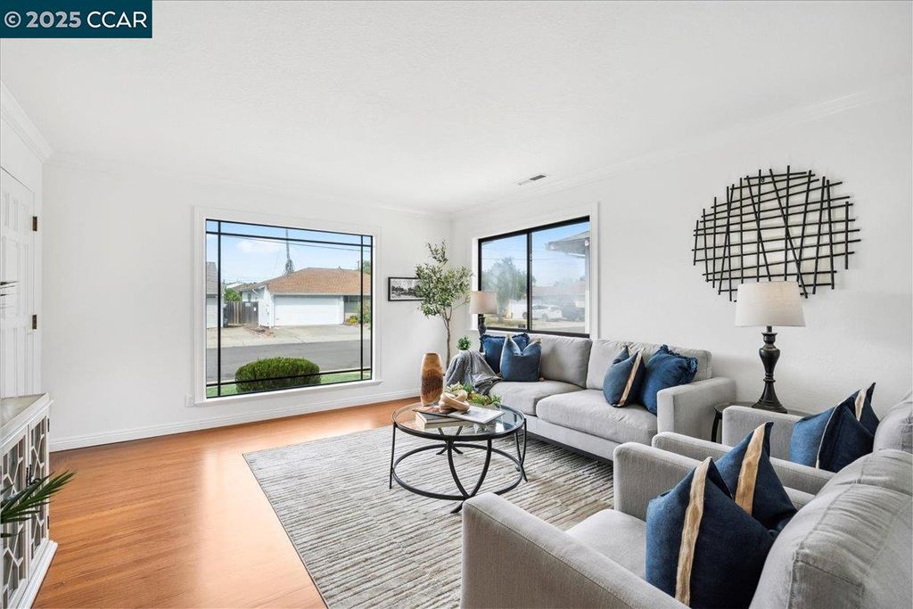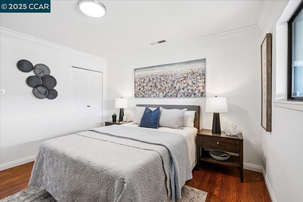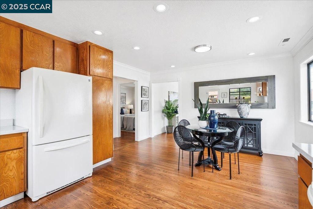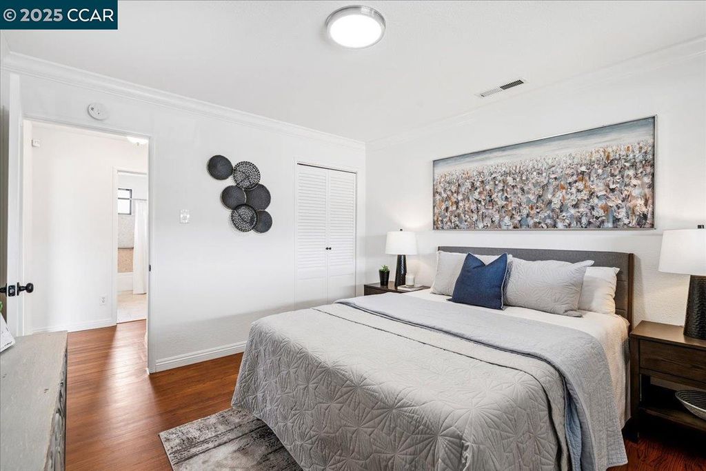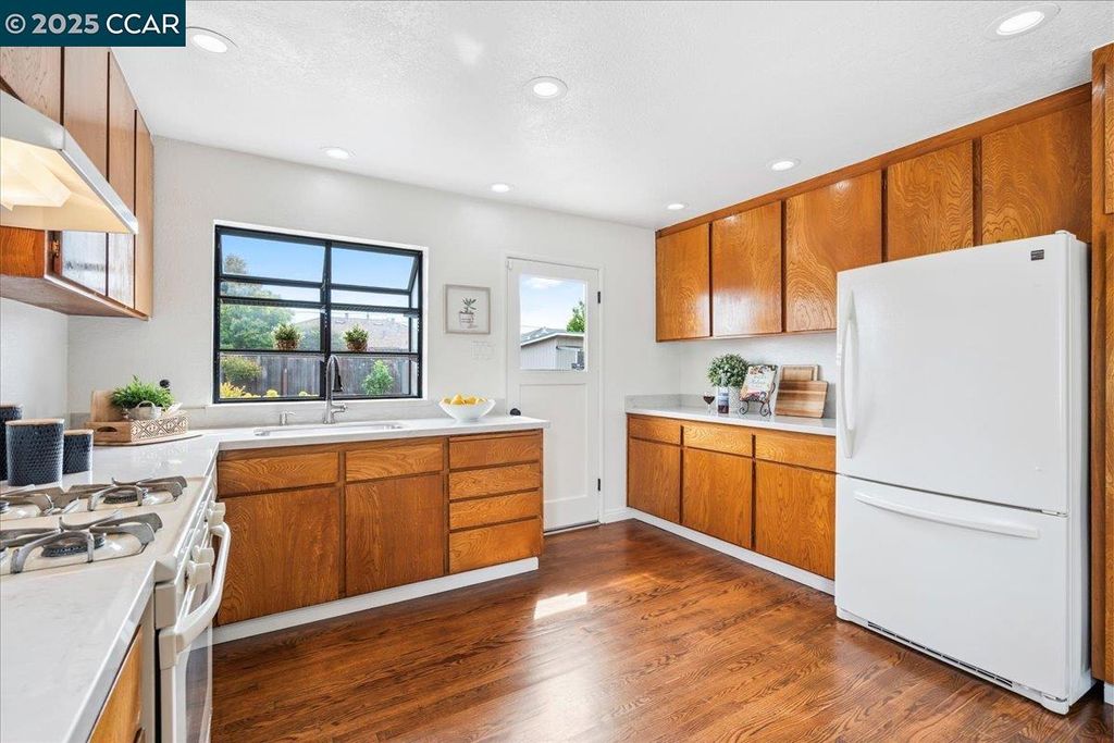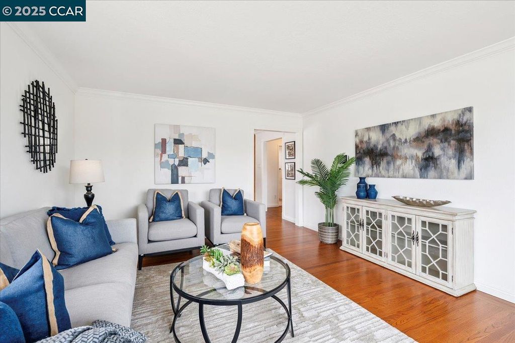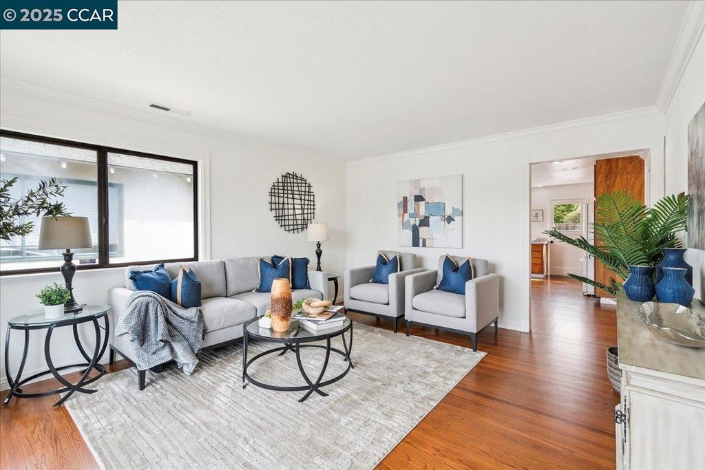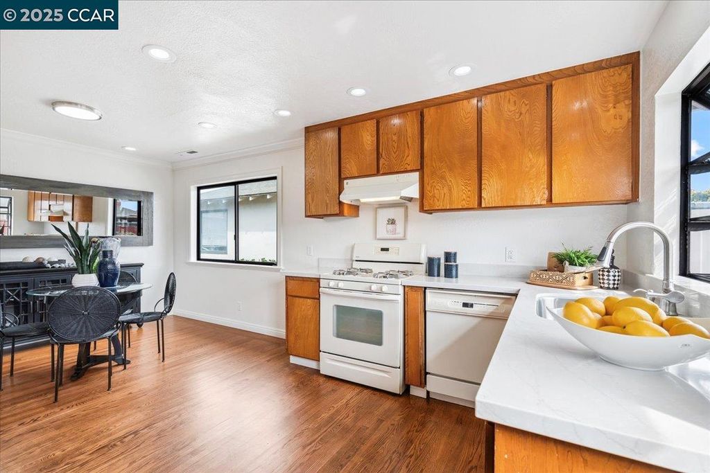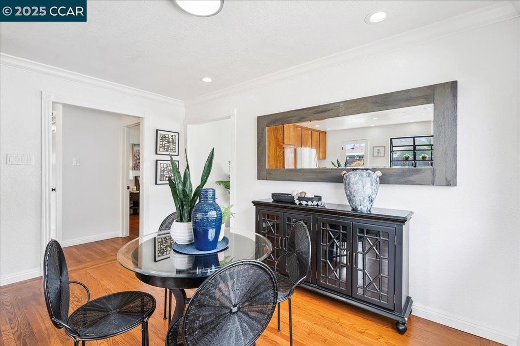 Inviting neighborhood! This AMAZING mid-century three bedroom home in Bonaire Estates, adjacent to Washington Manor, is situated on an approximately 5300 square foot lot offering a detached shed with incredible potential for an ADU! There is an expansive backyard with freshly landscaped gardens, spacious patio, perfect for entertaining, and mature fruit trees - guava, passion fruit, lime and lemon! As you enter this lovely home, you will enjoy a light and airy design with original RED OAK HARDWOOD FLOORING, crown moldings, spacious bedrooms, cedar-lined closets, fresh interior and exterior paint, and an expansive picture window in the living room. A NEW ROOF was installed in 2024, and there is central heating, updated lighting, and an open kitchen with beautifully maintained wood cabinets, gas range, pantry, and NEW QUARTZ COUNTERTOPS! This highly sought after Bonaire neighborhood enjoys a high walk score and is close to several local vibrant eateries, great schools, Bay Fair Mall, 880/580/238 freeways, Kaiser Hospital, Washington Manor Park, Bonaire Park, local Library branch, BART, and picturesque San Leandro Marina! Truly a MUST SEE!