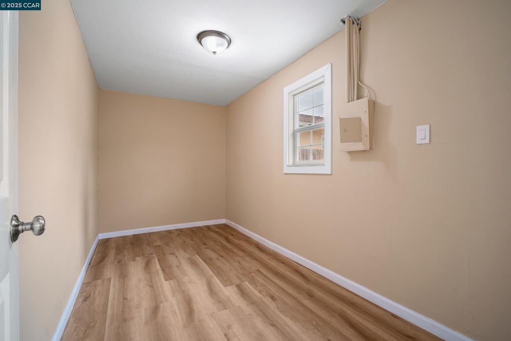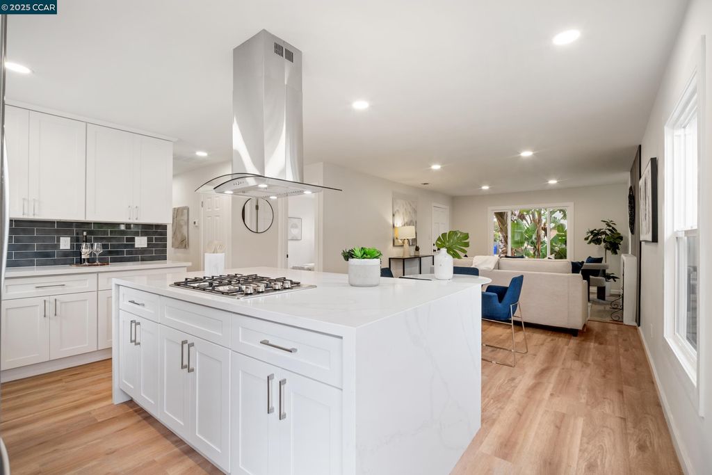Step inside this beautifully updated San Leandro home offering 3 bedrooms and 2 stylishly renovated bathrooms in the main house. Newly painted inside and out, and recently updated with new flooring, lighting, + much more! This home features a light-filled living room with cozy fireplace that flows into the dining area and stunning kitchen. The kitchen is designed for both cooking and entertaining, complete with white shaker cabinets, a statement blue tile backsplash, stainless steel appliances, a floating hood, and a gas range for every culinary delight. The expansive quartz waterfall island doubles as a breakfast bar for casual seating. Unwind in either spa-like bathroom, choose from a walk-in shower or luxuriate in the tub. The generous bedrooms provide comfort and flexibility for your needs. Step outside and find inviting yards with mature fruit trees, garden beds ready for planting, a private well, and a serene seating area. This home also includes a 630 SF detached ADU with a flexible 4th bedroom, 3rd full bath, living area, and office, perfect for extended family, guests, or rental income. Located near Lake Chabot, parks, shopping, dining, commuter routes and transit, this home blends modern style with everyday functionality. Come experience all this San Leandro gem offers.