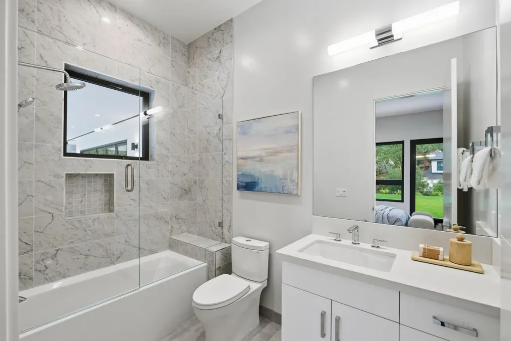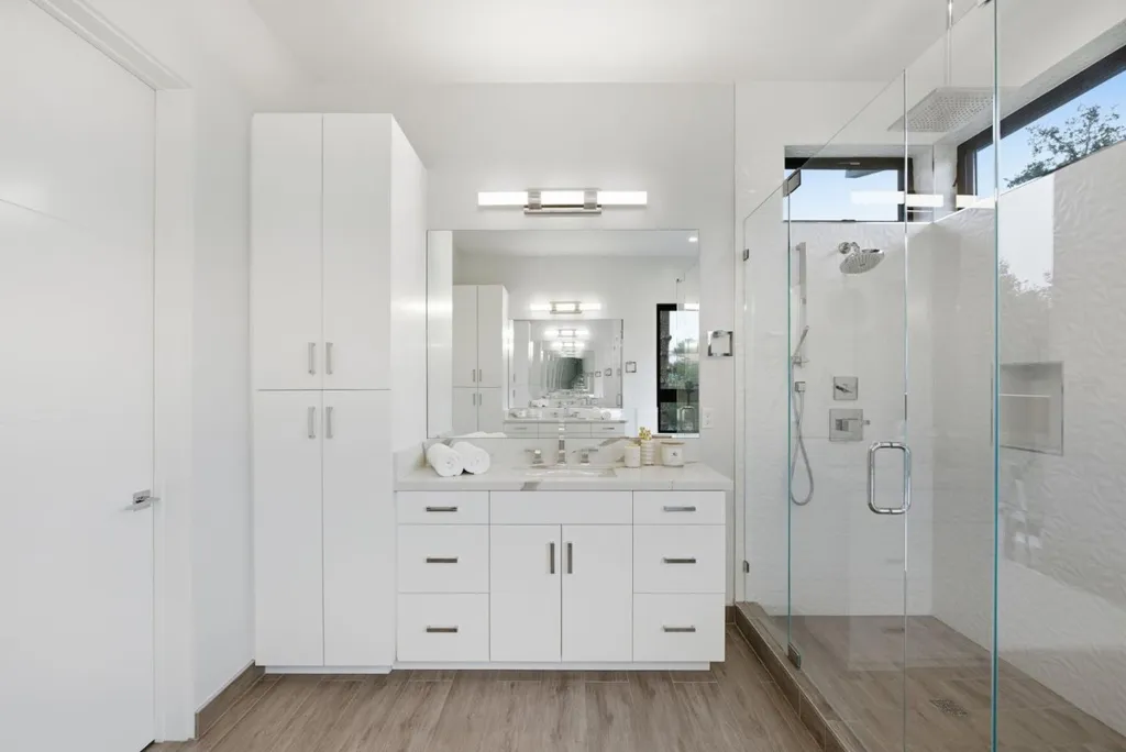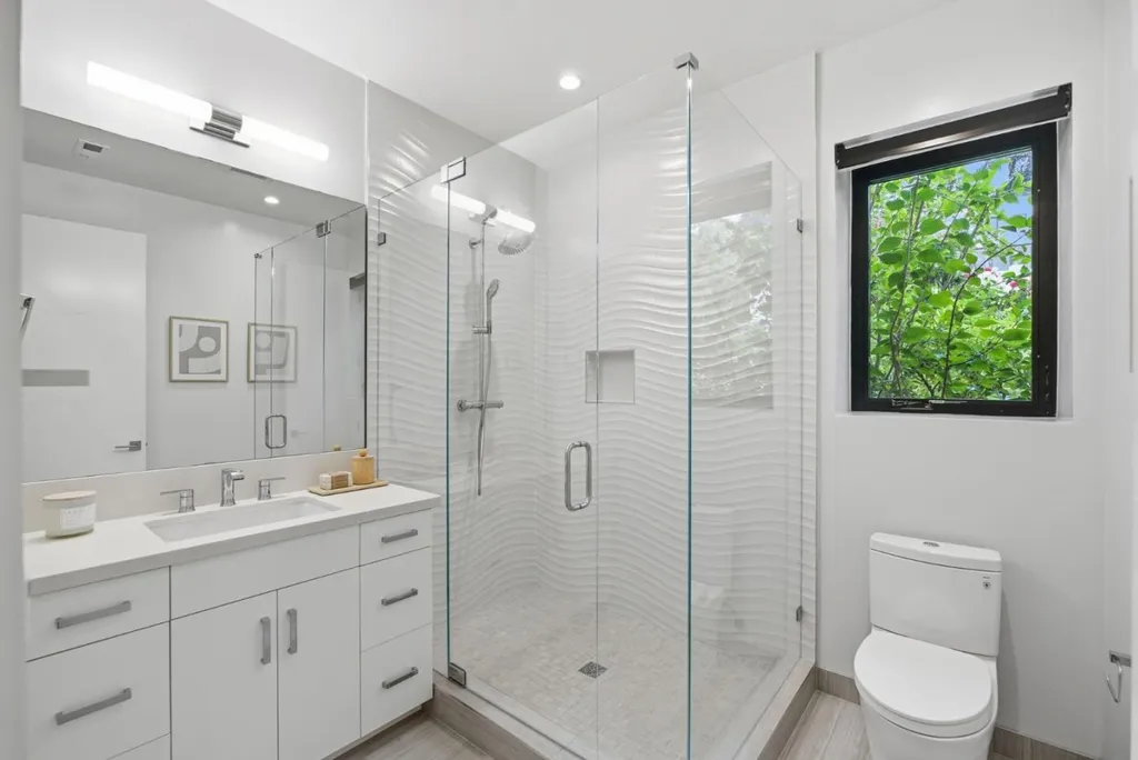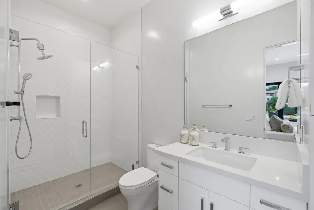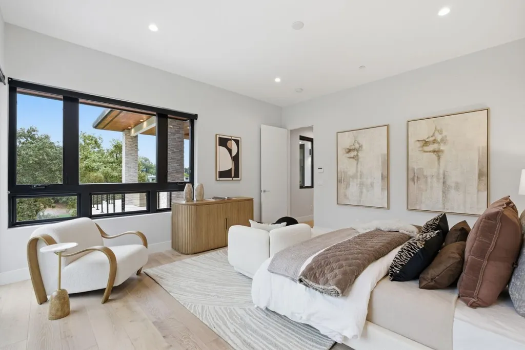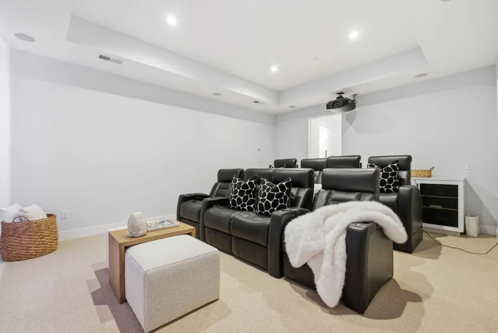 Completed in 2019, this custom-built Los Altos estate combines timeless architecture with modern sophistication, designed by prestigious architect Gary Kohlsaat, and overlooks the golf course. The home features five private bedroom suites including one showcased as an executive office and a fully furnished state of the art home theatre with high end projector, 120 inch screen, and 7.1 surround sound. Expansive La Cantina glass doors, soaring ceilings, and skylights fill the open layout with natural light. The living and family rooms feature integrated 5.1 surround sound systems. The chefs kitchen offers a large island, quartz countertops, and premium appliances. Smart home technology includes multi zone climate control, automated blinds, and an app controlled Sonos sound system extending indoors and outdoors. A whole house water softener system enhances comfort. The resort style backyard offers a full outdoor kitchen with pizza oven, BBQ, and burner, a twelve seat fire pit, jacuzzi, putting green, and lush landscaping. Additional highlights include wide plank hardwood floors, designer lighting, and a three car garage with EV hookup. Ideally located near downtown Los Altos, the Country Club, and top rated schools.