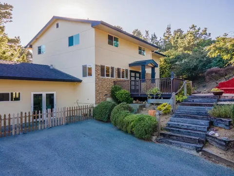 Nestled in the serene coastal community of Moss Beach, this hidden gem offers a perfect blend of tranquility and convenience. This beautiful country property features 2,800 sqft house with 4 spacious bedrooms plus an office and 2.5 well-appointed bathrooms on a large 2.8 acre lot. Enter into the thoughtfully designed, updated kitchen boasting modern appliances, a pantry, and ample counter space with an island that flows into the dining area. The inviting living room features a cozy fireplace and opens to a back deck, perfect for entertaining and enjoying the coastal air. The downstairs also includes a laundry closet, a half bath, and a flexible space for all your lifestyle needs. Upstairs, find the primary bedroom with a fireplace, recently updated ensuite bath, and walk-in closet, along with three additional bedrooms and a full bath with dual vanities. The property includes a 2-car carport and a long driveway with ample parking. There's space for horses with an arena and pasture area, plus a possible additional building site for an ADU or barn. Located just minutes from Highway 1, this home offers easy access to beaches, shopping, and commute routes north to San Francisco and south to downtown Half Moon Bay and Highway 92.