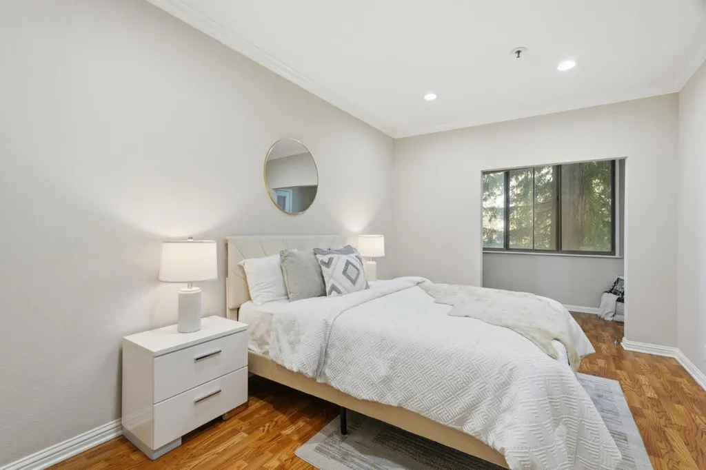 Discover effortless luxury in the highly sought-after Redwood Country communityone of Santa Claras hidden gems. Surrounded by towering redwoods, this beautifully updated condo blends modern living with serene natural surroundings. The open, airy floor plan features a spacious bedroom with walk-in closet plus a versatile flex space ideal for a home office, nursery, or creative studio. The living and dining areas flow together seamlessly, creating an inviting setting for entertaining or relaxing in comfort. The chef-inspired kitchen showcases granite slab countertops, maple cabinetry, stainless steel appliances, and tile flooring-perfect for everyday meals or gourmet cooking. The upgraded bathroom includes dual sinks and a tub/shower with elegant tile surround, with access from both the bedroom and hallway. Fresh two-tone paint, laminate flooring, and recessed lighting give the home a polished, move-in-ready feel. Enjoy resort-style amenities including a sparkling pool, spa, and gym, all just steps away. With an unbeatable Santa Clara location and easy freeway access, this home delivers exceptional lifestyle, convenience, and value.