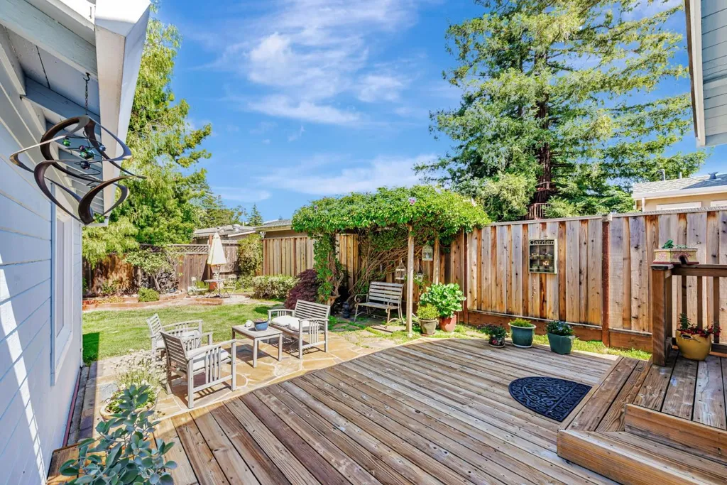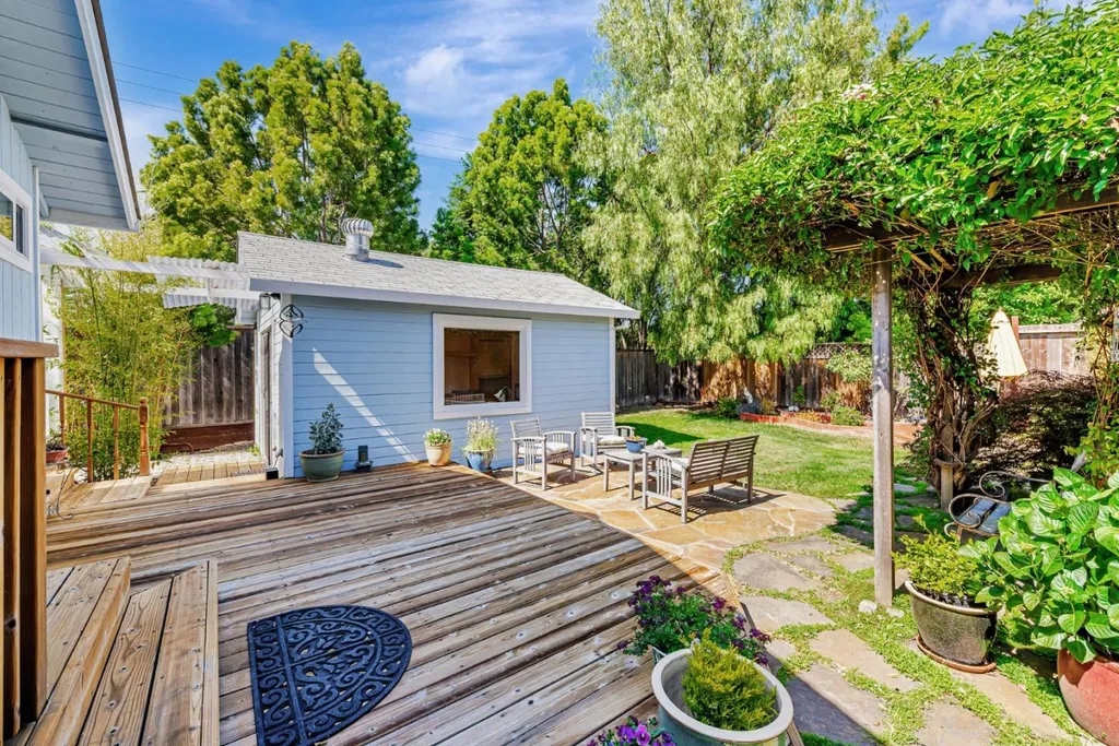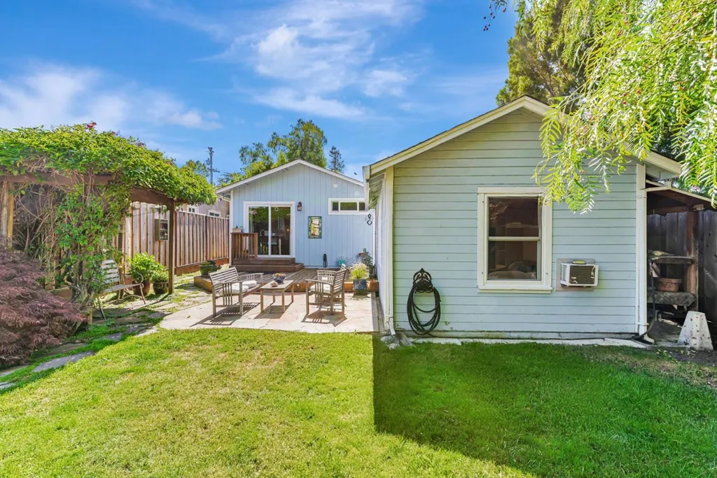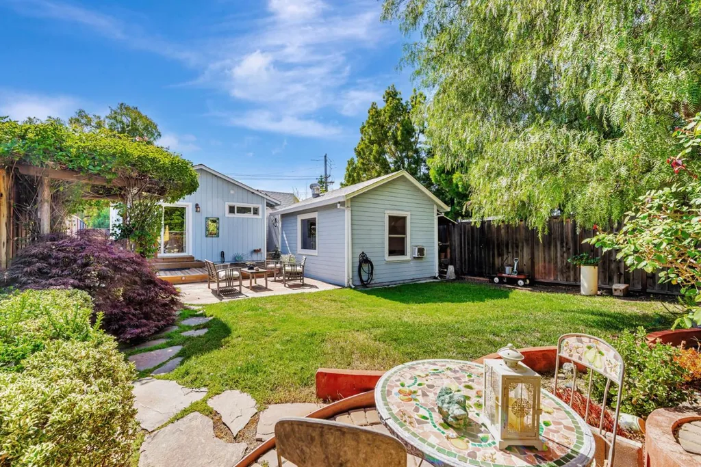 Nestled on a picturesque tree-lined street in Mt. Carmel, this charming home offers classic character & modern comfort. The home includes hardwood floors, sun-filled kitchen featuring granite countertops, stainless steel appliances, tumbled subway backsplash, and a skylight that fills the space in natural light. The living room features charming true divided wooden windows, a cozy fireplace and recessed lighting. A private office nook off the primary bedroom provides a dedicated space for work or study. The hall bathroom features a clawfoot tub that adds vintage charm. Detached bonus unit in the backyard offers versatile space for a home office or studio. Newer roof installed in 2022. White picket fence and pavered driveway enhances the home's curb appeal, while the private backyard deck and flagstone patio offer serene retreats for relaxation or entertaining. The garage is equipped with built-in cabinetry, providing ample storage space to keep your belongings organized and easily accessible. Central A/C. Located just a short distance from downtown Redwood City, residents enjoy easy access to a variety of shops, restaurants, and entertainment options. The neighborhood is renowned for its strong sense of community, with quarterly block parties fostering neighborly connections.