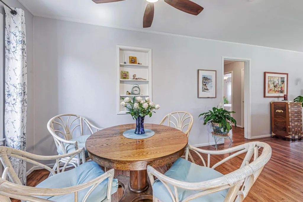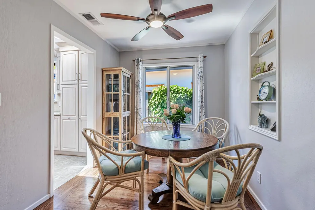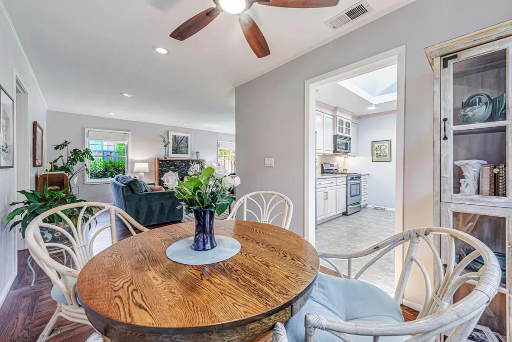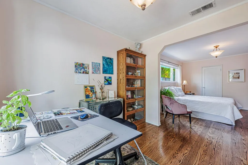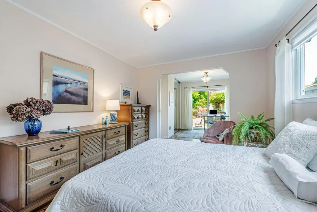 Nestled on a picturesque tree-lined street in Mt. Carmel, this charming home offers classic character & modern comfort. The home includes hardwood floors, sun-filled kitchen featuring granite countertops, stainless steel appliances, tumbled subway backsplash, and a skylight that fills the space in natural light. The living room features charming true divided wooden windows, a cozy fireplace and recessed lighting. A private office nook off the primary bedroom provides a dedicated space for work or study. The hall bathroom features a clawfoot tub that adds vintage charm. Detached bonus unit in the backyard offers versatile space for a home office or studio. Newer roof installed in 2022. White picket fence and pavered driveway enhances the home's curb appeal, while the private backyard deck and flagstone patio offer serene retreats for relaxation or entertaining. The garage is equipped with built-in cabinetry, providing ample storage space to keep your belongings organized and easily accessible. Central A/C. Located just a short distance from downtown Redwood City, residents enjoy easy access to a variety of shops, restaurants, and entertainment options. The neighborhood is renowned for its strong sense of community, with quarterly block parties fostering neighborly connections.