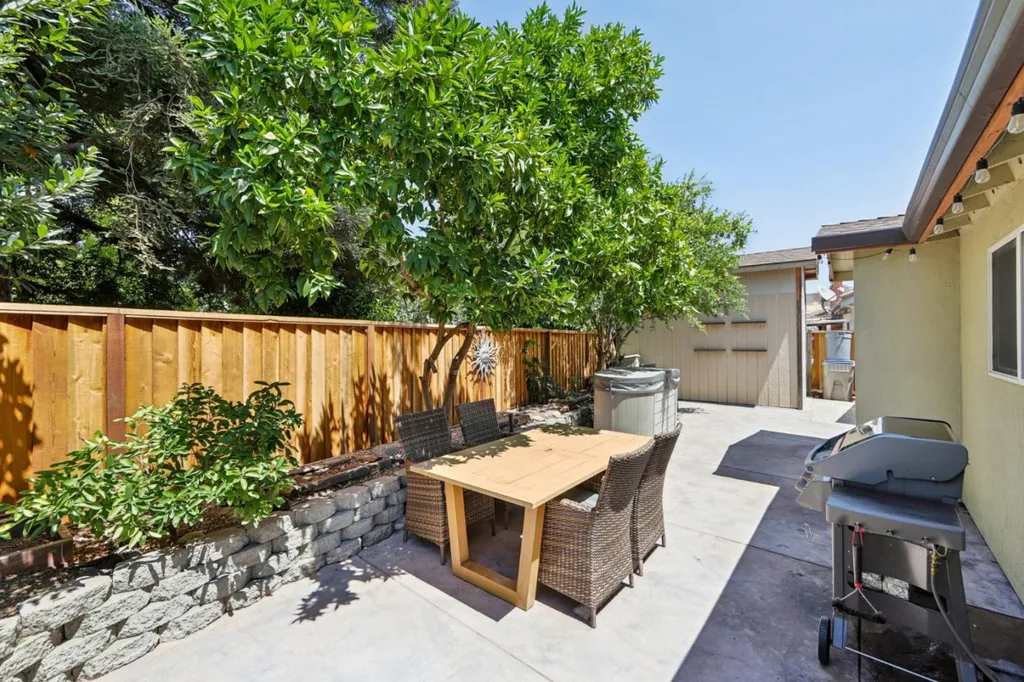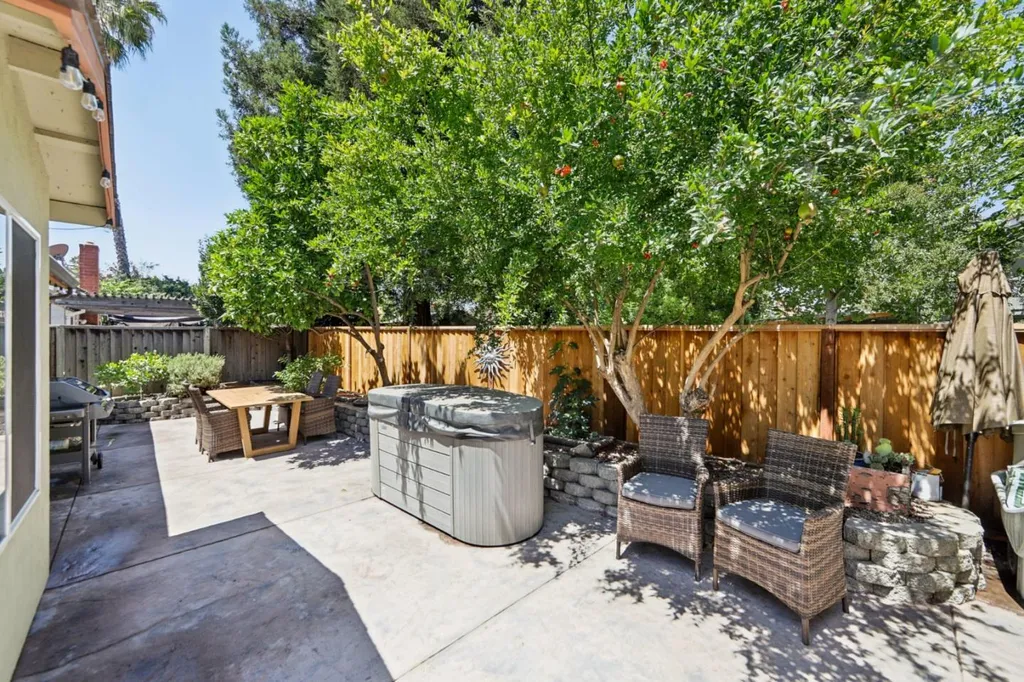 Welcome to 27 Southfield Court, a beautifully upgraded home tucked away on a private cul-de-sac in San Joses desirable Silver Leaf neighborhood. This thoughtfully designed property features an open floor plan, a permitted 325 sq ft addition, and a gated front for added privacy. The garage has been converted into a fully wired workshop with custom carriage doors, and the home includes energy-efficient windows, modern electrical upgrades throughout, and a cozy fireplace insert in the living room. Enjoy a sunroom, pergola-covered patio and built-in storage. French doors off the living room open to a serene backyard retreat with a garden fountain, and raised beds surrounded by mature fruit trees including pomegranate, fig, Meyer lemon, lime, blood orange, rosemary, and more. Ideally located near parks, shopping, and major freeways, this one-of-a-kind home offers comfort, character, and convenience in a prime location.