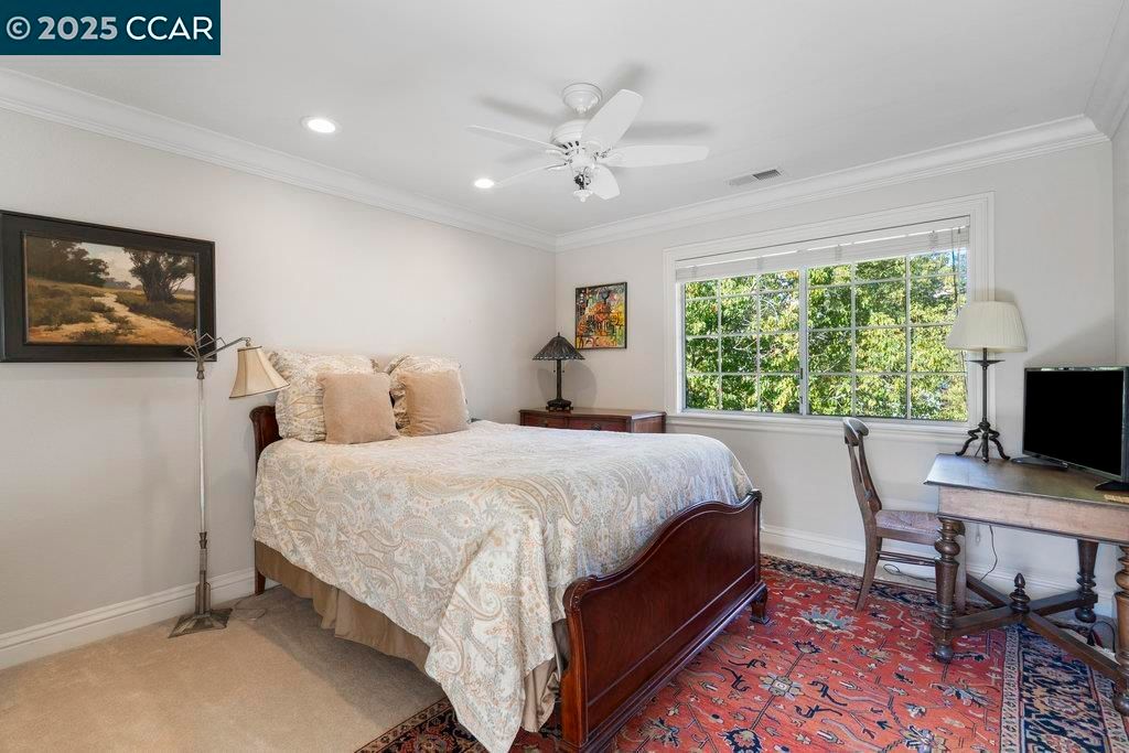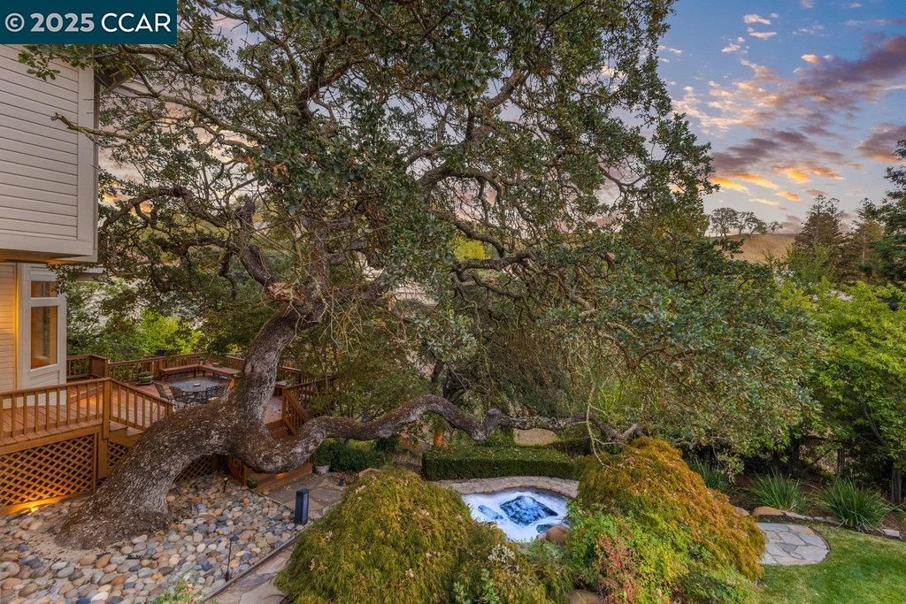Welcome to 3109 Stonegate Drive, an elegant Alamo residence offering approximately more than 4400 square feet of refined living space in the sought-after Stonegate neighborhood. Set at the top of the circle with peaceful canyon and hillside views, this home features 4 bedrooms, 4.5 baths, and a traditional oak-paneled office that could serve as a downstairs 5th bedroom. The updated kitchen opens to spacious living and entertaining areas with soaring ceilings and abundant natural light. Upstairs, a large bonus room provides flexibility for work, play, or guests. The backyard is a private retreat with a grotto-style splash pool, view deck, level lawn, and a magnificent heritage oak as its centerpiece. A three-car garage completes this exceptional property, blending privacy, charm, and functionality in a premier Alamo setting.