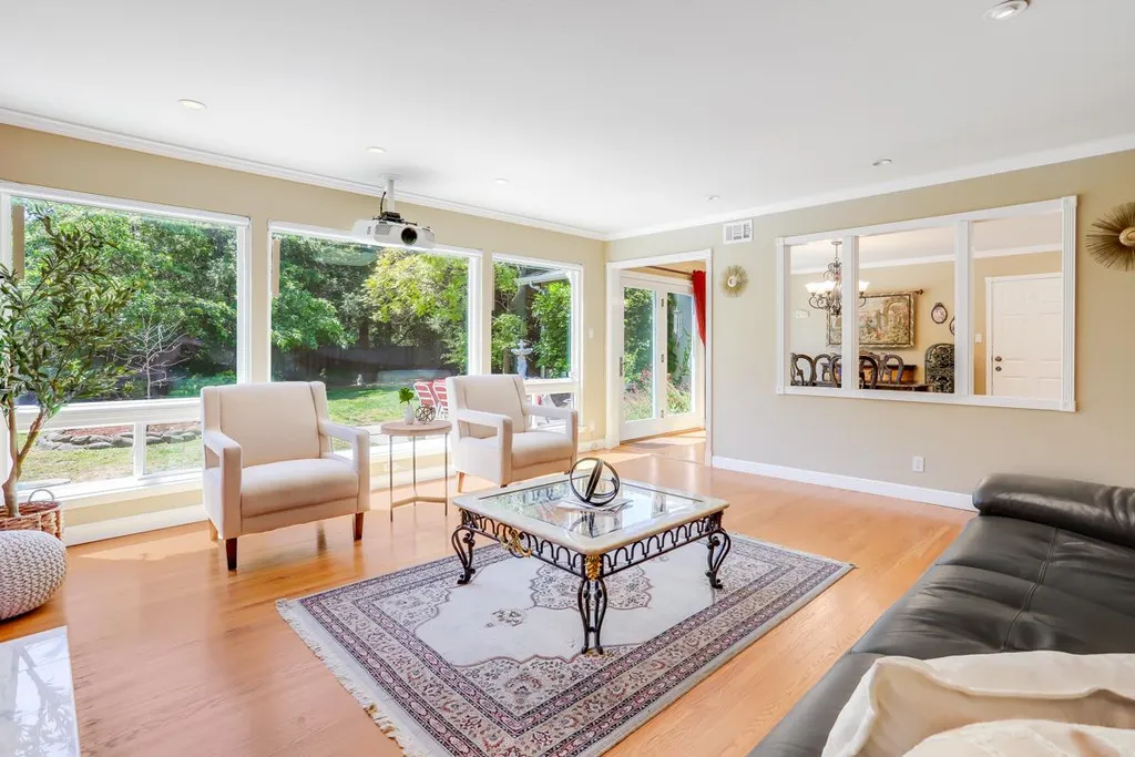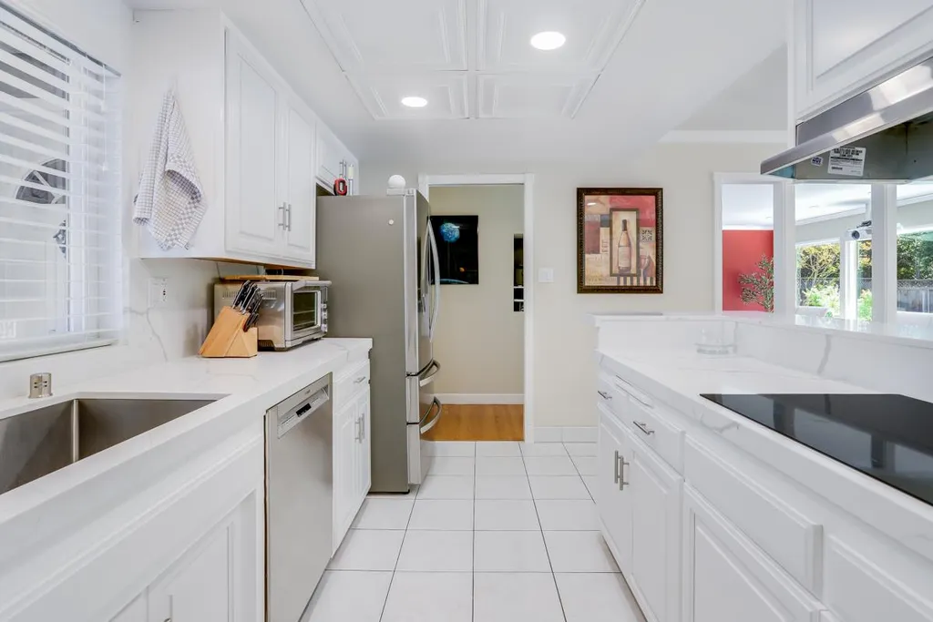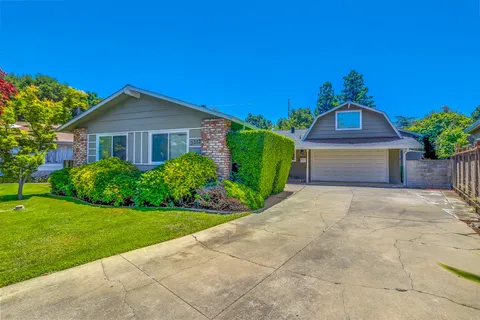 Backyard Oasis in a Quiet Cul-de-Sac! Nestled on a quiet cul-de-sac , this 4 BR/2BA home (1498 Sq. Ft.) is situated on an expansive 10,500+ square-foot lot. It's like having your own private sanctuary. And what better way to appreciate this than with views from your living room, dining, and kitchen. All situated at the back of the home, the living, dining and kitchen flow together and can even be combined to make one great space. The kitchen features stunning quartz countertops and backsplash, stainless steel appliances, and ample storage. You will enjoy plenty of natural sunlight from this area of the house with its south-eastern orientation. Bonus Feature!!! A professionally built music studio (Permitted 551 Sq. Ft.), fully soundproofed, with independent heating and air conditioning for this separate space. Ideal for musicians, podcasters, or anyone who wants a dedicated creative space. In addition, there are 3 guest bedrooms with spacious closets and a primary bedroom suite with a large vanity and stall shower. This home features an attached 2-car garage with barn-loft storage, a chilled wine storage shed, 3 exterior storage sheds, a gas fireplace, hardwood floors, dual pane windows, central heating and air conditioning, and automatic sprinklers.
