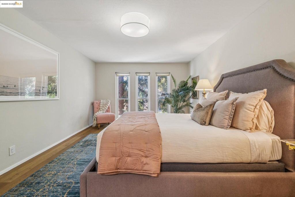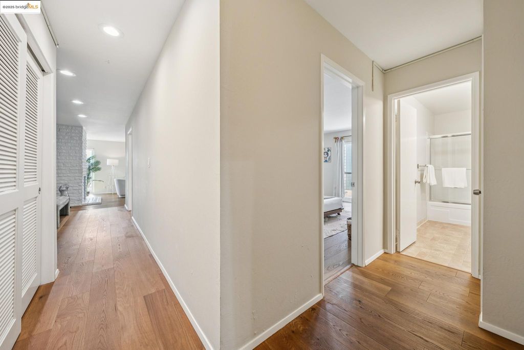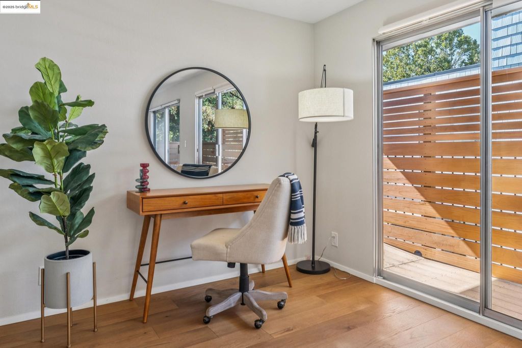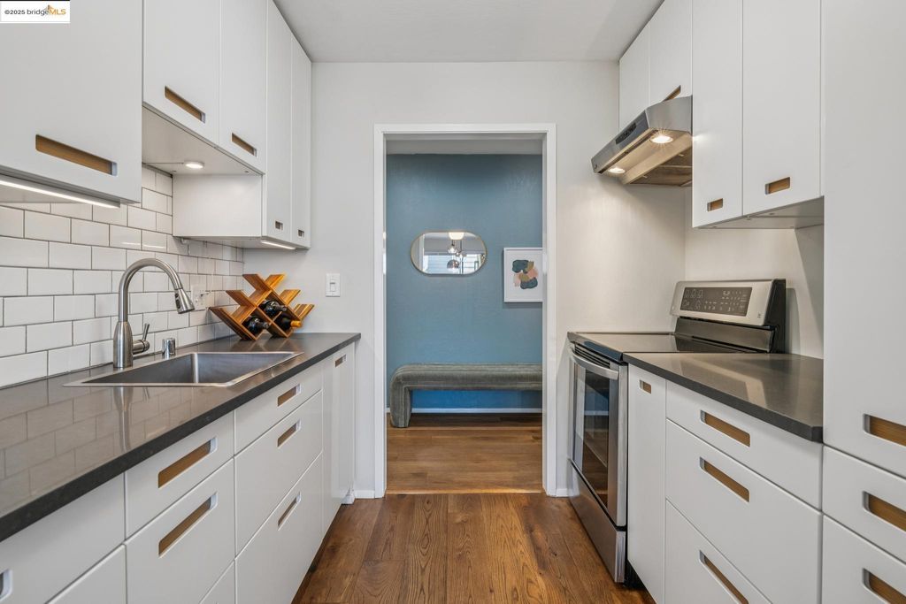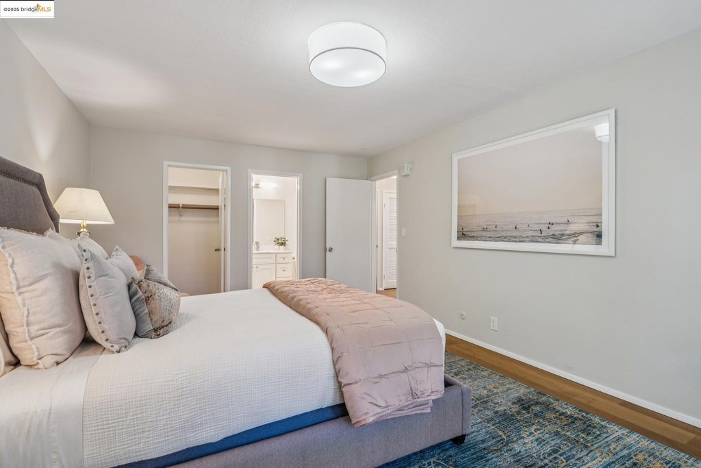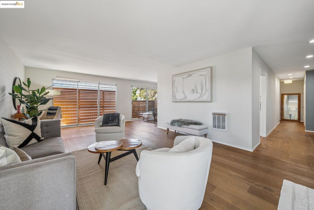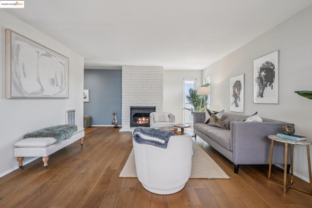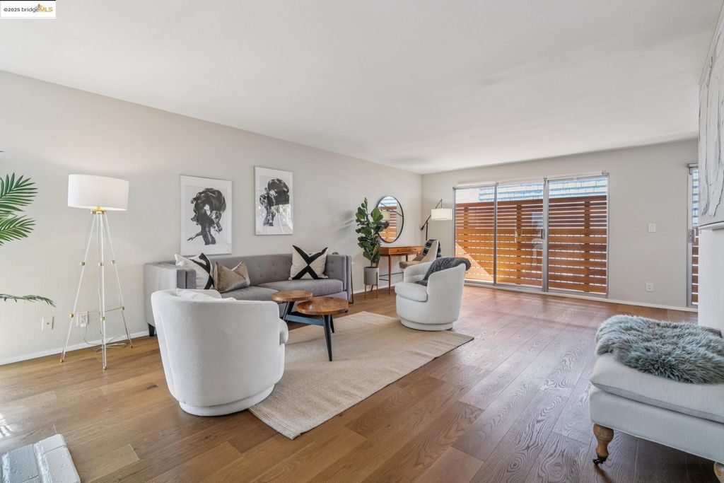 Welcome to the Penthouse. This refined residence offers an exceptional blend of sophisticated design, expansive living spaces, & modern finishes, all just blocks from Lake Merritt. Thoughtfully remodeled, the kitchen pairs sleek modern updates with the timeless warmth of natural oak floors that flow throughout the home. The generous living room, complete with a charming brick fireplace, creates a welcoming centerpiece. An elegant dining area, accented by striking modern lighting, provides the perfect setting for gatherings large or small. The crown jewel of this home is its expansive penthouse rooftop deck, encircled by a custom redwood fence that ensures both privacy and style; an ideal space for al fresco entertaining, while taking in neighborhood views. The oversized primary bedroom is equipped with en-suite half-bath and walk-in-closet. Additionally, the oversized second bedroom boasts multiple double slider closets. Both bathrooms feature modern vanities, lighting, and mirrors. Skylights throughout bathe this penthouse unit in abundant natural light. Convenience is woven into the design, with additional ample closets off the foyer for organized storage. Close to all the restaurants & shops along Grand and Lakeshore. Blocks from Whole Foods & access to nearby I-580.