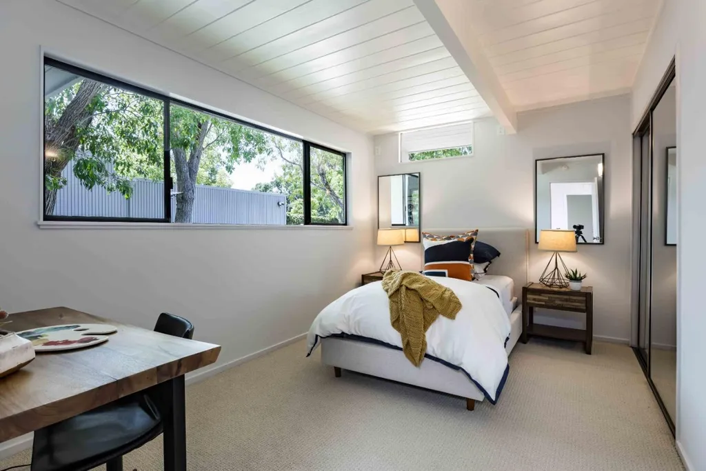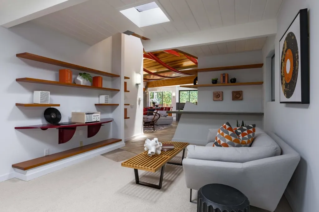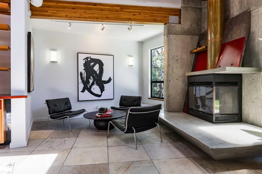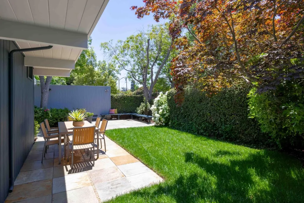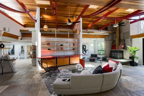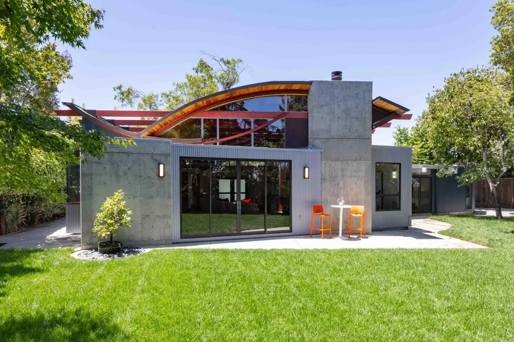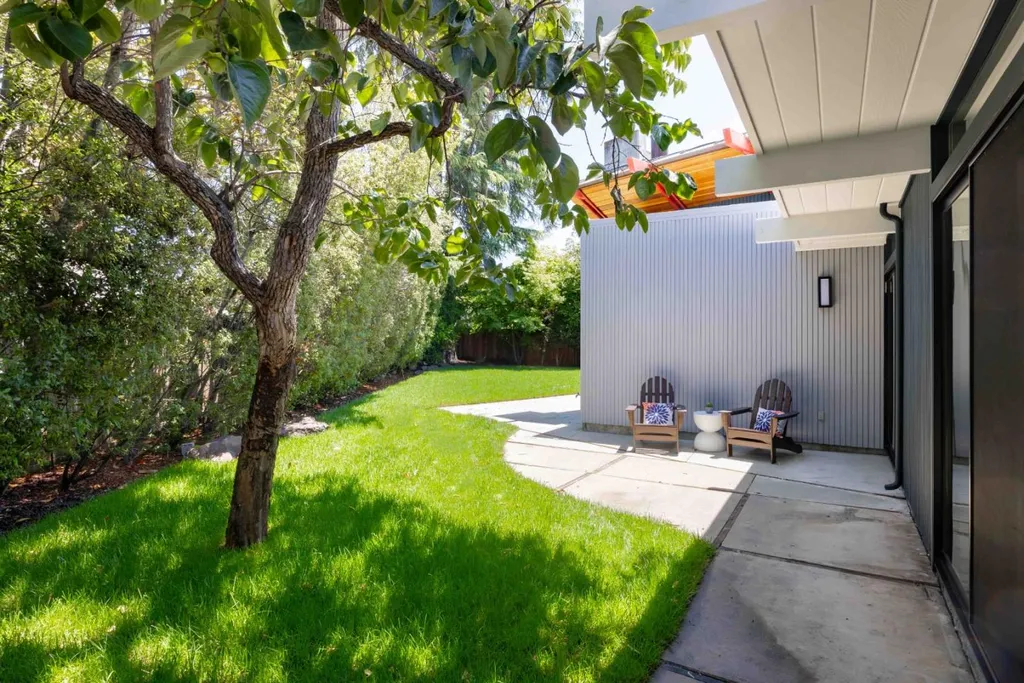 Thoroughly remodeled with vision and style, this bold mid-century modern home reimagines the era with striking materials and a fresh architectural perspective. A dramatic ceiling and exposed trusses sets the tone, while warm wood and sleek concrete create a rich, modern contrast. Inside, radiant heated floors, open living spaces and seamless indoor-outdoor flow honor classic mid-century design, updated for today. The open-concept living and dining area centers around a fireplace, flowing into a beautifully appointed kitchen with concrete countertops and high-end appliances. Four spacious bedrooms include a generous primary suite with an adjoining office, and the backyard offers a new lawn and a welcoming patio. Just minutes from Mitchell Park, the Cubberley Community Center, and a short drive to shopping and dining at The Village at San Antonio Center. Located near top schools like JLS Middle and Gunn High with convenient access to commute routes and everything Palo Alto has to offer.