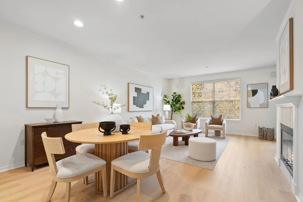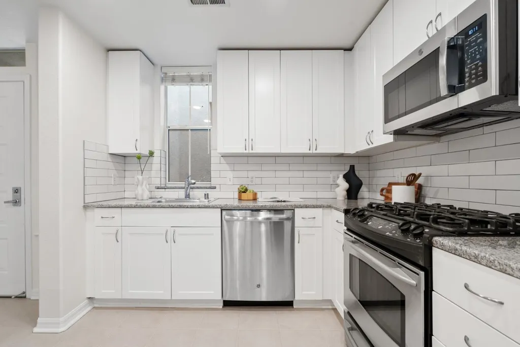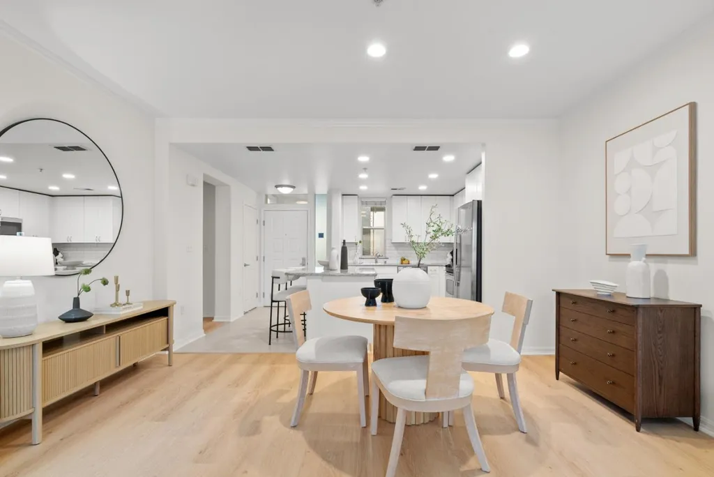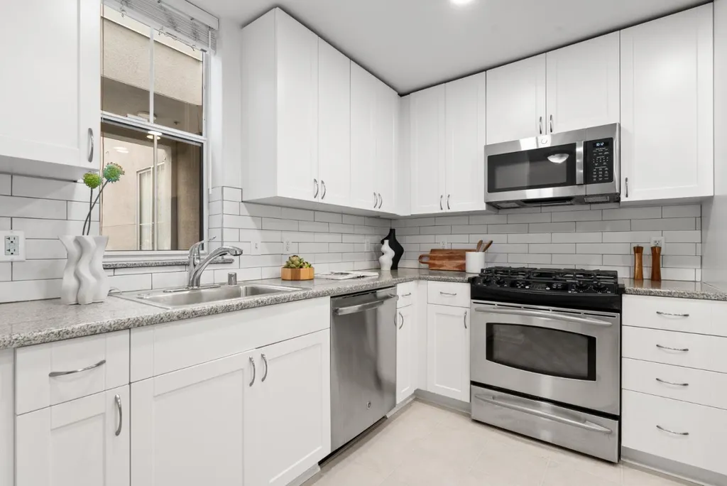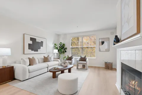 Experience modern elegance and everyday ease in this updated 3rd floor condo in the sought-after-resort-style Miraval community. The inviting living room features brand new laminate floors and large windows framing beautiful tree-top views, opening to a private balcony that overlooks the peaceful courtyard. The modern kitchen is upgraded with a large center island, granite countertops, subway tile backsplash, and stainless-steel appliances. The spacious bedroom enjoys brand new carpet and serene green views, while the bathroom features elegant finishes and a shower over tub. Enjoy year-round comfort with central AC and heating, plus an in-unit washer and dryer for convenience. Miraval offers resort-like amenities including a swimming pool, spa, fitness center, clubhouse, theater, and business center, plus EV chargers and secure gated access. Located just minutes from Rivermark Plaza, parks, Guadalupe Trail, and top tech companies such as Nvidia, Cisco, and Oracle, with the Google bus stop right outside.