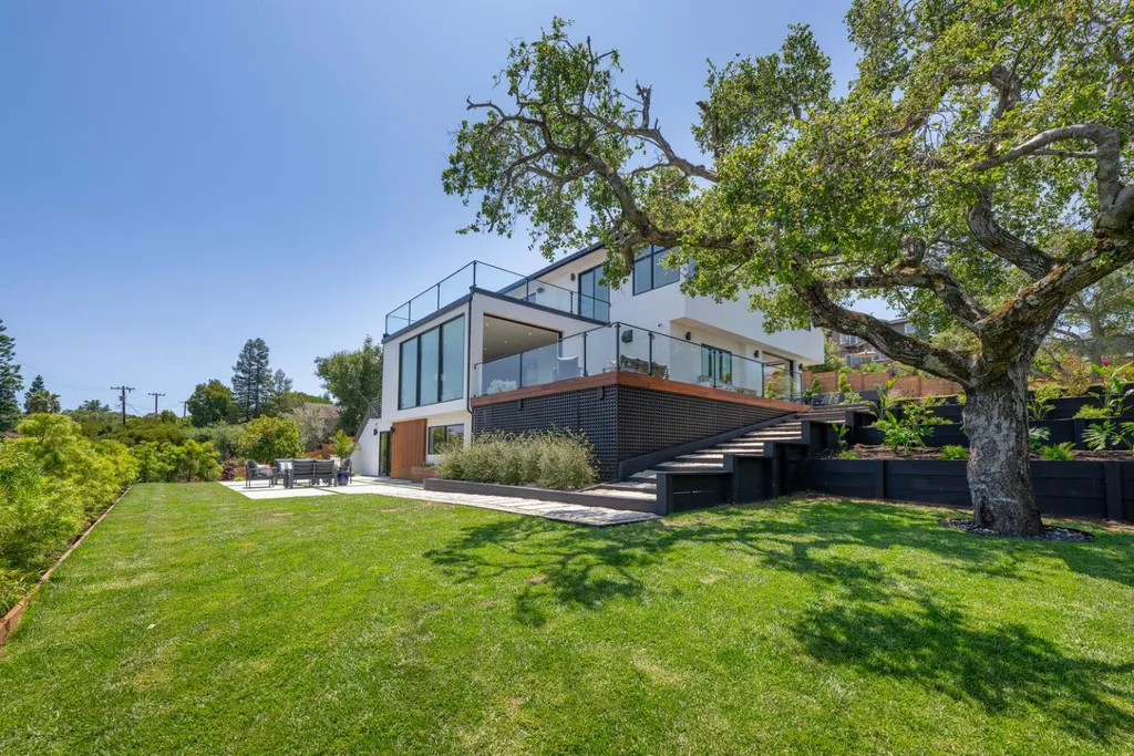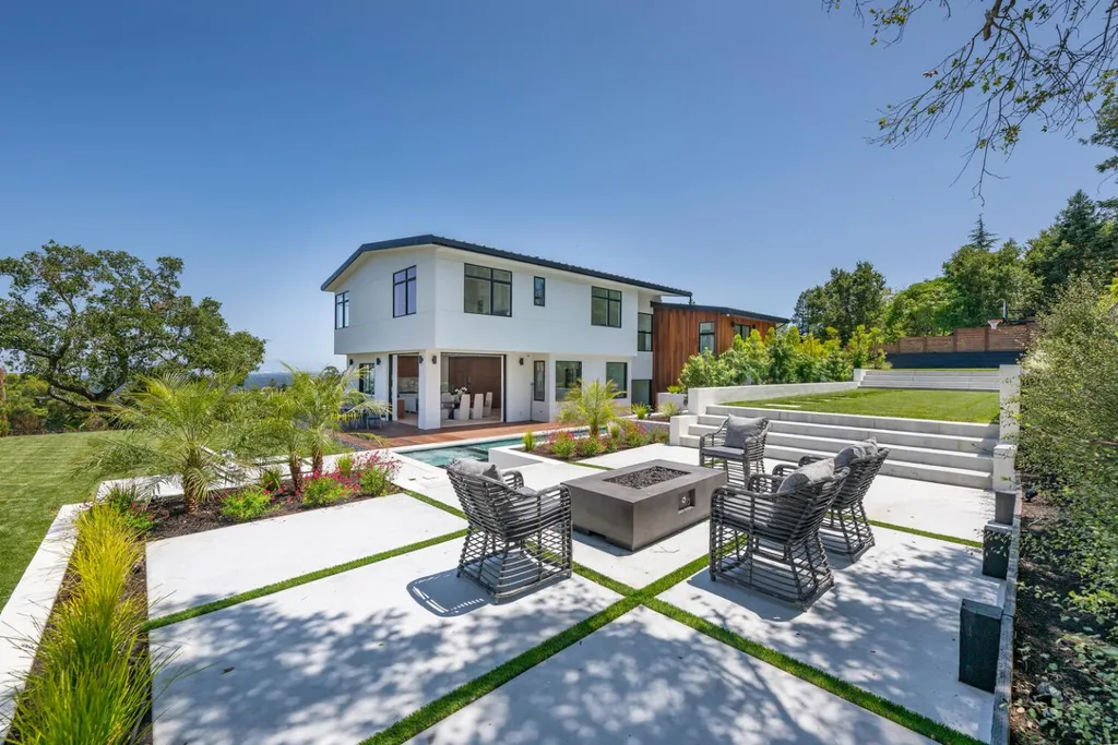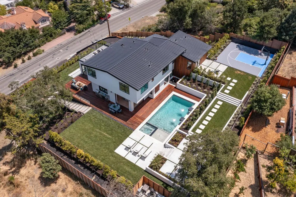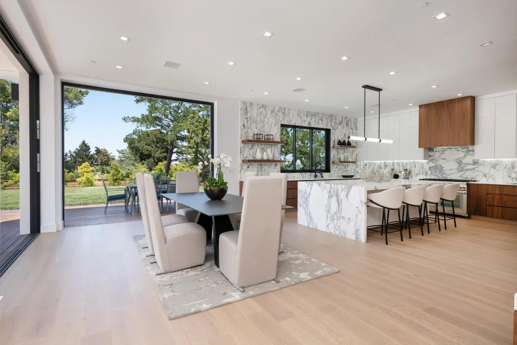 Discover luxury living in this brand-new +/-5,905sf architectural masterpiece on a +/-.58-acre lot in prestigious Emerald Hills. With sweeping San Francisco Bay views, this 5BR/4.5BA home was designed with impeccable attention to detail and is a sanctuary of modern elegance and tranquility. A floor-to-ceiling glass door introduces an open-concept layout with soaring ceilings, floating staircases, and light hardwood floors. The formal living room features a sleek fireplace and expansive glass doors opening to the spectacular grounds. The chefs kitchen dazzles with stone counters, top-tier appliances, a massive island, and custom finishes, flowing into the vast, sunlit great room. Fleetwood glass pocket doors open to a stunning pool and an amazing yard. A huge guest suite with private deck, and a chic powder bath complete the main level. Upstairs, the luxurious primary suite includes a walk-in closet, spa-like bath with steam shower, and private view deck. An immense lower-level media/recreation room with wall-length wine display, bar, and patio access adds versatility. Resort-style grounds boast patios, level lawns, pool/spa with water features, outdoor kitchen, firepit, fountains, and sport court. A long driveway and 3-car garage complete this one-of-a-kind, stunning offering.
