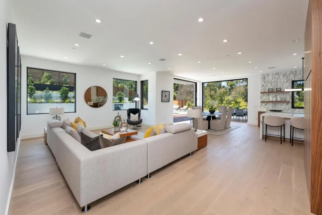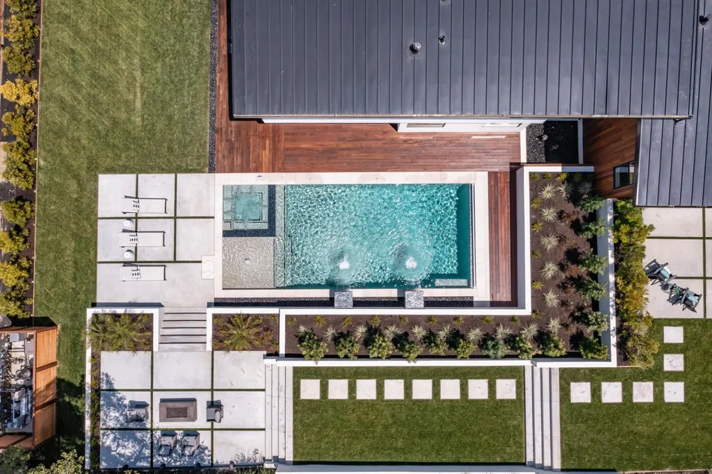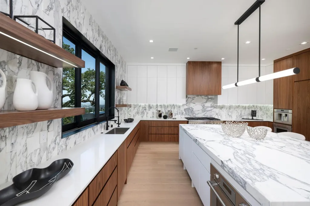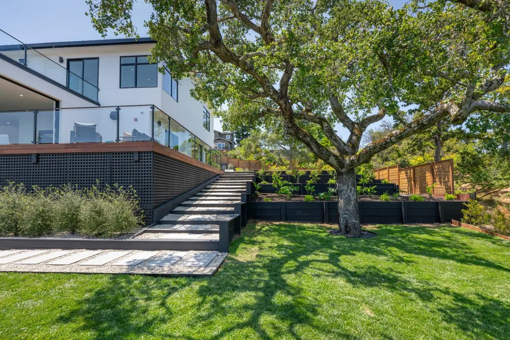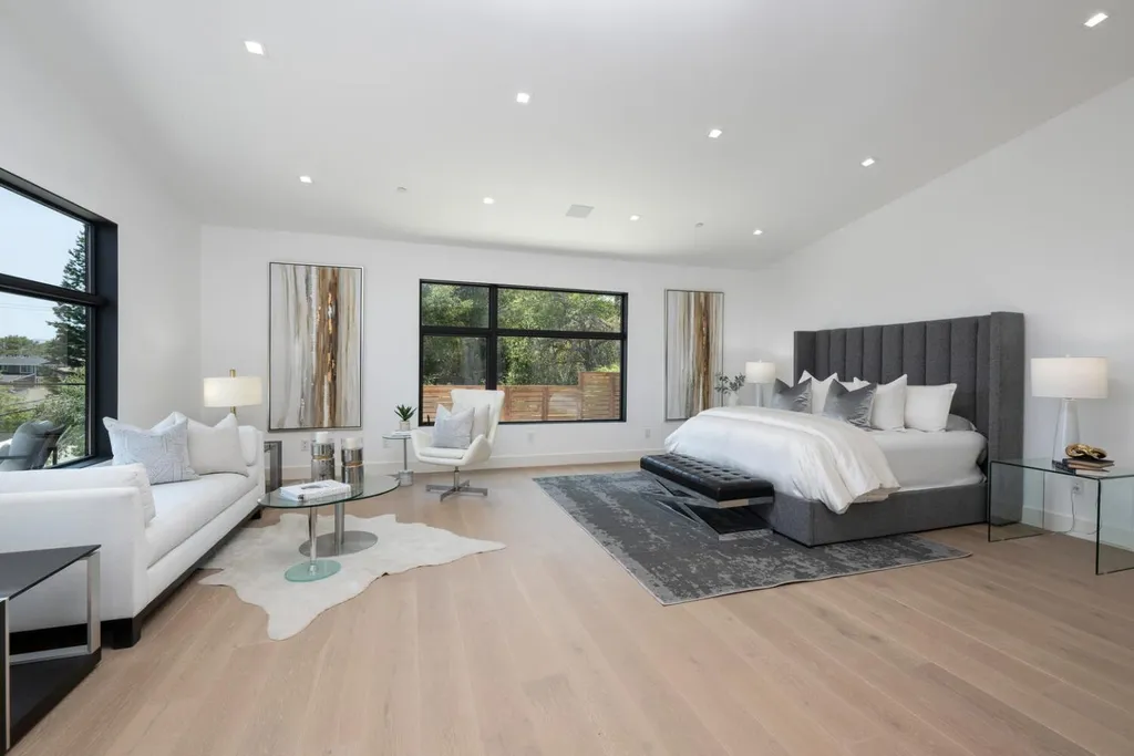 Discover luxury living in this brand-new +/-5,905sf architectural masterpiece on a +/-.58-acre lot in prestigious Emerald Hills. With sweeping San Francisco Bay views, this 5BR/4.5BA home was designed with impeccable attention to detail and is a sanctuary of modern elegance and tranquility. A floor-to-ceiling glass door introduces an open-concept layout with soaring ceilings, floating staircases, and light hardwood floors. The formal living room features a sleek fireplace and expansive glass doors opening to the spectacular grounds. The chefs kitchen dazzles with stone counters, top-tier appliances, a massive island, and custom finishes, flowing into the vast, sunlit great room. Fleetwood glass pocket doors open to a stunning pool and an amazing yard. A huge guest suite with private deck, and a chic powder bath complete the main level. Upstairs, the luxurious primary suite includes a walk-in closet, spa-like bath with steam shower, and private view deck. An immense lower-level media/recreation room with wall-length wine display, bar, and patio access adds versatility. Resort-style grounds boast patios, level lawns, pool/spa with water features, outdoor kitchen, firepit, fountains, and sport court. A long driveway and 3-car garage complete this one-of-a-kind, stunning offering.