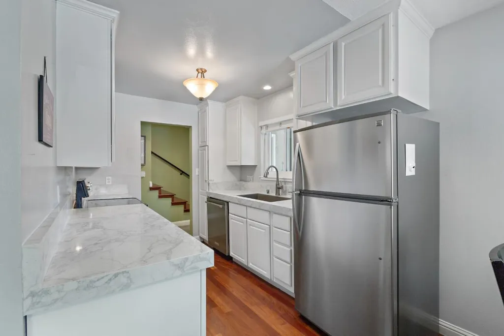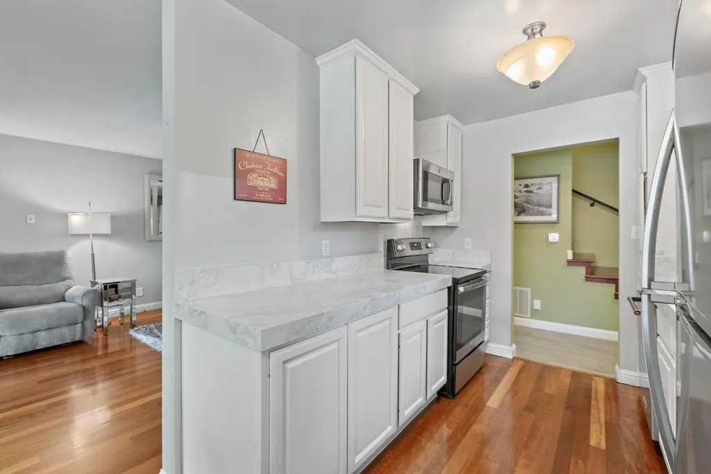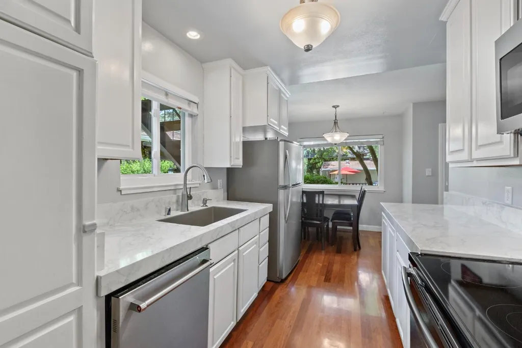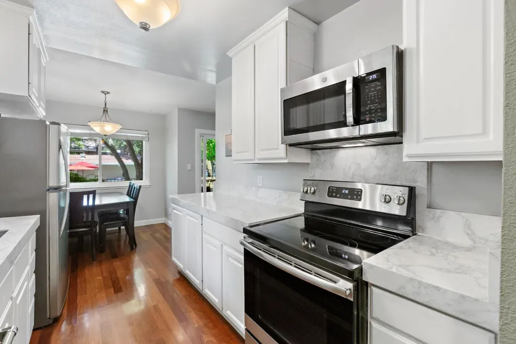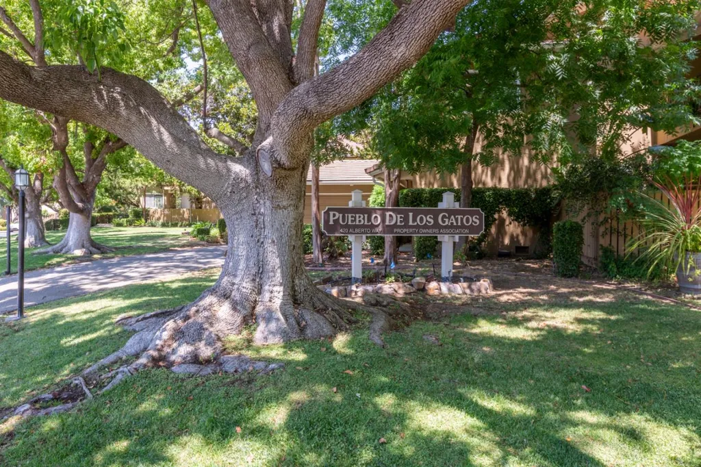 Discover Los Gatos living at its finest in this stunning townhome style 2-bedroom, 2.5-bath condo with a CORNER location. GROUND FLOOR unit location with 2 deeded parking. Prime location in the heart of Downtown LG & near top-rated schools. Nestled within the tranquil, resort-like community of Pueblo de Los Gatos (no age restrictions), this home features a modern kitchen w/ white cabinetry, newer quartz countertops, SS appliances. The spacious floor plan includes a dining room overlooking big living room. TWO Primary Bedrooms await! The grand primary bedroom retreat boasts an updated en-suite bath w/ a walk-in shower, spacious walk-in closet & a peaceful & sunny outdoor balcony! The junior primary bedroom offers ample space for comfortable living w/ an updated en-suite bath. Interior laundry! With central heating & AC. Huge backyard faces beautifully kept grounds, & there are two assigned parking spaces with extra-large storage cabinets. HOA includes garbage, water, and gas. Enjoy community amenities such as a large swimming pool, clubhouse, BBQ area, green spaces, car washing stations and more! With restaurants, hiking trails, and Vasona Park nearby, plus quick commutes to Silicon Valley employers, this condo offers the perfect blend of urban convenience and serene living.