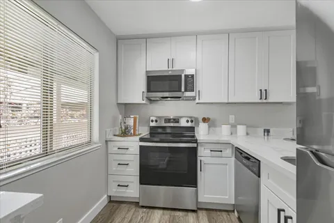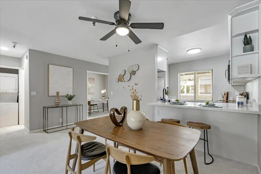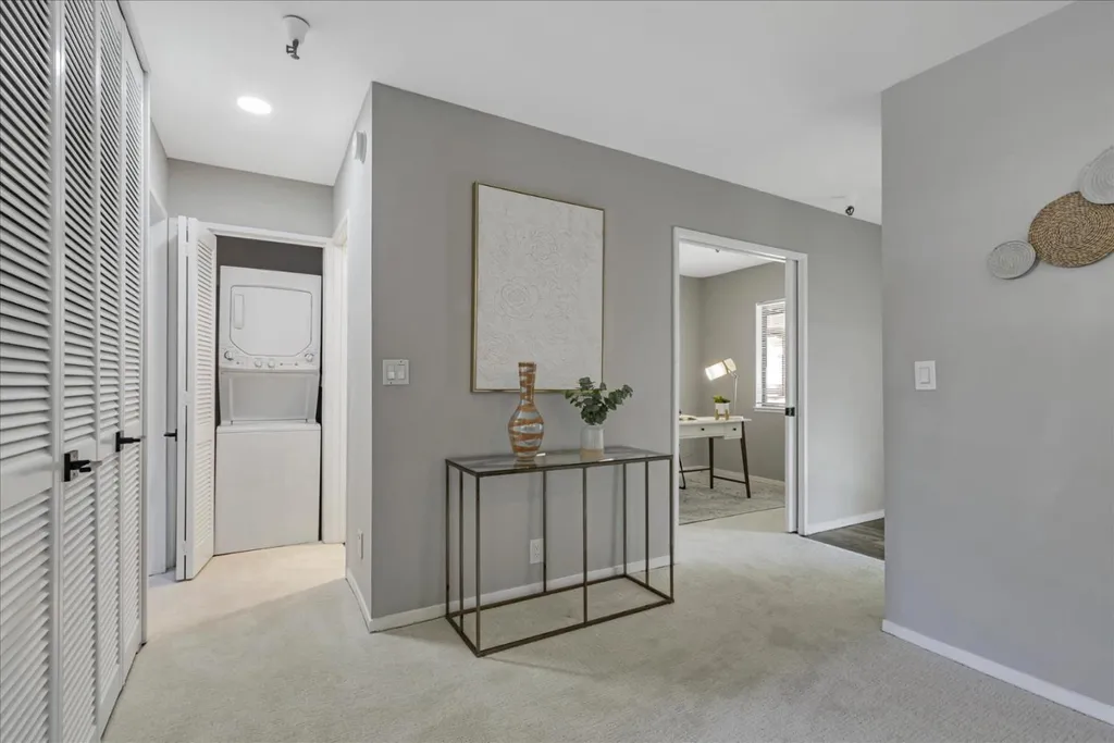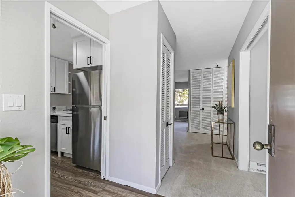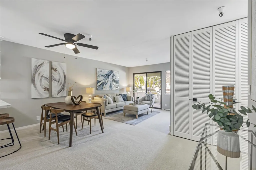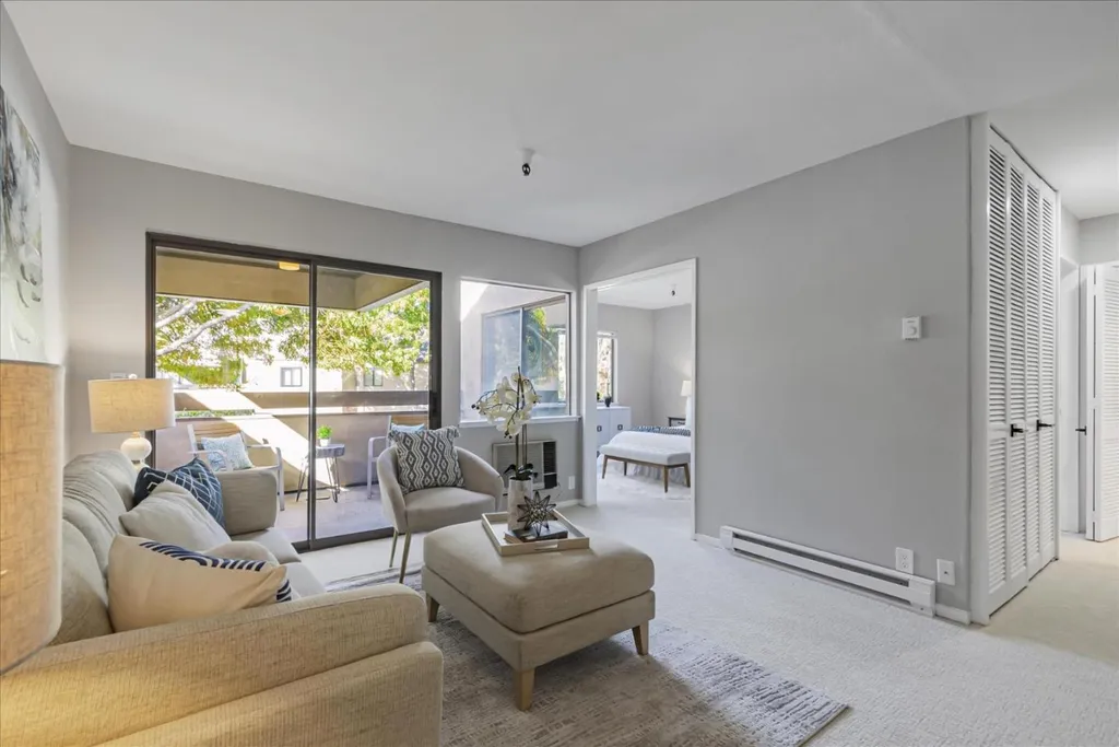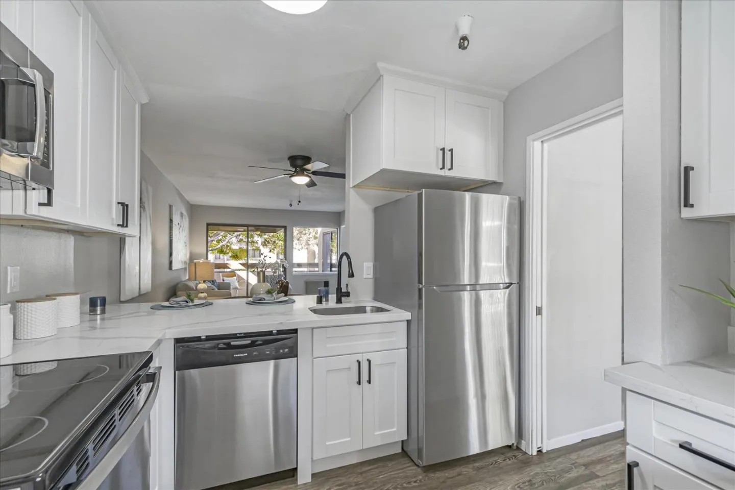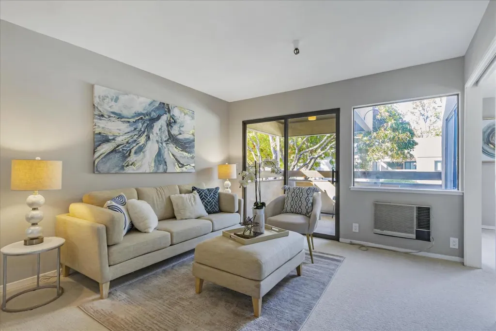Discover the charm n comfort of this fully remodeled 2-bedroom (or 1 bed/office), 1-bath condo, nestled within a peaceful, age-restricted 55+ community. It has been thoughtfully updated, offering a fresh, modern feel.Step inside to find brand-new wide plank flooring and plush carpet that complement the new interior paint, creating a bright n inviting space. The kitchen is a chef's dream, featuring all-new stainless steel appliances, quartz countertops, and stylish soft-close hinge wood cabinetry. Spacious breakfast bar for easy dining. The remodeled bathroom boasts a new tall toilet, new vanity and updated fixtures including light, mirror & glass shower door plus a reglazed tub.Enjoy the convenience of an indoor stackable laundry n extra closet space. Step onto the private balcony, where beautiful trees provide natural privacy and a soothing green view. Set back from the bustle of Highway 17, this condo provide a nice retreat.The community offers a range of amenities, including a pool and hot tub, fitness room, shuffleboard, pool table, and a library. It's a short walk to the charming streets of downtown Los Gatos shops and restaurants.Low-maintenance, comfortable living in a welcoming setting. This condo is truly a must-see!