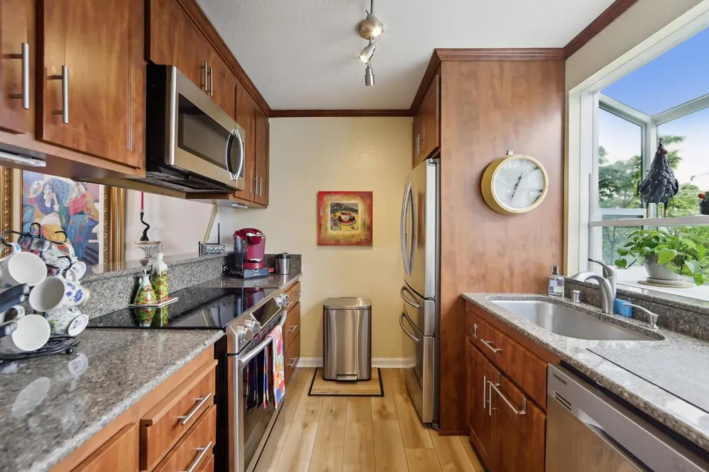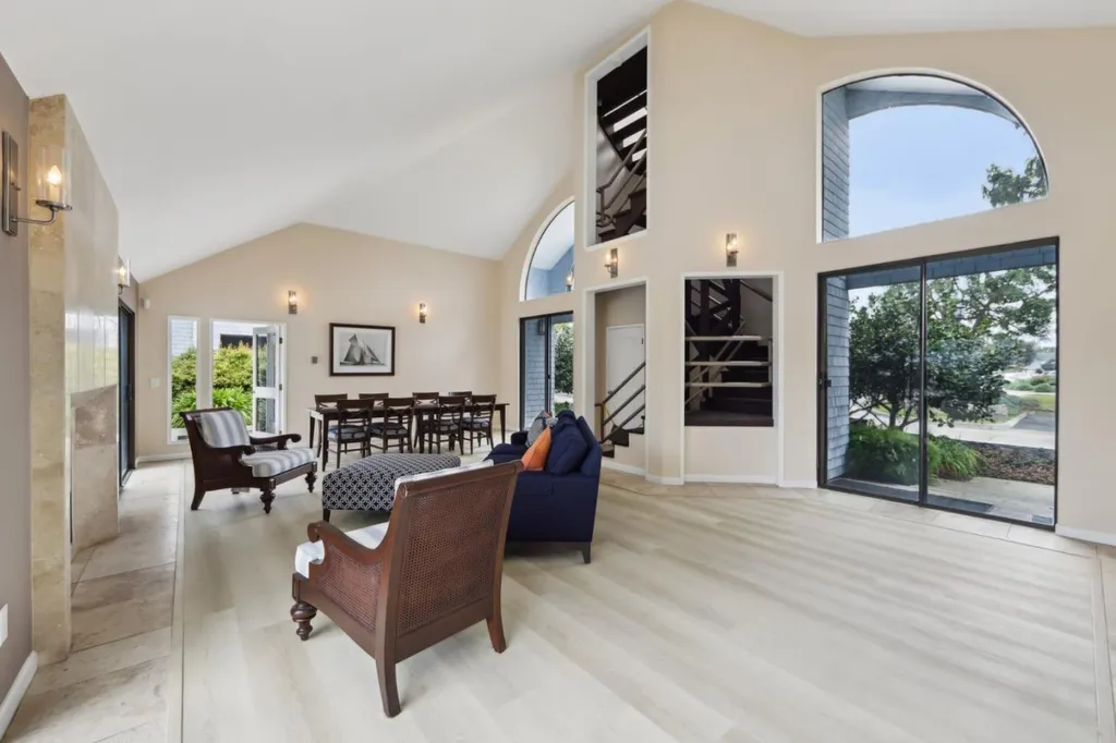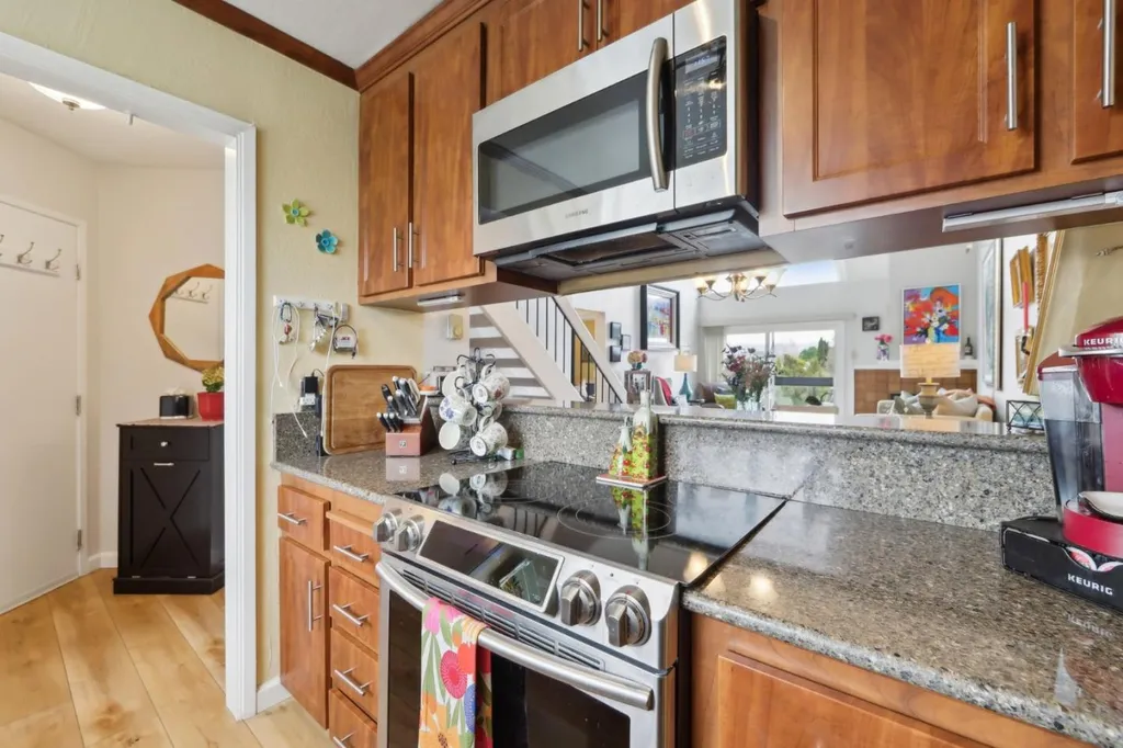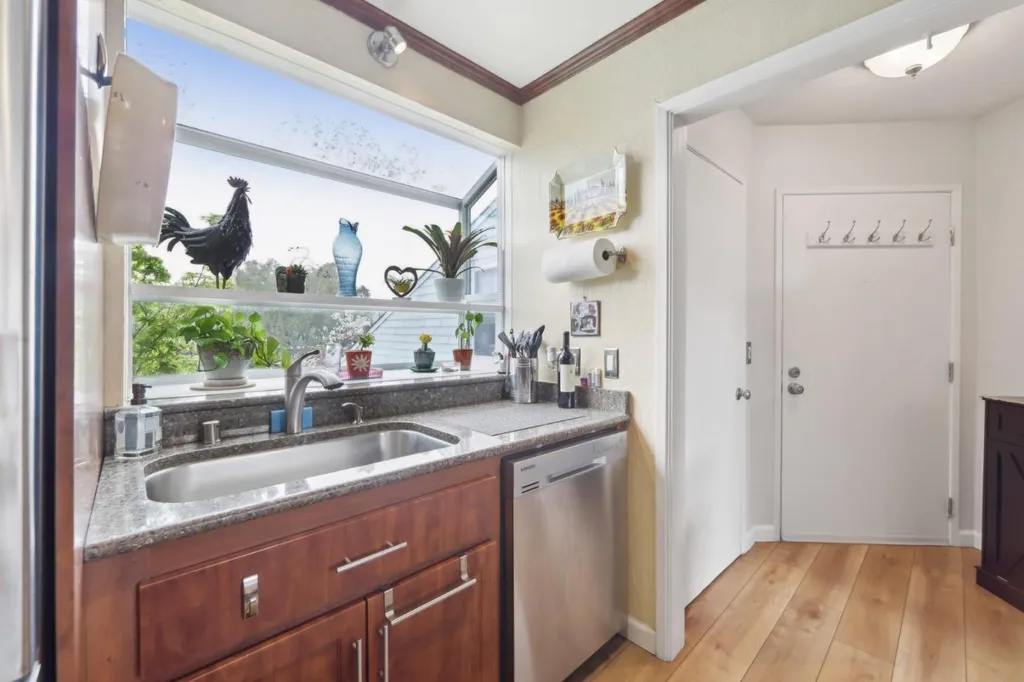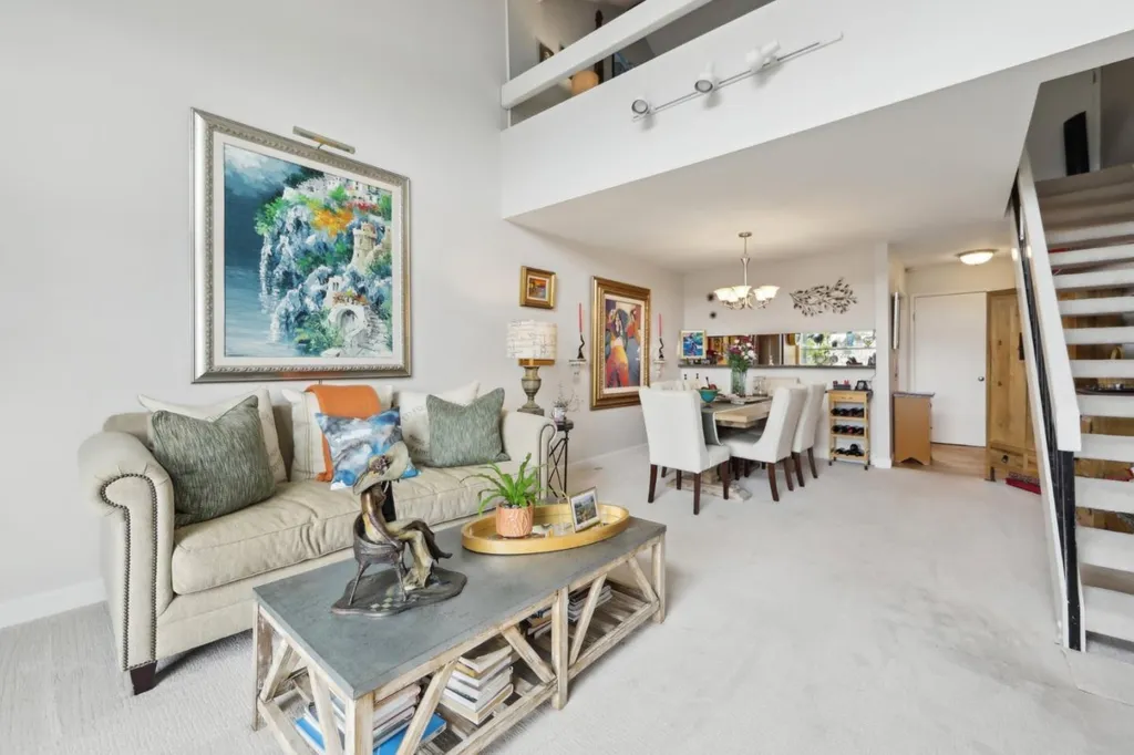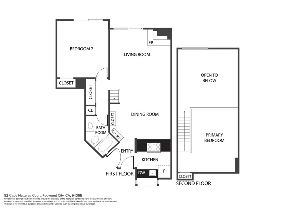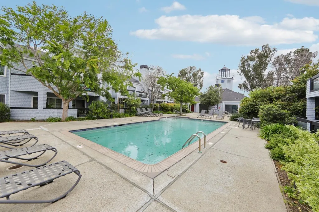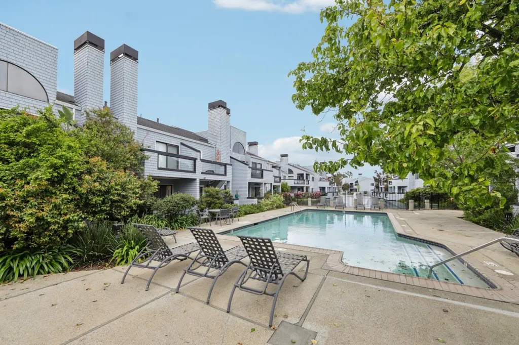 Leave your troubles at the door as you step into the carefree lifestyle of living on the water in beautiful Redwood Shores! Prepare meals in your updated kitchen while watching the sunset off your large balcony. Sit by the fire in your cozy living room and watch the ducks float past. This home has a first floor bedroom plus an oversized loft that can easily be used as a second bedroom or large home office. The in-unit laundry includes a full-sized washer and dryer and is carefully tucked away right outside the modern bathroom. Sweeping ceilings and tons of natural light round out this peaceful and unique living experience. The complex has a community pool and hot tub, plus boat storage and a clubhouse that can be rented for parties. Enjoy a detached one-car garage and plenty of open parking for an additional car. Walk to parks, trails, restaurants, grocery store or top-rated schools. This is your chance to buy into one of the premiere areas of the Peninsula for under $900,000. Welcome home to 52 Cape Hatteras!
