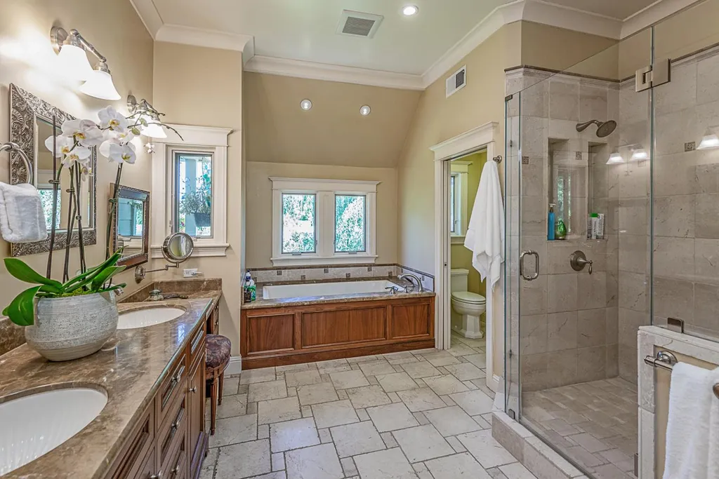 Completely rebuilt & expanded between 2008 & 2022, this custom Craftsman home on a one-quarter-acre flat lot features timeless design, exceptional quality, & a premier location on the edge of Atherton. Spacious floor plan offers flexibility across two levels with a luxurious upstairs primary suite, private balcony, sumptuous bath, & oversized walk-in closet. Two additional bedrooms & a full bath are also upstairs, while two main-level bedrooms with direct access to a shared bath. Additional full bath on the main level that doubles as a guest powder room. Formal living & dining rooms flow into a beautifully appointed kitchen with handcrafted rift maple cabinetry, granite countertops, & premium appliances. Wine bar with custom racking & hand-forged iron cabinet fronts is complemented by peninsula counter seating perfect for casual dining or entertaining. Outdoor living with an expansive rear yard designed for entertaining with fireplace, lush lawn, & private patios bordered by mature foliage. A 4-car tandem garage with built-ins & overhead storage, a detached workshop, & extensive full-height attic offer outstanding storage. Surrounded by exceptional gardens in the front & rear, this home offers privacy, beauty, & livability in one of the Peninsula's most desirable neighborhoods.