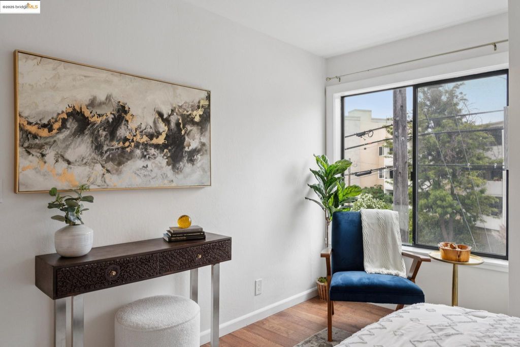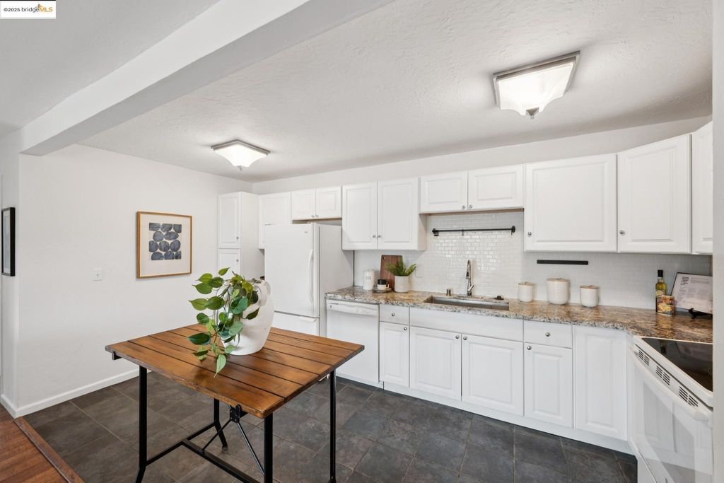 Price Reduction! Welcome to 696 Athol Ave #203! Step into this lovely 2-bed, 2-bath corner unit gem of a condo with an in-unit washer and dryer! Enjoy the open floor plan, and a sunny deck. This is a great home for everyday and entertaining! The primary bedroom leads into an ensuite bathroom, open closet, and the in-unit washer-dryer. The second bedroom has an ample closet and storage space. There is a beautiful rooftop to lounge in and a one-car parking spot in the gated garage. Newly painted interior throughout. Located in Cleveland Heights just up the hill from Lake Merritt. Situated near restaurants and shops on Lakeshore and Grand Ave, public transportation, and the freeway.