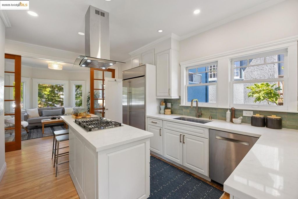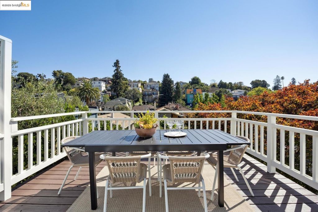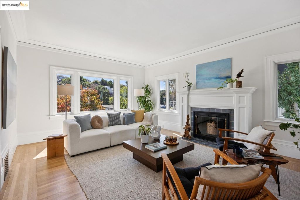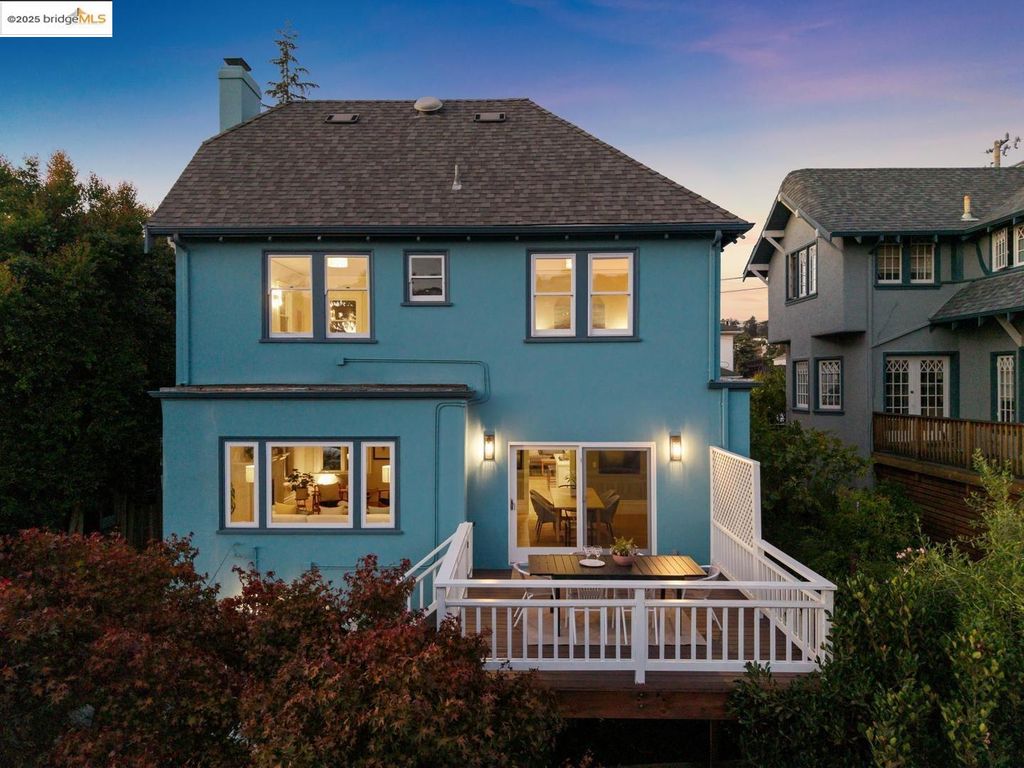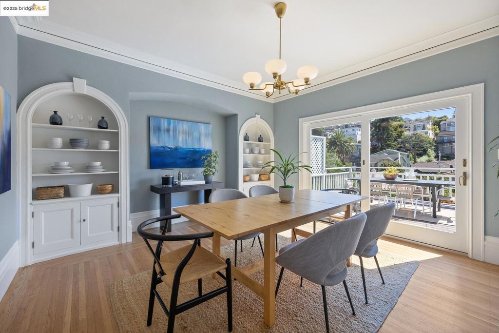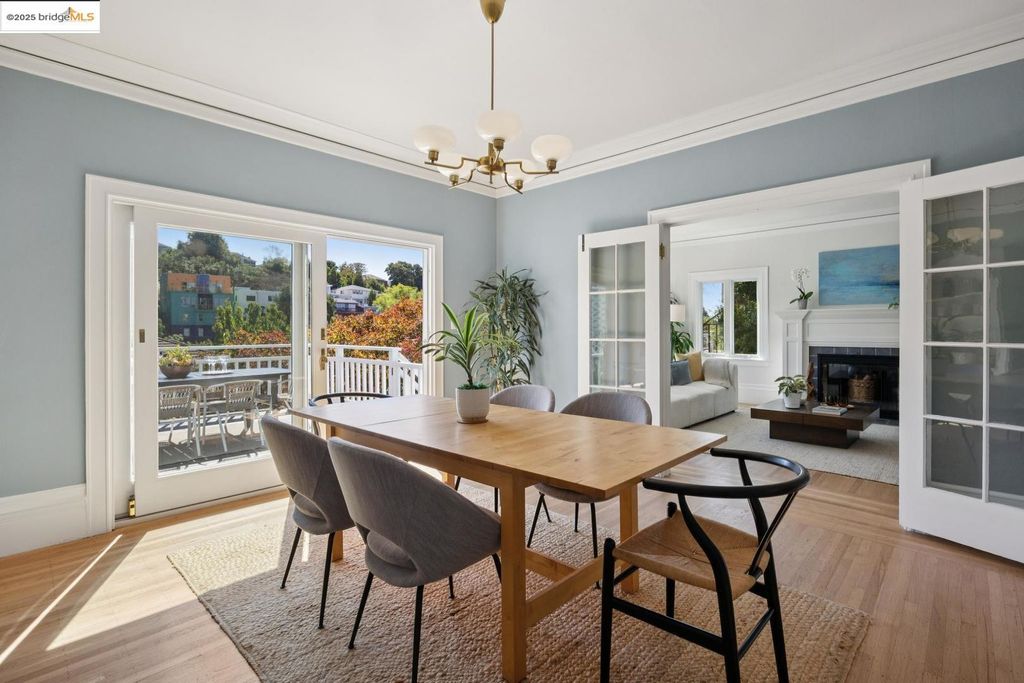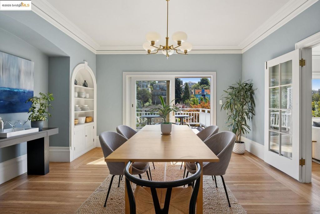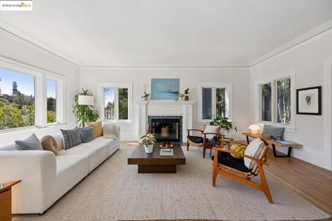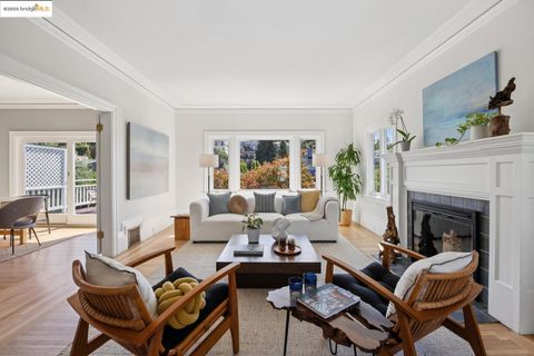 Beautifully updated and full of charm, this 3BD/2BA, 2,140 sq ft Crocker Highlands traditional sits on beloved Arimo Avenue at the Piedmont border. South-facing windows fill spacious rooms with light, and a sliding door extends dining and living outdoors to a generous deck with hillside outlooks and city lights in the distance. The designer remodel includes a crisp modern kitchen with stainless steel appliances, quartz counters, and a striking hood, plus updated baths with dual vanities, marble tile, and gold fixtures. The dining room's arched built-ins, oak floors, and cozy family room with bay window add warmth and character. Outdoors, gardens with maples, ferns, and fruit trees create a private retreat. A long driveway and garage provide ample storage, while a bonus basement offers space for play, art, or a studio. Minutes from Lakeshore and Grand Avenue shops, dining, parks, and transit, this home blends timeless Crocker Highlands character with modern convenience.