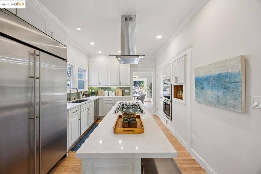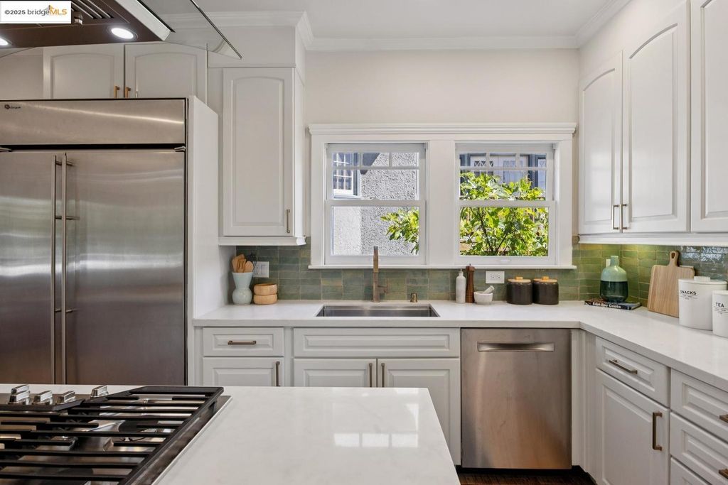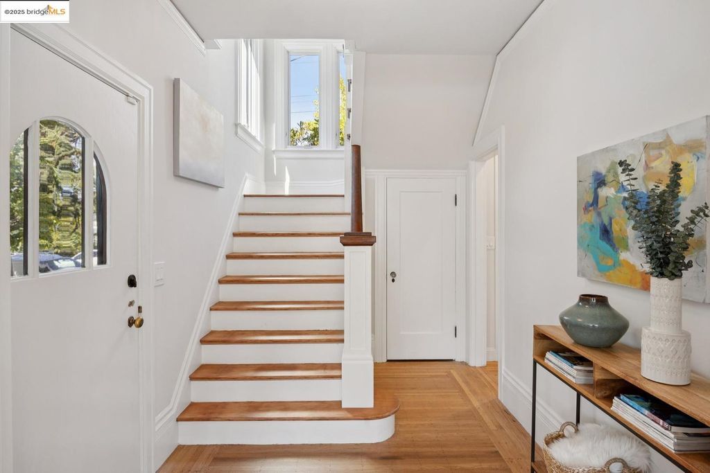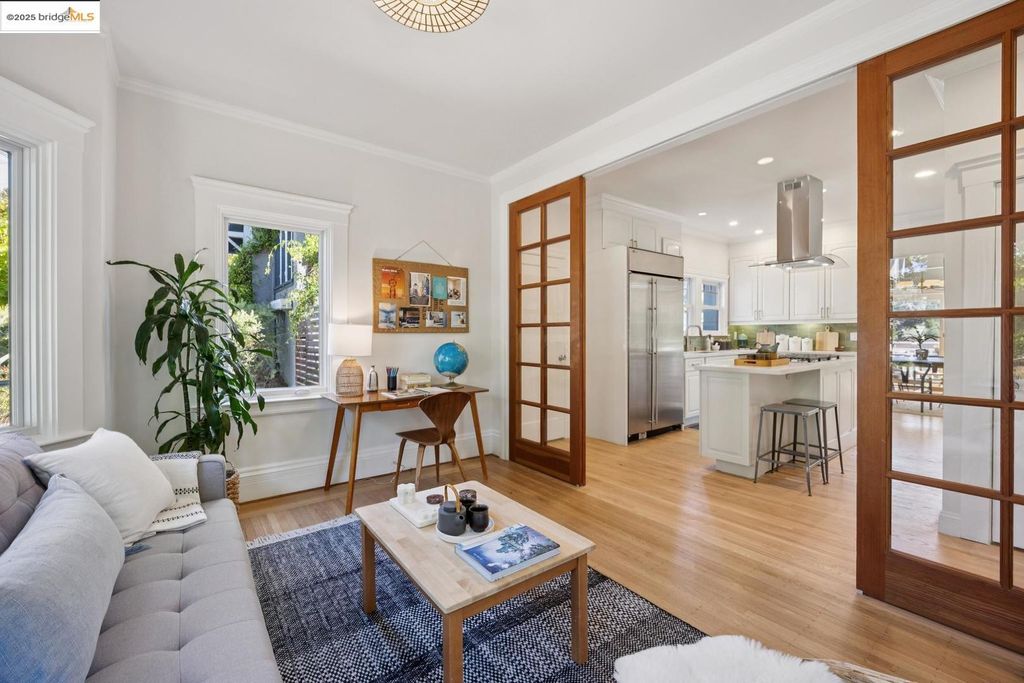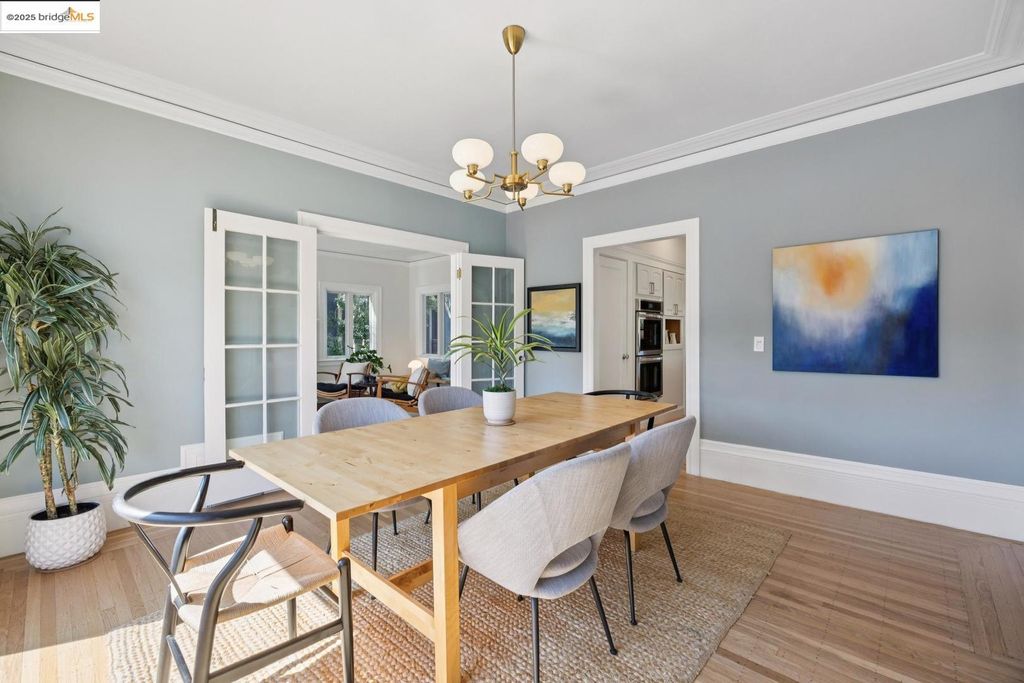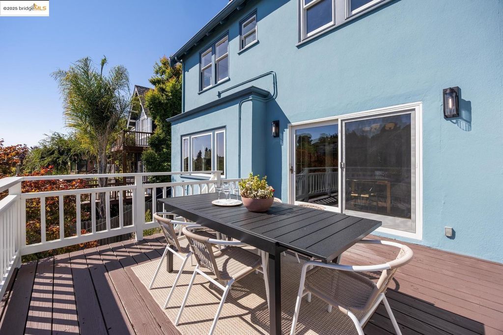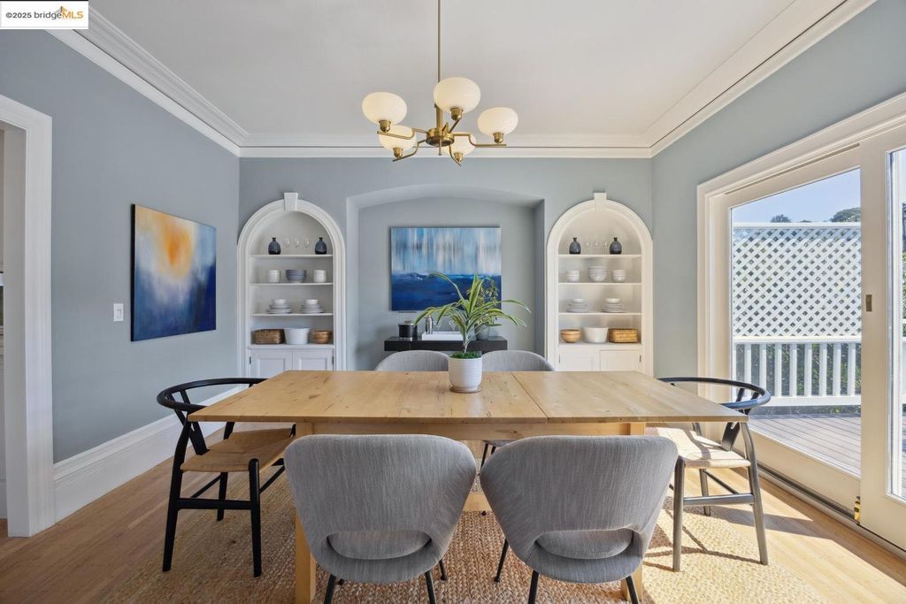 Beautifully updated and full of charm, this 3BD/2BA, 2,140 sq ft Crocker Highlands traditional sits on beloved Arimo Avenue at the Piedmont border. South-facing windows fill spacious rooms with light, and a sliding door extends dining and living outdoors to a generous deck with hillside outlooks and city lights in the distance. The designer remodel includes a crisp modern kitchen with stainless steel appliances, quartz counters, and a striking hood, plus updated baths with dual vanities, marble tile, and gold fixtures. The dining room's arched built-ins, oak floors, and cozy family room with bay window add warmth and character. Outdoors, gardens with maples, ferns, and fruit trees create a private retreat. A long driveway and garage provide ample storage, while a bonus basement offers space for play, art, or a studio. Minutes from Lakeshore and Grand Avenue shops, dining, parks, and transit, this home blends timeless Crocker Highlands character with modern convenience.