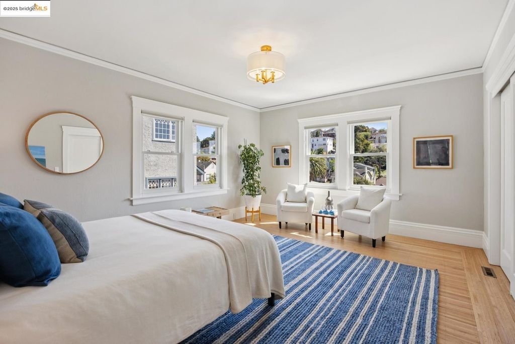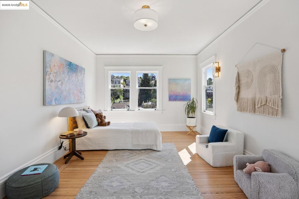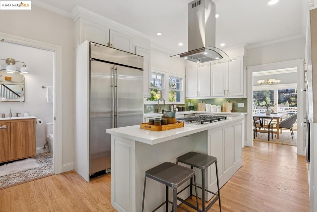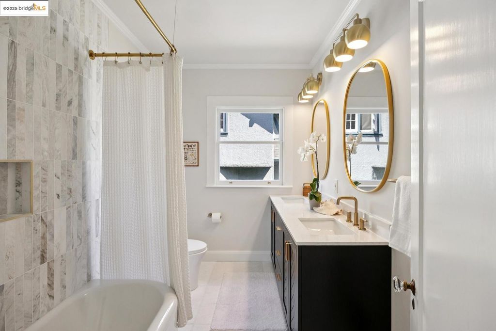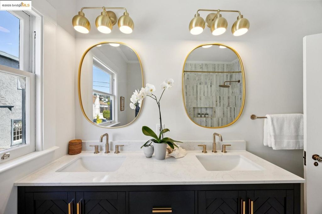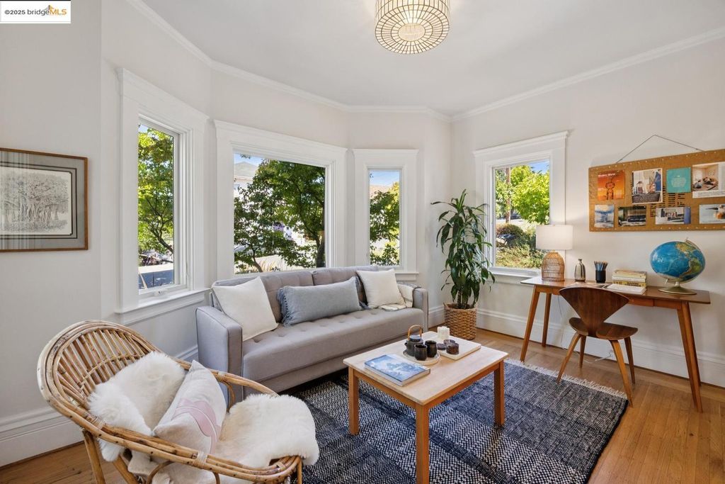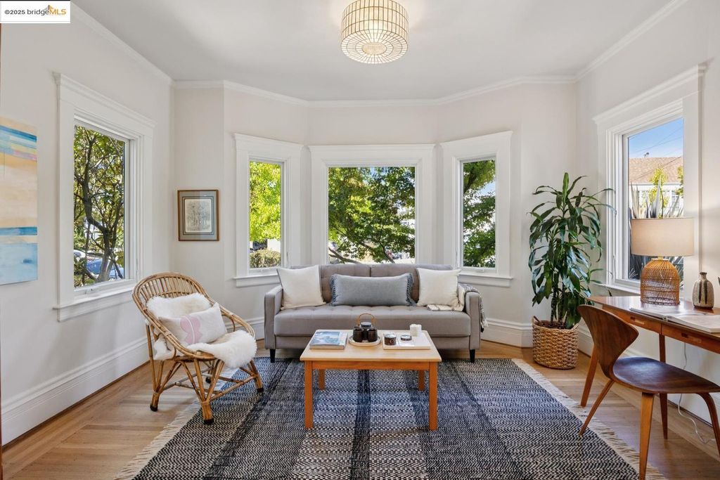 Beautifully updated and full of charm, this 3BD/2BA, 2,140 sq ft Crocker Highlands traditional sits on beloved Arimo Avenue at the Piedmont border. South-facing windows fill spacious rooms with light, and a sliding door extends dining and living outdoors to a generous deck with hillside outlooks and city lights in the distance. The designer remodel includes a crisp modern kitchen with stainless steel appliances, quartz counters, and a striking hood, plus updated baths with dual vanities, marble tile, and gold fixtures. The dining room's arched built-ins, oak floors, and cozy family room with bay window add warmth and character. Outdoors, gardens with maples, ferns, and fruit trees create a private retreat. A long driveway and garage provide ample storage, while a bonus basement offers space for play, art, or a studio. Minutes from Lakeshore and Grand Avenue shops, dining, parks, and transit, this home blends timeless Crocker Highlands character with modern convenience.