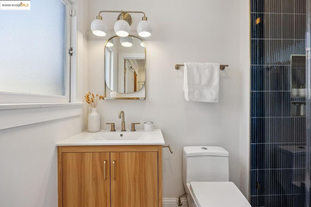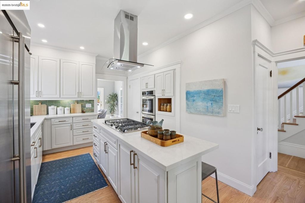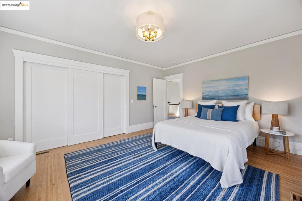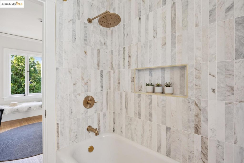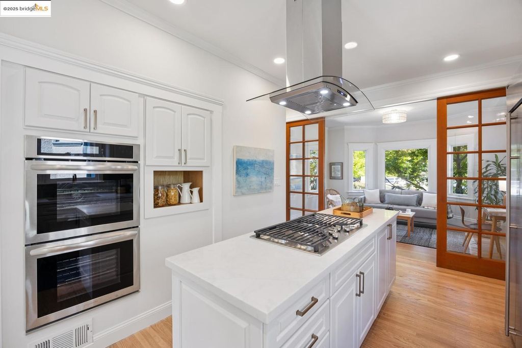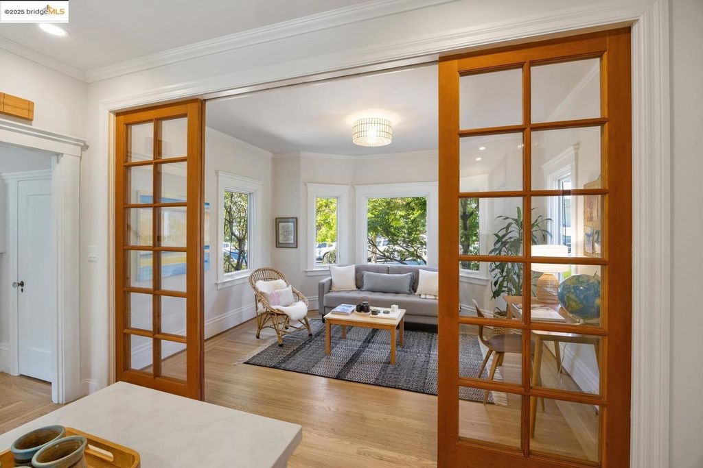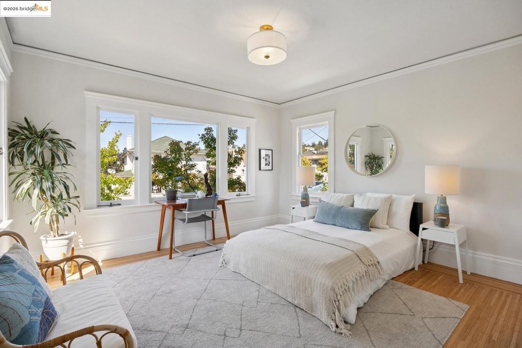Beautifully updated and full of charm, this 3BD/2BA, 2,140 sq ft Crocker Highlands traditional sits on beloved Arimo Avenue at the Piedmont border. South-facing windows fill spacious rooms with light, and a sliding door extends dining and living outdoors to a generous deck with hillside outlooks and city lights in the distance. The designer remodel includes a crisp modern kitchen with stainless steel appliances, quartz counters, and a striking hood, plus updated baths with dual vanities, marble tile, and gold fixtures. The dining room's arched built-ins, oak floors, and cozy family room with bay window add warmth and character. Outdoors, gardens with maples, ferns, and fruit trees create a private retreat. A long driveway and garage provide ample storage, while a bonus basement offers space for play, art, or a studio. Minutes from Lakeshore and Grand Avenue shops, dining, parks, and transit, this home blends timeless Crocker Highlands character with modern convenience.