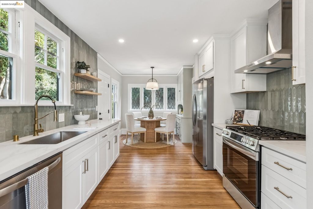 This 1928 Crocker Highlands Tudor has been beautifully renovated while preserving its historic charm. With 4 bedrooms and 2 baths upstairs - including a luxurious primary bath - it's designed for modern living. The open main floor connects the living and dining rooms to a new spacious deck and stylish kitchen with breakfast nook, while the lower level offers a family room, office, half bath, and bonus space. Landscaped back & front yard, 1-car garage, and a location near award-winning elem school and Lakeshore shops make this home truly special.