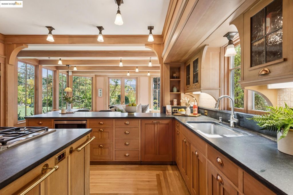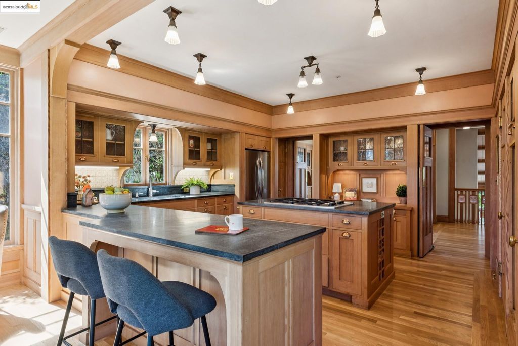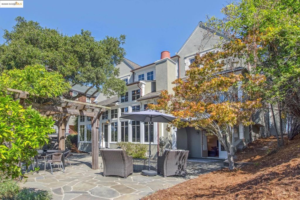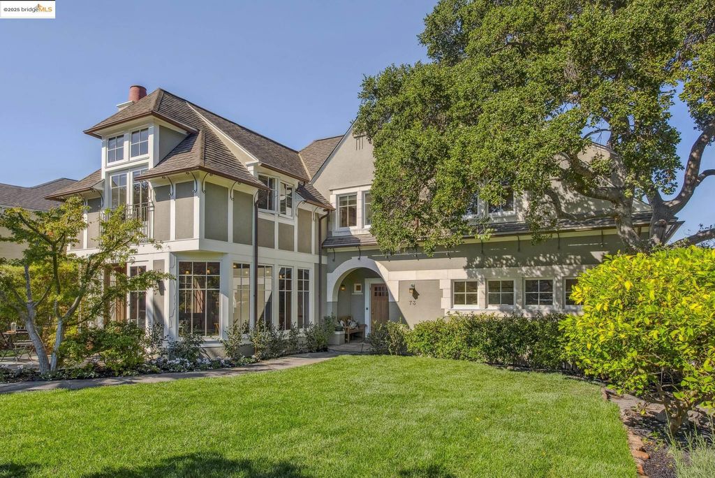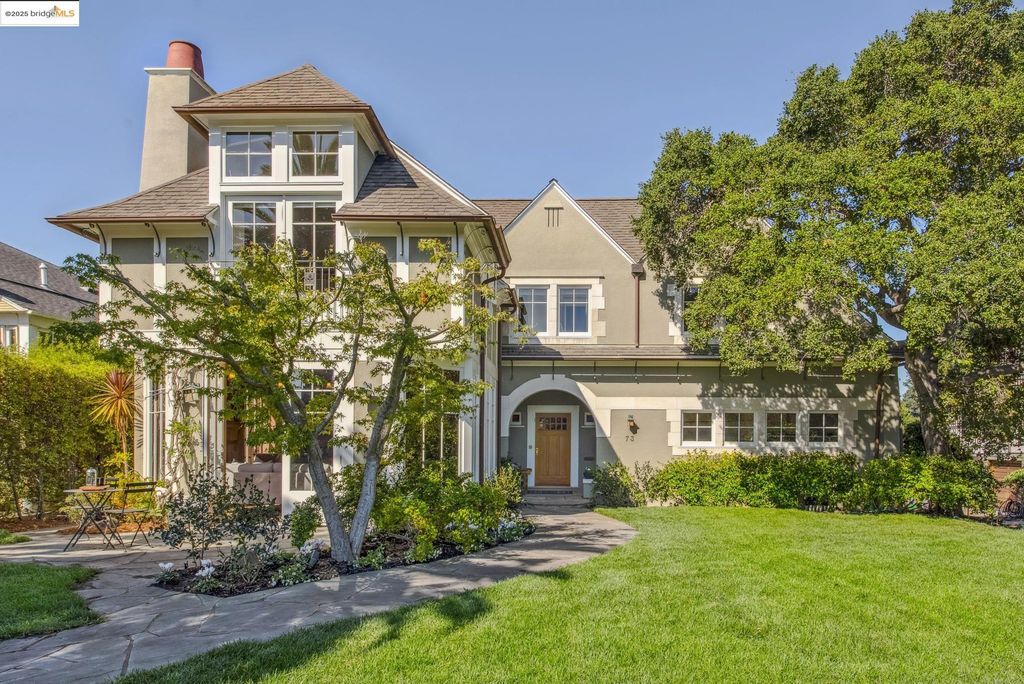 Remarkable English Arts & Crafts manor residence designed by John Malick and built in 1998. Beautifully maintained, in pristine condition, first time on the market! Featuring 4 lovely bedrooms & 2 full baths all on the upper level. The spacious kitchen/family room opening to a level, grassy yard, is the heart of this home, with its natural woods, coffered ceiling, & nine-foot windows bathing it in natural light & cozy fireplace. The intimate dining room opens via French doors onto a deck overlooking the rear patio for outdoor meals. Buyers will love the formal living room with vaulted ceilings, large windows and tiled fireplace - tucked away from the fray and perfect for quiet times of music and reading. A separate library is accessed from the living room. Many, many outdoor gatherings will occur in the wonderful, outdoor spaces of front lawn, large, rear stone patio with its own lighted gazebo, vegetable garden and very large, level playground. The lower level rumpus/media room has its own full bath & separate entrance. Two-car garage with inside access.