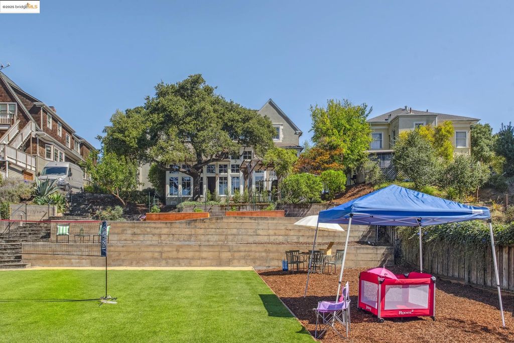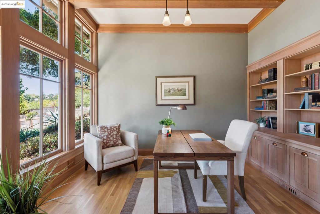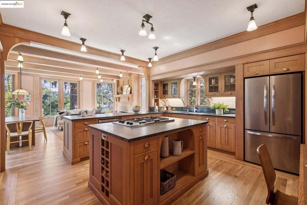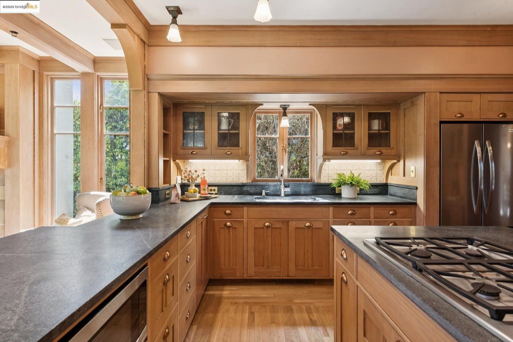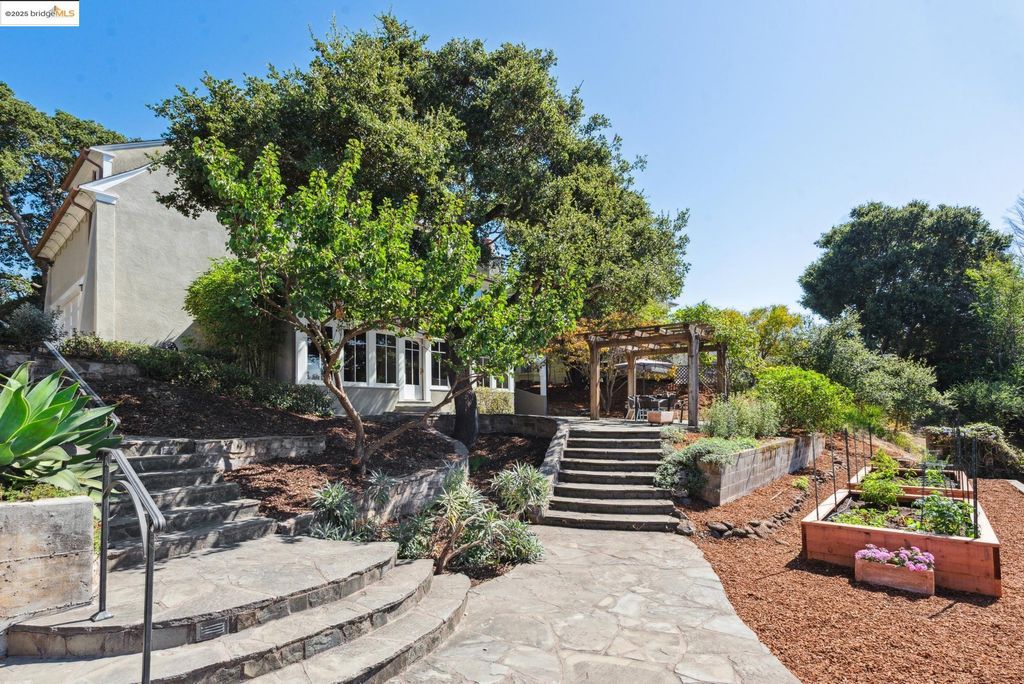 Remarkable English Arts & Crafts manor residence designed by John Malick and built in 1998. Beautifully maintained, in pristine condition, first time on the market! Featuring 4 lovely bedrooms & 2 full baths all on the upper level. The spacious kitchen/family room opening to a level, grassy yard, is the heart of this home, with its natural woods, coffered ceiling, & nine-foot windows bathing it in natural light & cozy fireplace. The intimate dining room opens via French doors onto a deck overlooking the rear patio for outdoor meals. Buyers will love the formal living room with vaulted ceilings, large windows and tiled fireplace - tucked away from the fray and perfect for quiet times of music and reading. A separate library is accessed from the living room. Many, many outdoor gatherings will occur in the wonderful, outdoor spaces of front lawn, large, rear stone patio with its own lighted gazebo, vegetable garden and very large, level playground. The lower level rumpus/media room has its own full bath & separate entrance. Two-car garage with inside access.