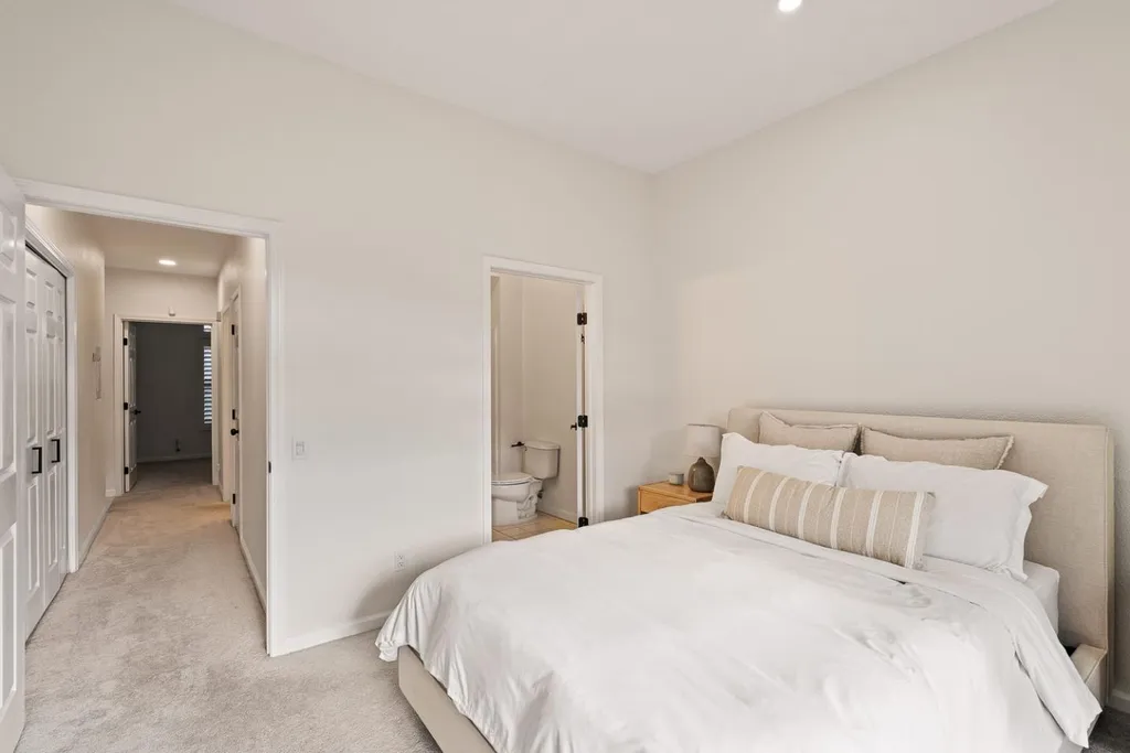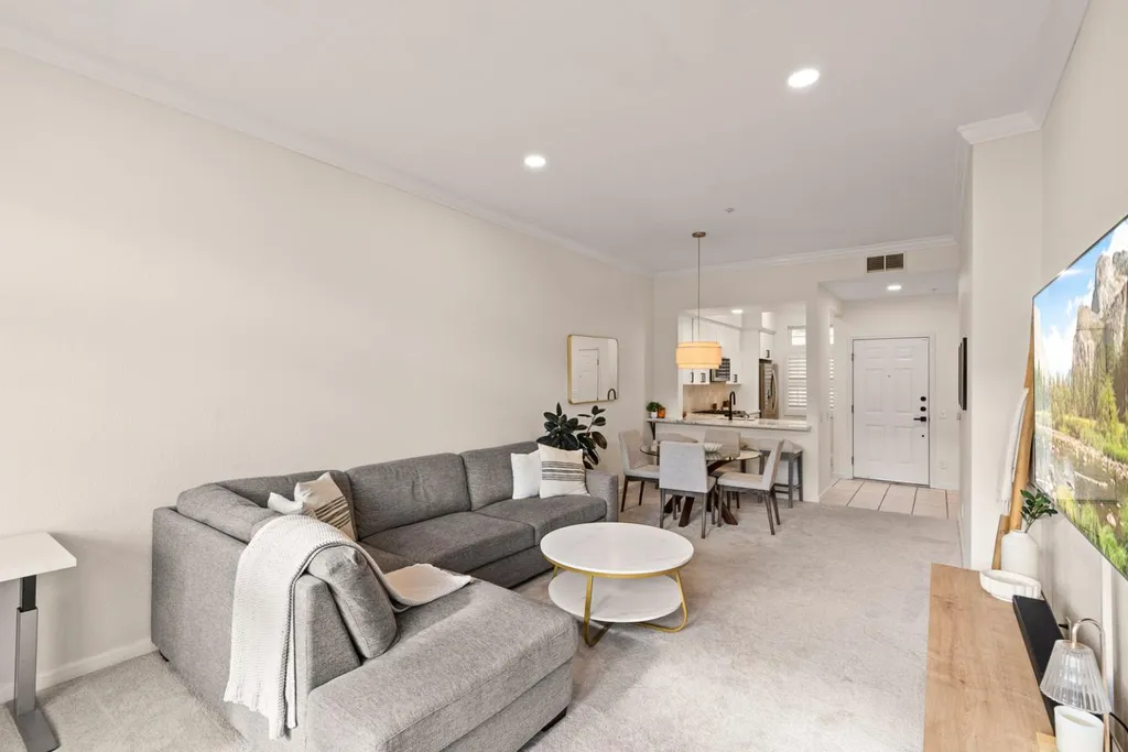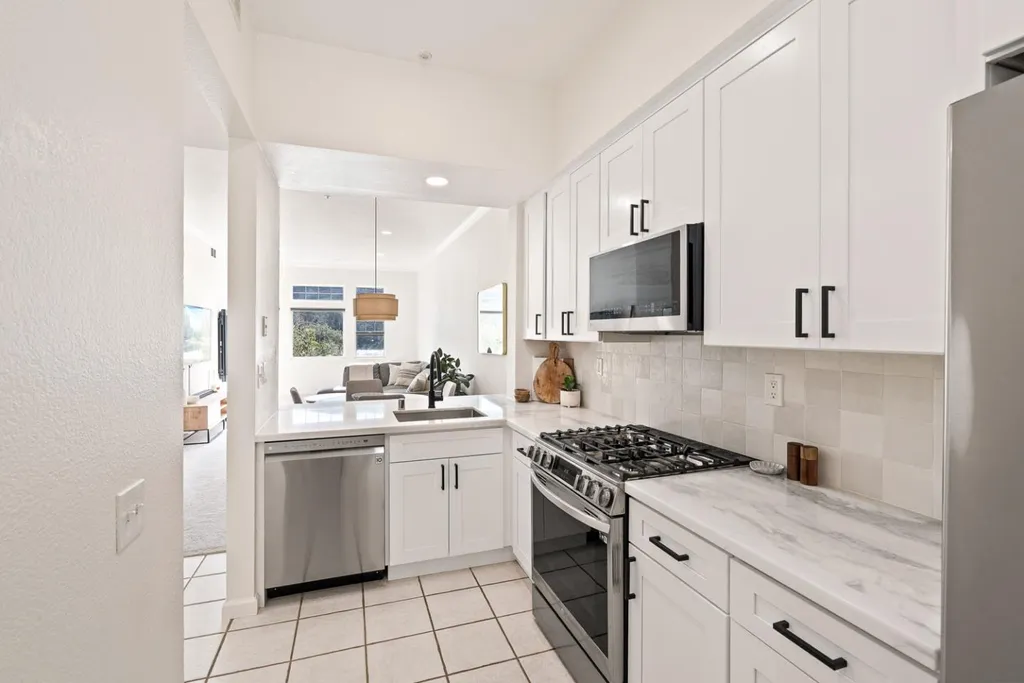 Welcome to 833 Swallowtail Court, a beautifully updated 2-bedroom, 2-bathroom condo in the peaceful hillside community of Brisbane. This bright, single-level home blends modern upgrades with an inviting, functional layout. The spacious living room features large windows, natural light, recessed lighting, and an open area ideal for dining. The updated kitchen includes modern cabinetry, quartz countertops, a stylish backsplash, stainless steel appliances, and a peninsula with breakfast bar seatingperfect for casual meals and entertaining. Both bedrooms offer plush carpeting and great natural light. The main bedroom includes recessed lighting, ample closet space, and direct access to a private balcony with serene mountain views. Its ensuite bathroom features an upgraded double-sink vanity, modern lighting, and a shower-over-tub with a sleek glass panel. The second bedroom is perfect as a guest room, additional bedroom, or home office, with an updated second bathroom nearby. A dedicated laundry area with washer and dryer adds convenience, along with two designated parking spaces. Located in a well-maintained community near parks, trails, shopping, and dining, this home offers comfort and accessibilityjust minutes from San Francisco, SFO, and Highway 101.