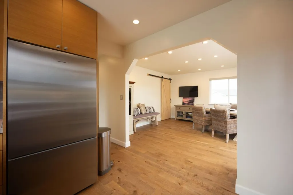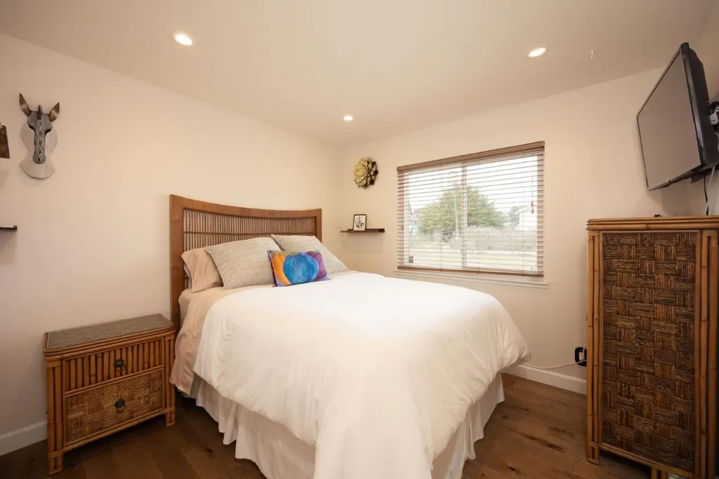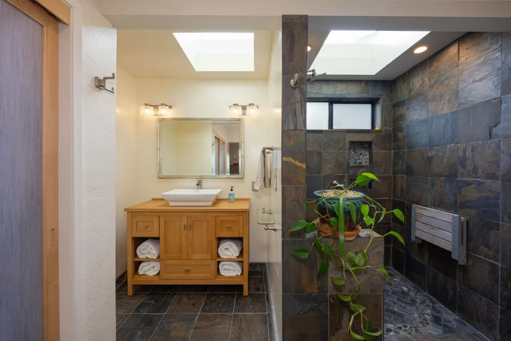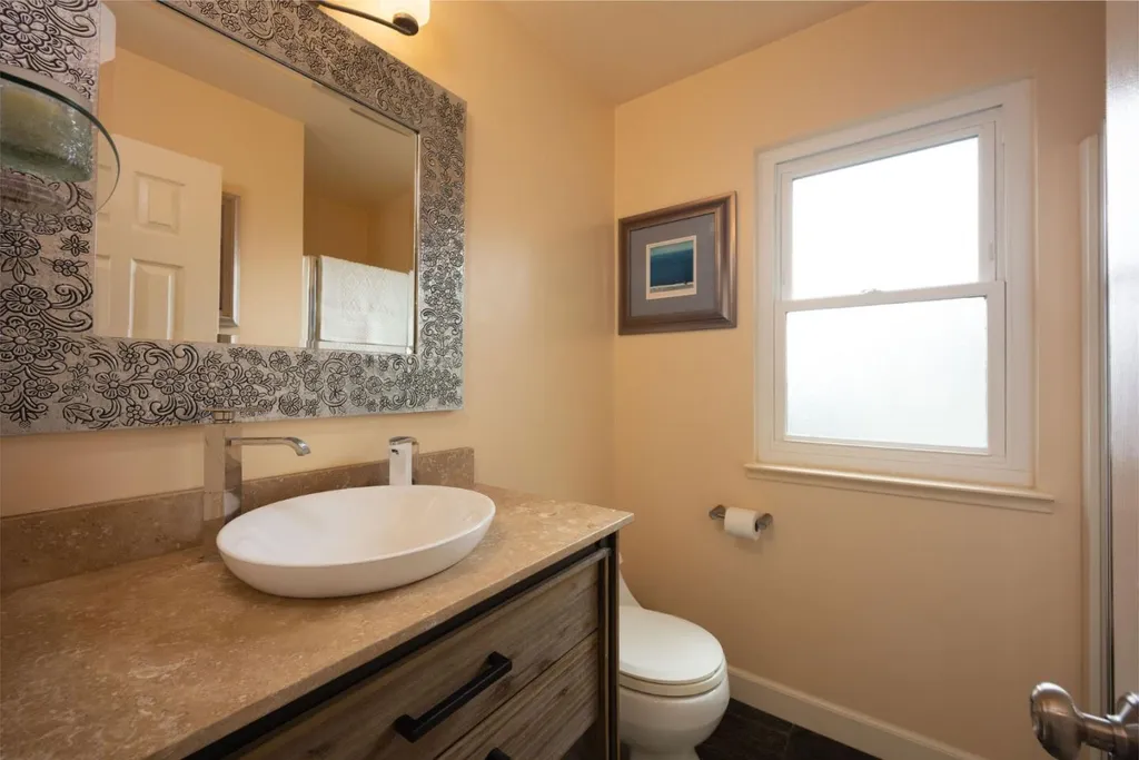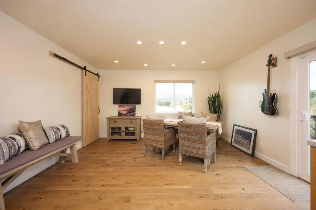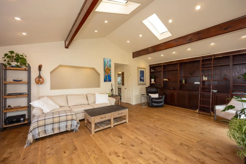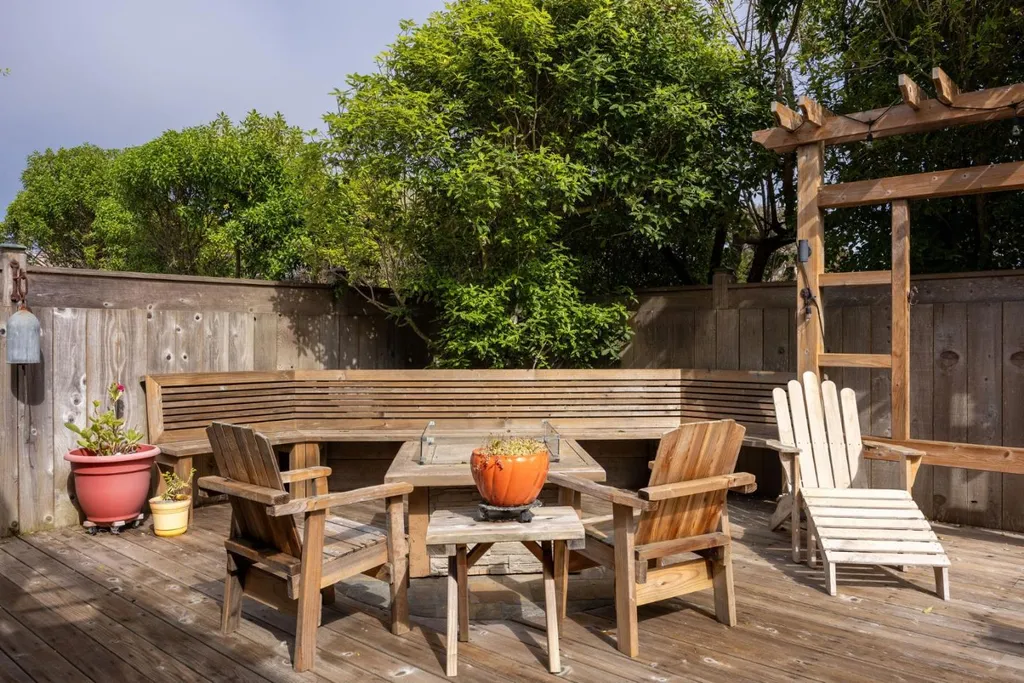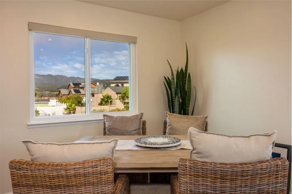 Where ocean sunsets meet everyday comfort-Seal Cove living at its best. Welcome to this updated 1720 sq ft, 3 bed/3 bath home in Moss Beach's Seal Cove. All three bedrooms are located on the ground floor, including a primary suite with French doors opening directly to the spa patio and a spacious stone walk-in shower. Two full bedrooms serve the bedroom level, while a third full bathroom upstairs adds convenience for guests. The upstairs living spaces are filled with natural light, including vaulted ceilings, skylights, a dramatic slate fireplace, and custom built-ins with a rolling library ladder. From here, step out to the expansive front deck with ocean views or retreat to the back deck overlooking the gardens for BBQ's or morning coffee. Practical upgrades include a newer furnace, water heater, and water filtration system. An attached 2-car garage with laundry adds convenience. Located within the Cabrillo Unified Elementary School District, don't miss this beautifully updated home with ocean and mountain views in Moss Beach.