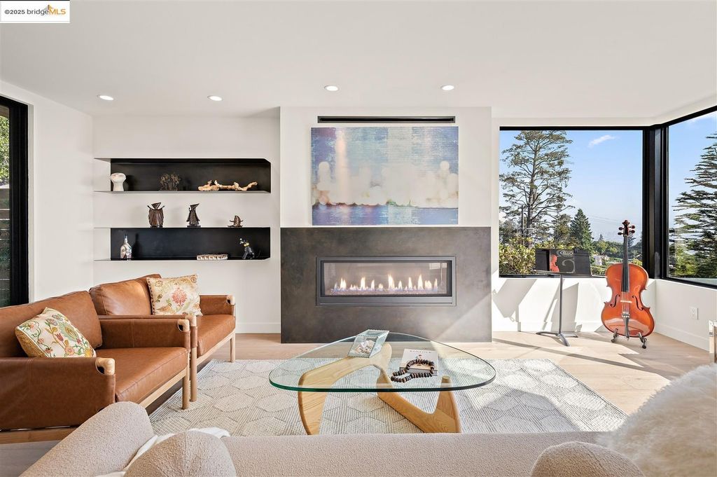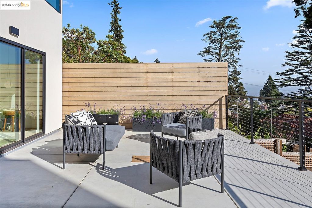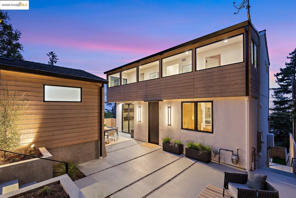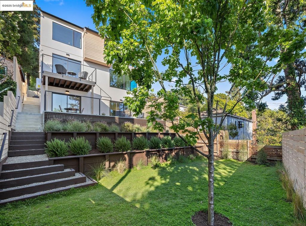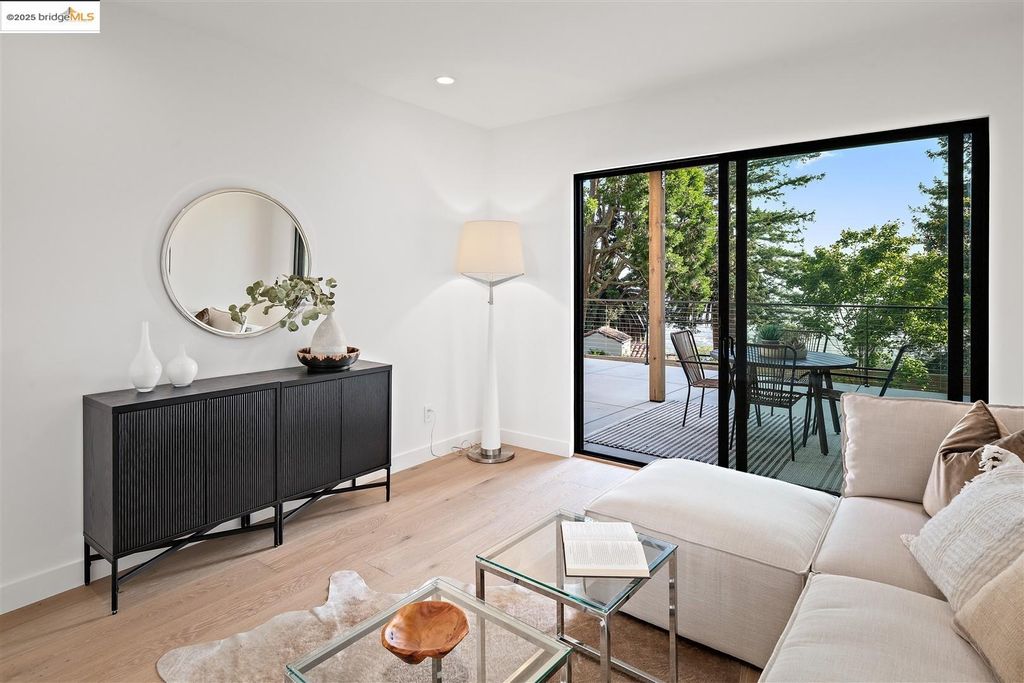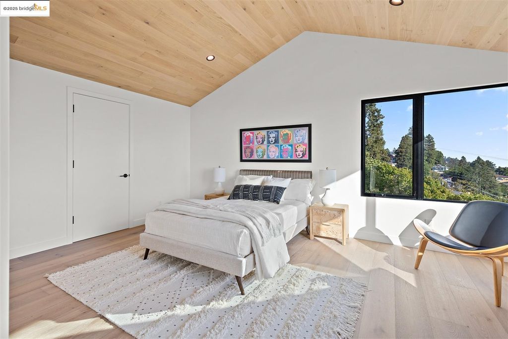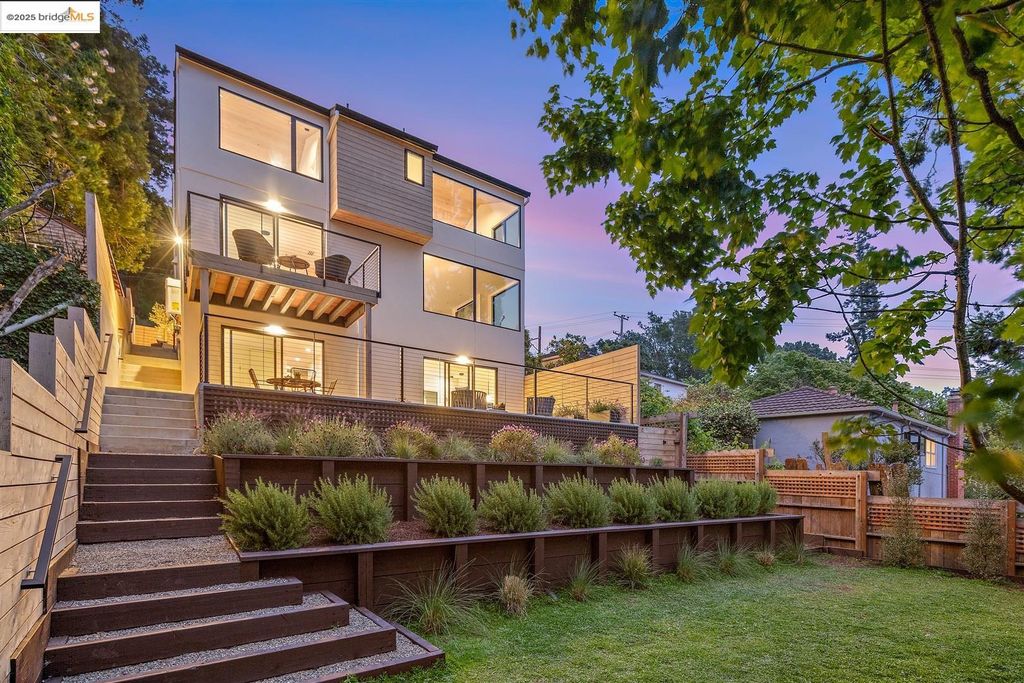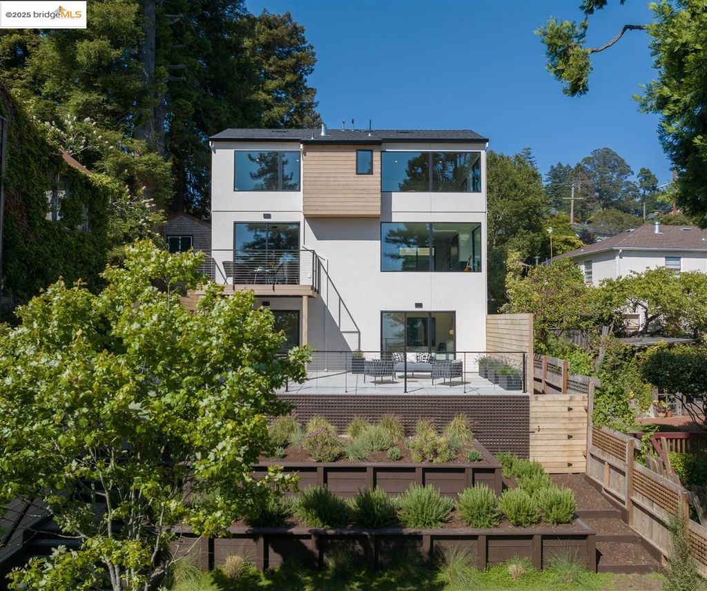 Sophisticated European modern showcase, built to exacting standards and filled with custom details and the work of local artisans, and set just up the hill from Berkeley's prized Gourmet District. Enjoy the play between elements such aa fabricated steel shelving and airy glass walls in the living room, precise corners and sinuous curves, a cozy corner seat in the grand upstairs gallery or the open Bay views that extend to the horizon from the upstairs deck. Imported materials fill the home, from the white oak flooring to the kitchen counters and cabinetry and the bathrooms. This home has just been rebuilt from the foundation to the top of the roof, completely up to modern engineering standards, with GREEN features and systems designed for your easy and comfortable lifestyle.