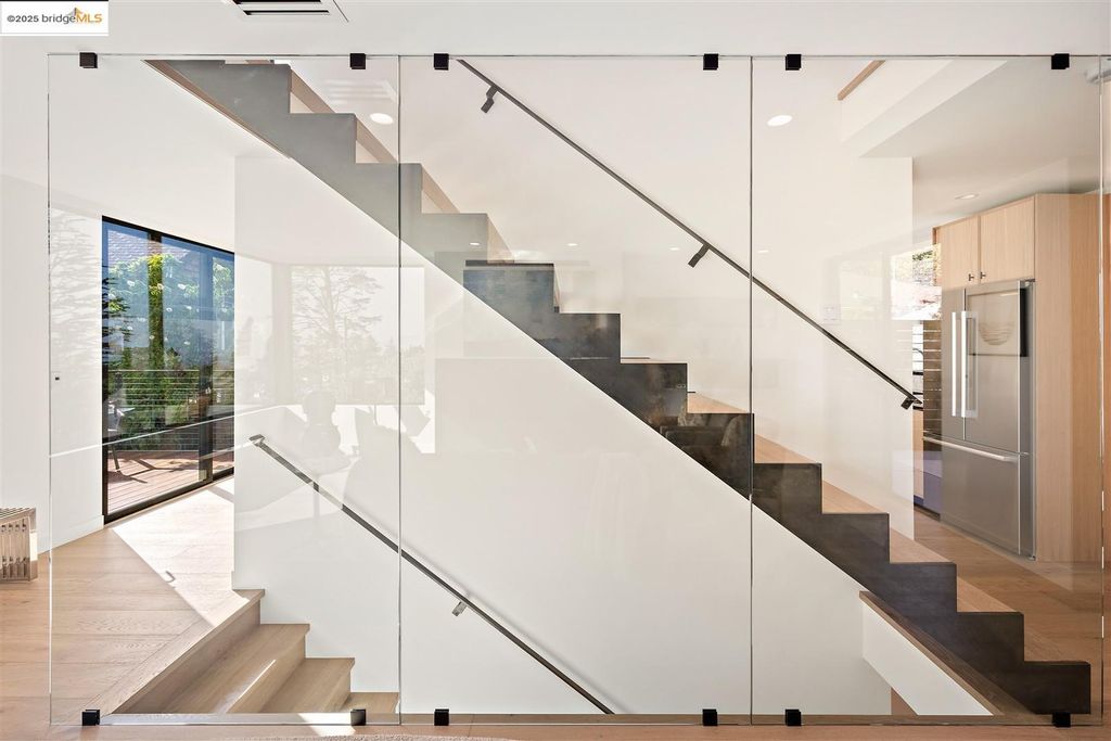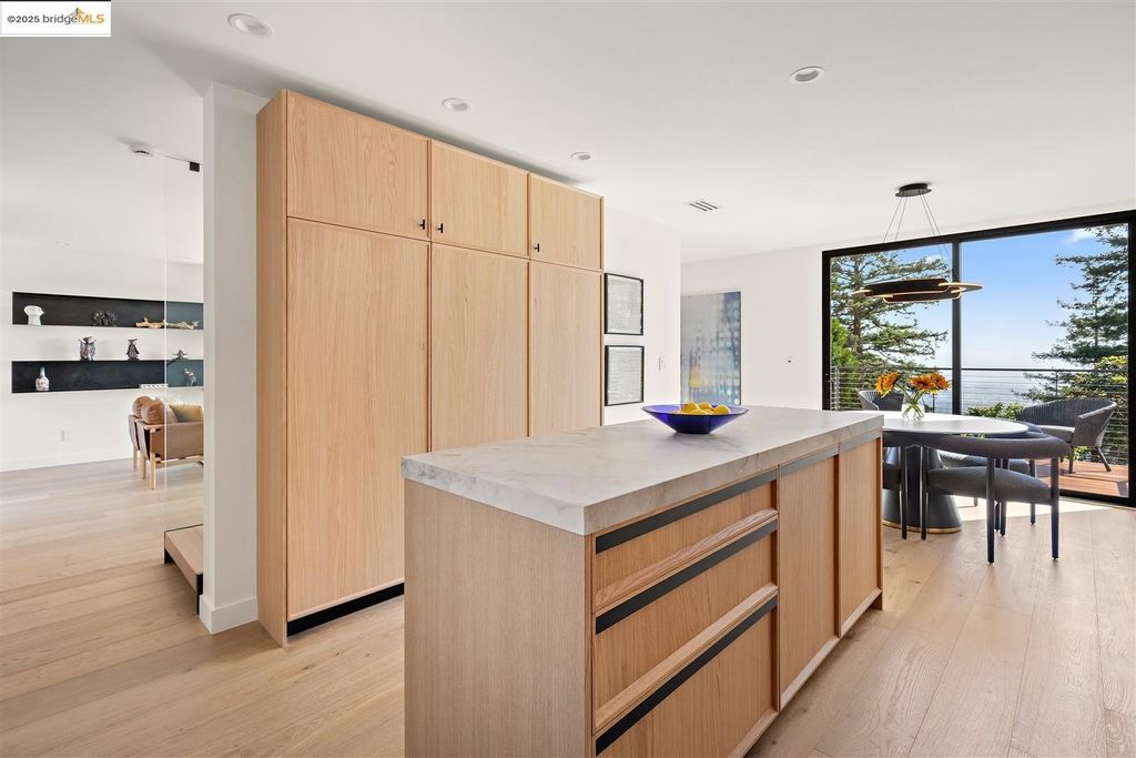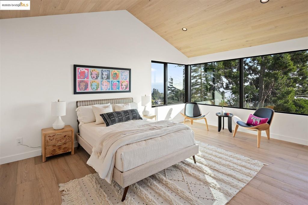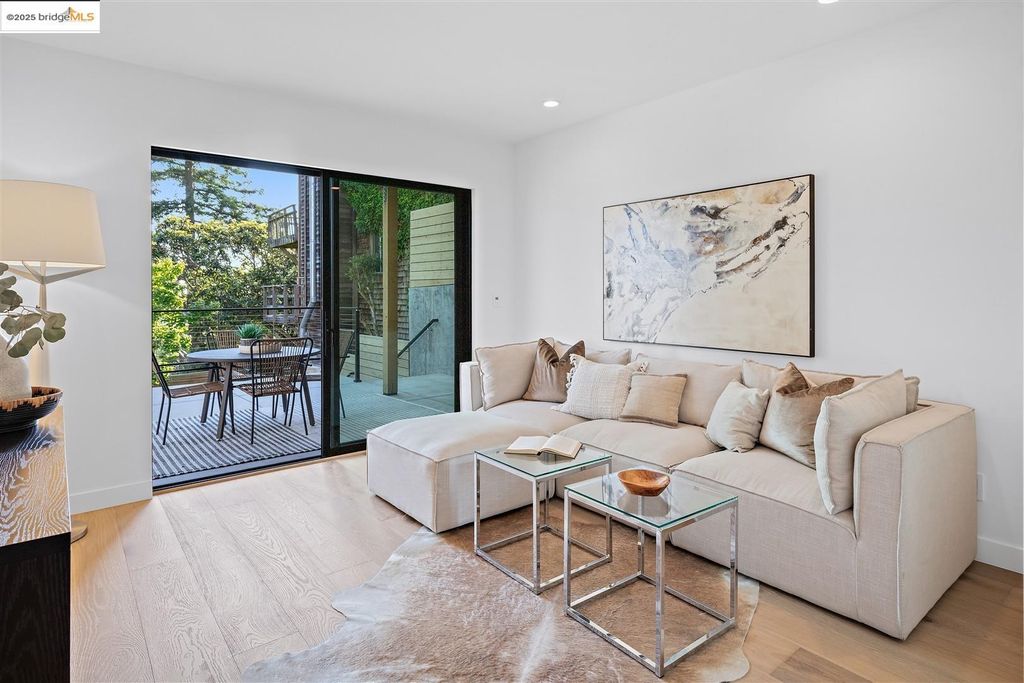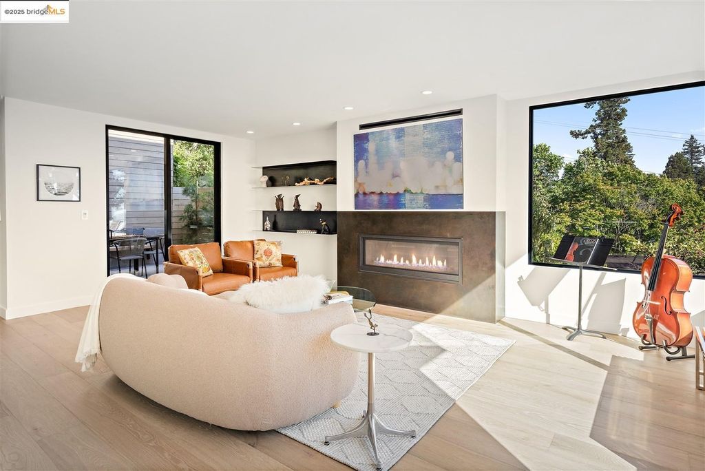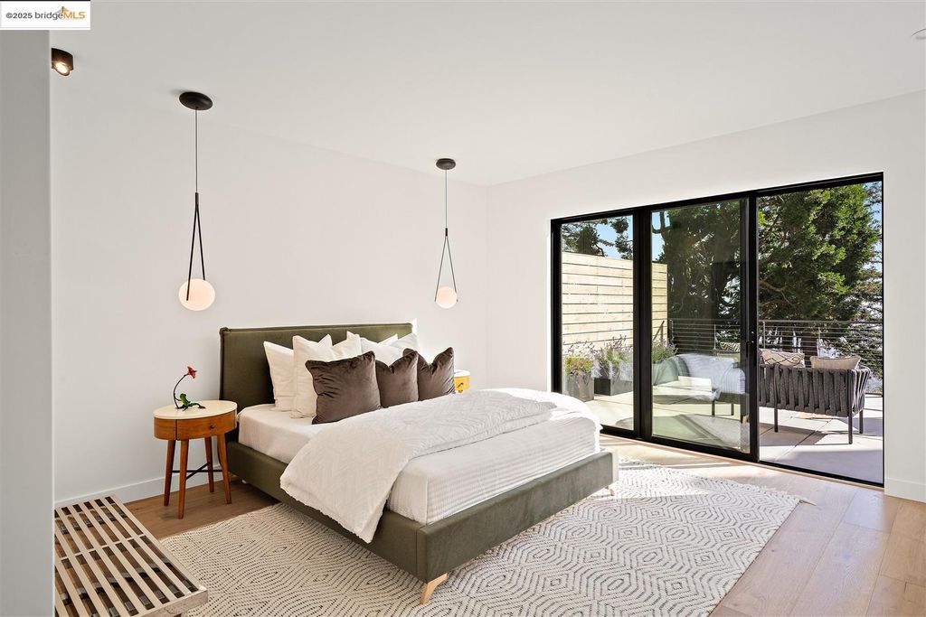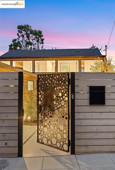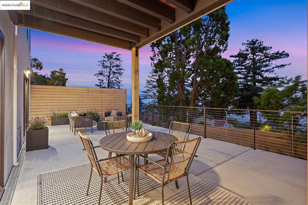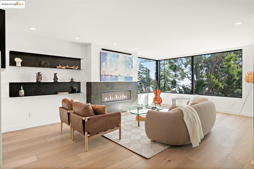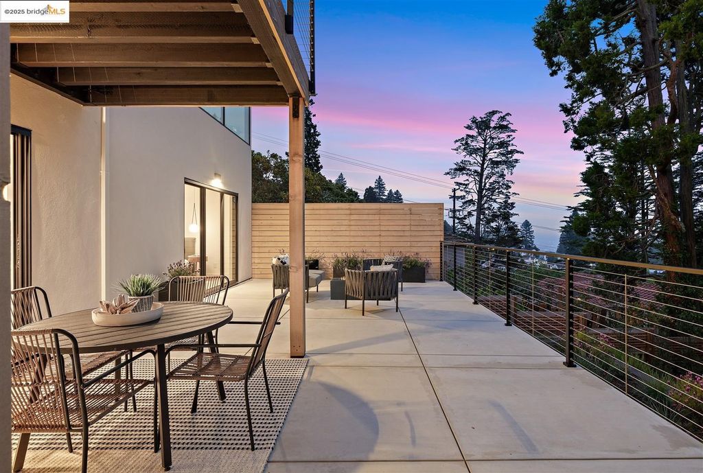 Sophisticated European modern showcase, built to exacting standards and filled with custom details and the work of local artisans, and set just up the hill from Berkeley's prized Gourmet District. Enjoy the play between elements such aa fabricated steel shelving and airy glass walls in the living room, precise corners and sinuous curves, a cozy corner seat in the grand upstairs gallery or the open Bay views that extend to the horizon from the upstairs deck. Imported materials fill the home, from the white oak flooring to the kitchen counters and cabinetry and the bathrooms. This home has just been rebuilt from the foundation to the top of the roof, completely up to modern engineering standards, with GREEN features and systems designed for your easy and comfortable lifestyle.
