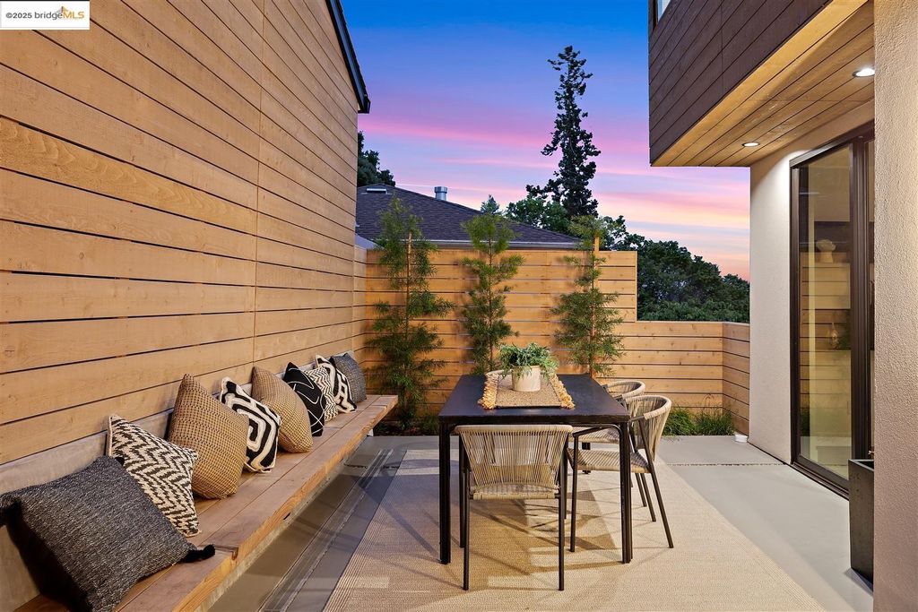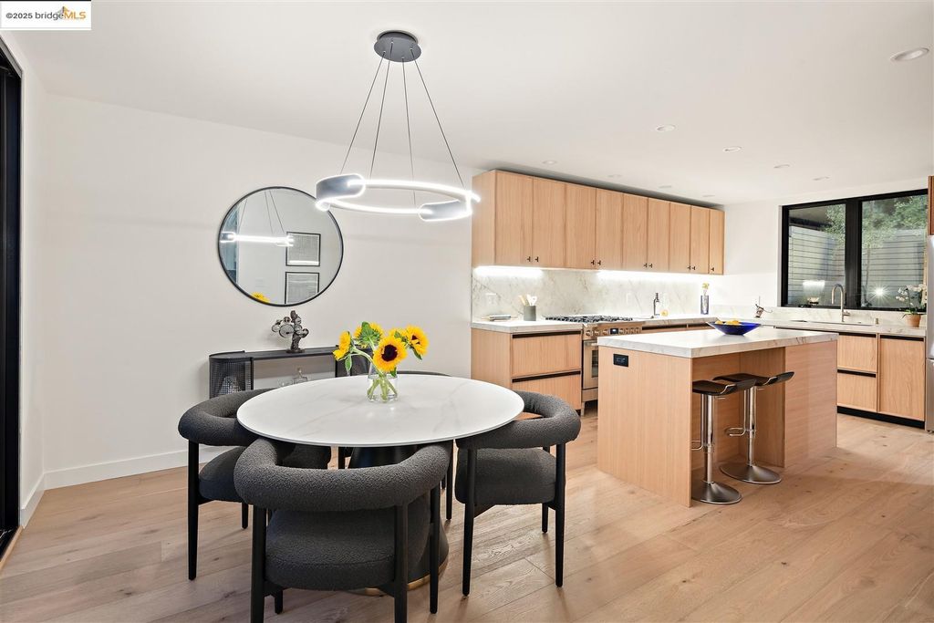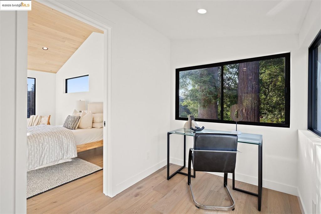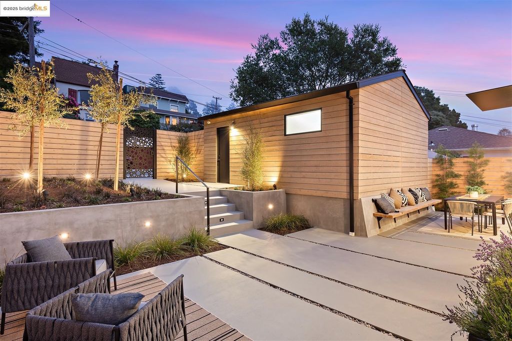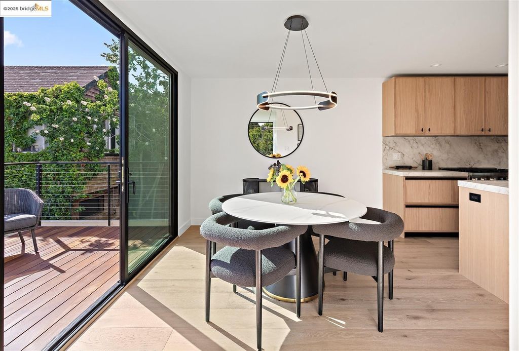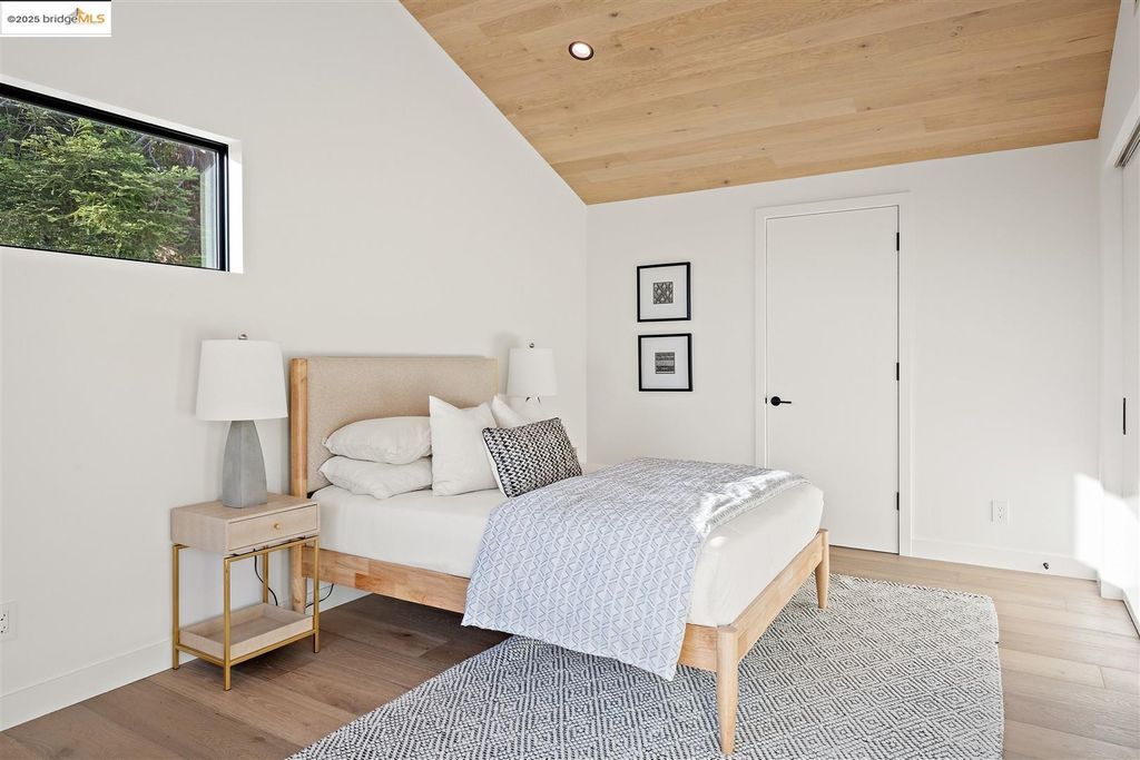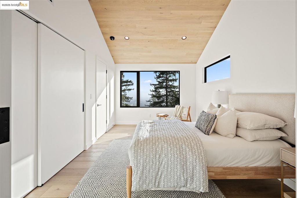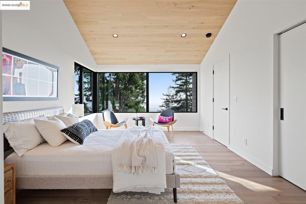 Sophisticated European modern showcase, built to exacting standards and filled with custom details and the work of local artisans, and set just up the hill from Berkeley's prized Gourmet District. Enjoy the play between elements such aa fabricated steel shelving and airy glass walls in the living room, precise corners and sinuous curves, a cozy corner seat in the grand upstairs gallery or the open Bay views that extend to the horizon from the upstairs deck. Imported materials fill the home, from the white oak flooring to the kitchen counters and cabinetry and the bathrooms. This home has just been rebuilt from the foundation to the top of the roof, completely up to modern engineering standards, with GREEN features and systems designed for your easy and comfortable lifestyle.
