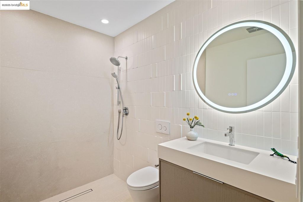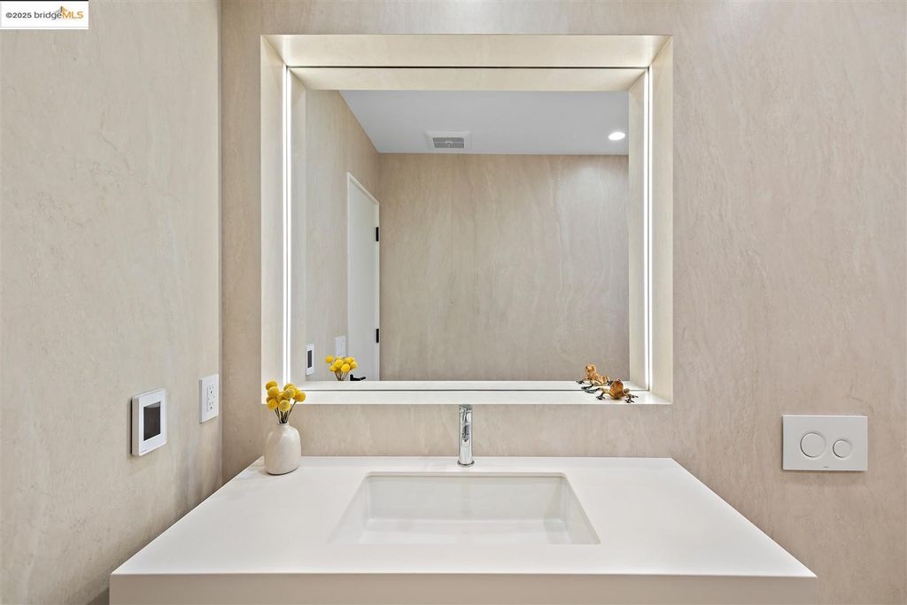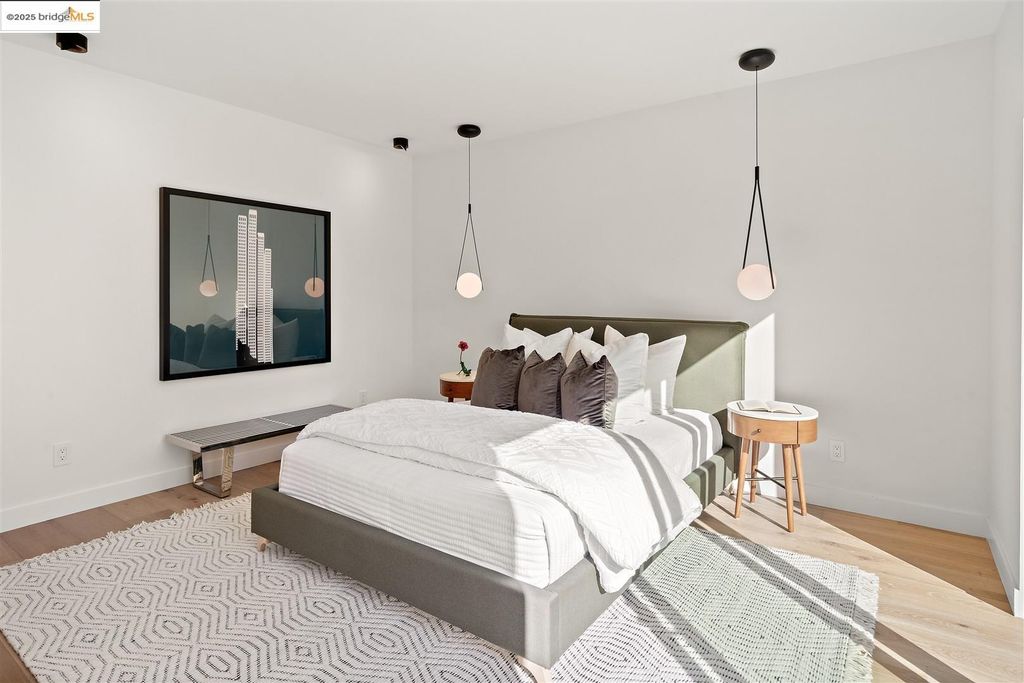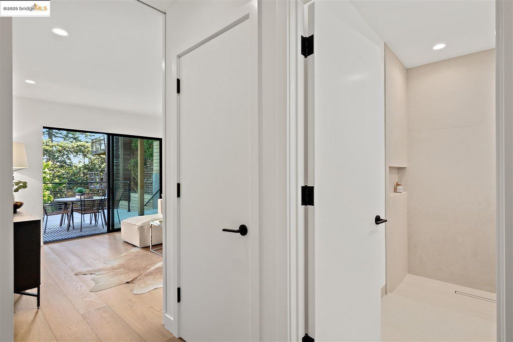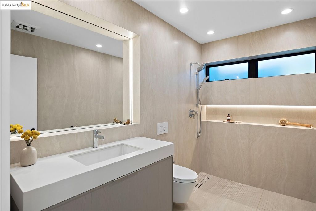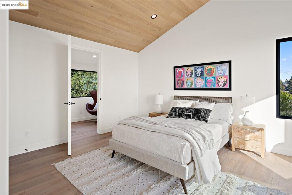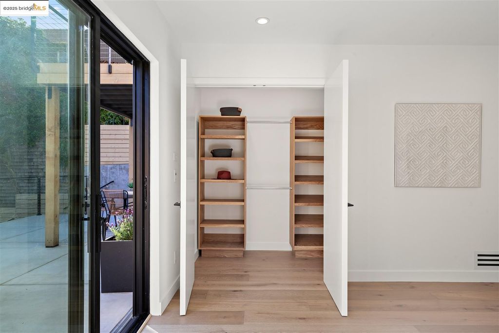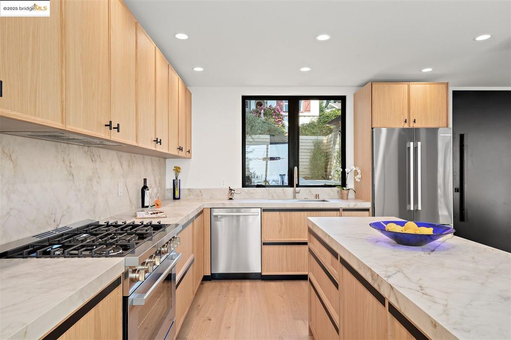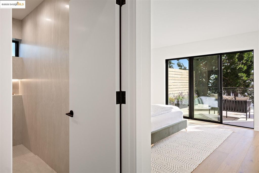 Sophisticated European modern showcase, built to exacting standards and filled with custom details and the work of local artisans, and set just up the hill from Berkeley's prized Gourmet District. Enjoy the play between elements such aa fabricated steel shelving and airy glass walls in the living room, precise corners and sinuous curves, a cozy corner seat in the grand upstairs gallery or the open Bay views that extend to the horizon from the upstairs deck. Imported materials fill the home, from the white oak flooring to the kitchen counters and cabinetry and the bathrooms. This home has just been rebuilt from the foundation to the top of the roof, completely up to modern engineering standards, with GREEN features and systems designed for your easy and comfortable lifestyle.