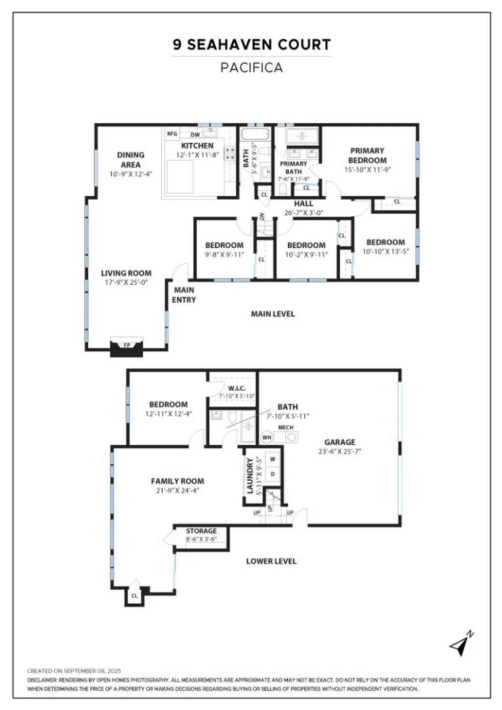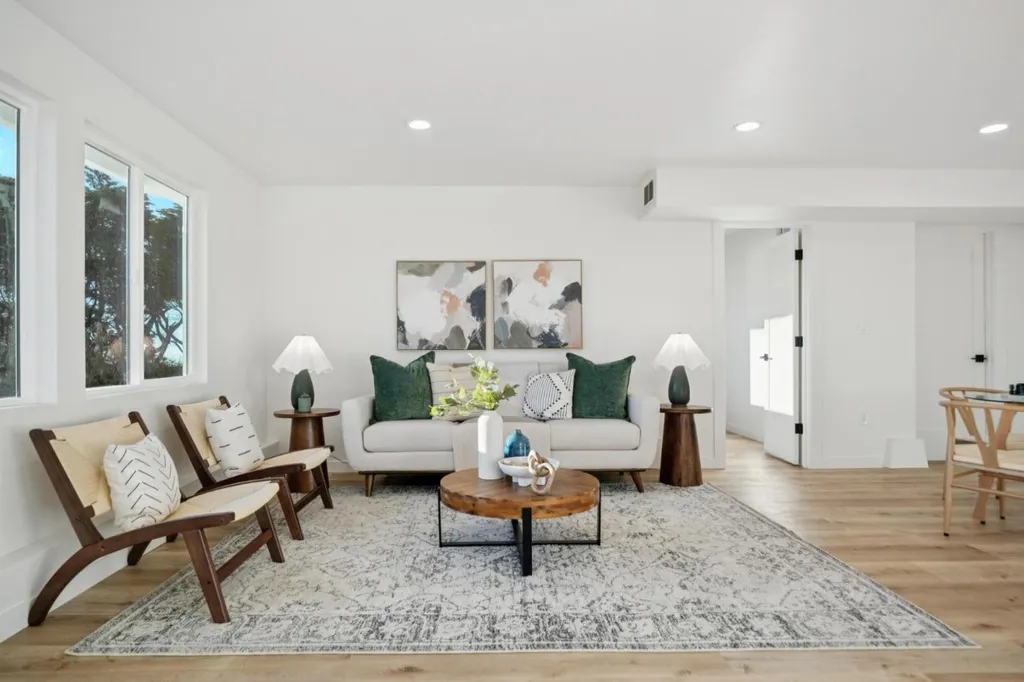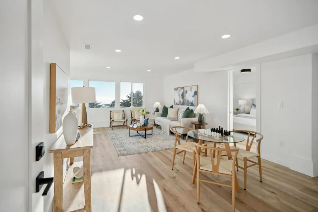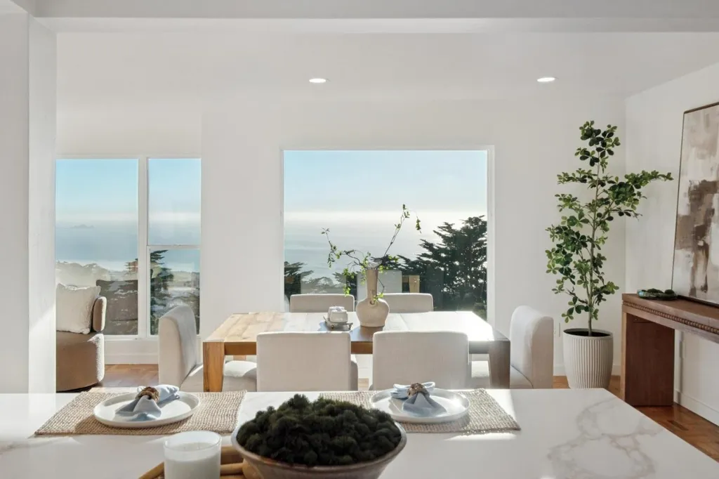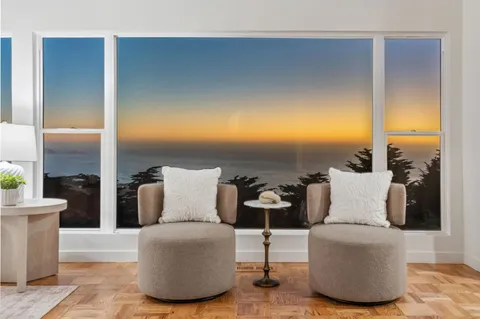 Ideally situated to capture sweeping ocean views, this newly remodeled residence showcases custom finishes and thoughtful design throughout. The spacious floor plan features four large bedrooms on the main level, including a luxurious primary suite with a spa-inspired en suite bath. At the heart of the home, the chefs kitchen features custom cabinetry, premium appliances, and a generous center island, all oriented toward the unobstructed ocean views, creating a seamless flow for cooking and entertaining. The lower level includes a large family room, full laundry area, and a private guest suite, ideal for extended family or visiting guests. Out front, a beautifully landscaped, fenced-in lawn offers a welcoming outdoor space for relaxation, play, or entertaining, perfect for enjoying coastal sunsets. The side-by-side parking, quiet cul-de-sac location, and thoughtful layout add convenience to the homes list of premium features. This exceptional coastal property combines modern luxury with timeless design, truly a Pacifica home you wont want to miss.