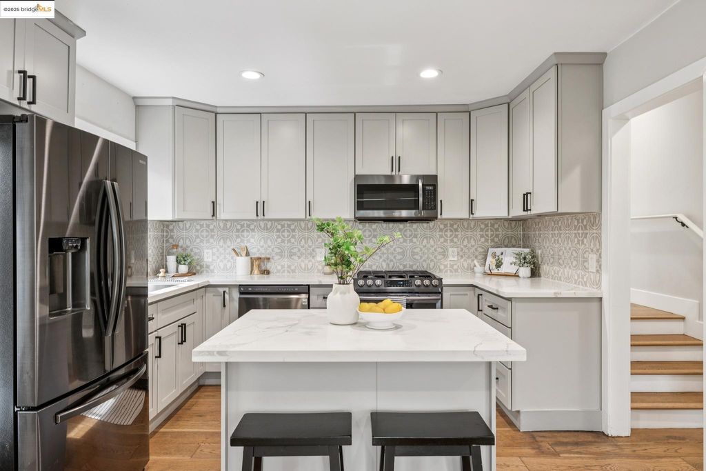 Introducing Bella Vista beauty, 901 E 28th St in Oakland, California! Built in 1912, this 1,290 sqft craftsman features 3 bedrooms and 1.5 bathrooms on a 4,950 sqft corner lot. This gem of a home boasts curb appeal with a palm tree-lined street and wraparound fence. The classic design is combined with pops of paint, tile and wallpaper to bring modern accents; and an abundance of natural light welcomes you. The open layout and indoor-outdoor flow makes everyday living and entertaining a breeze. Engineered hardwood, stainless steel appliances, an expansive deck and backyard with mature fruit trees and new artificial grass are just a few of the standout features. Located in a charming and thriving neighborhood near Lake Merritt with easy commuter and public transportation access.