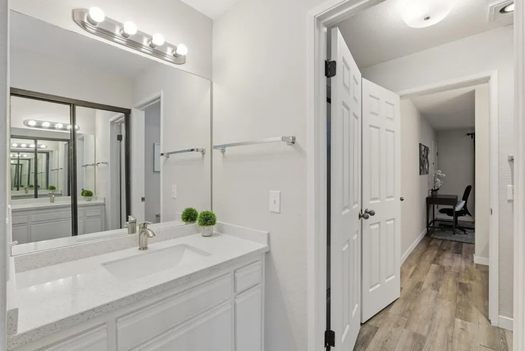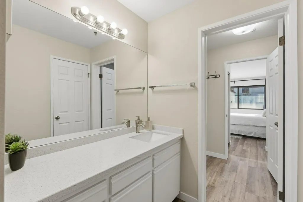 Beautifully updated and truly move-in ready, this bright condo features new flooring throughout, fresh interior paint, recessed lighting, updated fixtures, new quartz countertops and sinks, and a quality in-unit Miele washer and dryer, all complemented by the comfort of central air conditioning. A lovely private balcony overlooks the picturesque courtyard, creating a peaceful spot to enjoy your morning coffee. The spacious layout includes two generously sized bedrooms connected by a Jack-and-Jill bathroom. Ideally located in the heart of Palo Alto Central, you are just steps from shops, restaurants, the Farmers Market, CalTrain, local parks, & within close proximity to top-rated schools, major employers such as Facebook, Google, and Palantir, & Stanford University, which is only a half mile away. University Avenue, Town & Country Village, and Stanford Shopping Center are also nearby for added convenience. The community offers a pool, hot tub, garden areas, bike racks, mailroom, private parking garages, and dedicated storage. HOA dues include water, garbage, earthquake insurance, gated parking, swimming pool access, and a storage unit. The home comes with one assigned gated parking space (A84) & additional non-assigned parking in the non-gated garage, along with storage unit #18