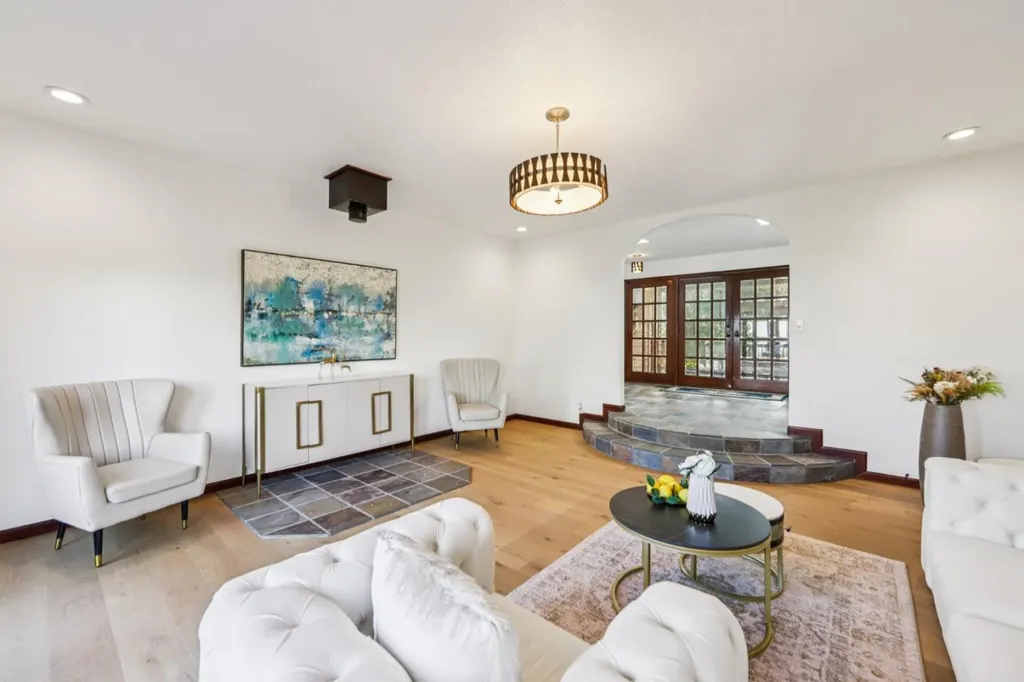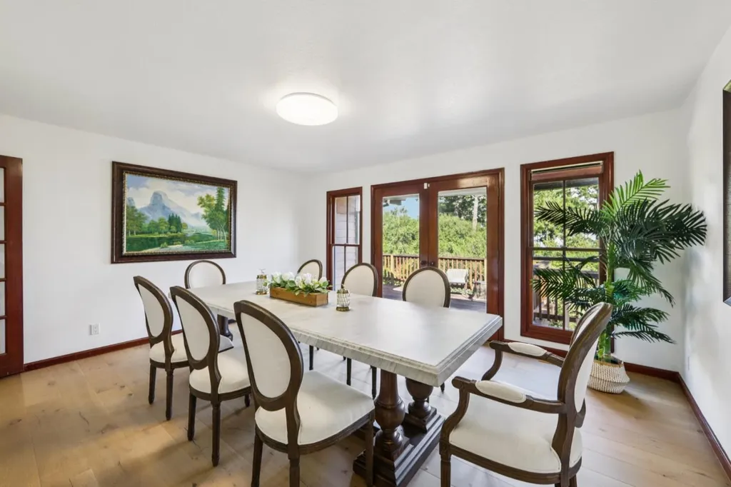 Perched a top of Skyline Ridge, this gated custom estate offers spectacular views of the San Francisco South Bay, including Mt. Diablo, Stanford, and San Jose. Nestled on a private 5+ acre east-facing parcel near the 942-acre Wunderlich Park, the home features 5 bedrooms, 4.5 bathrooms, 4 large decks, and a 2-car garage. The gourmet kitchen with center island, dining room, and large pantry opens to the great room with vaulted ceiling, skylights, and 3 French doors. Upstairs showcases imported slate floors, a central family/activity room, a guest half bath, a library/office, and a spacious primary suite with a walk-in shower, a 2-person jetted spa, a private deck, double sinks, a bidet, and a walk-in closet. A nearby flexible room could serve as a bedroom, nursery, or den. The laundry area opens to a flat yard suitable for a future pool, tennis court, or stables. Downstairs includes 2 bedrooms, a large bath, a sitting room, and a fully self-contained ADU with private entry and a deck. In the coveted Portola Valley/Woodside School District, the estate feels private yet is minutes from Alice's Restaurant, Fogarty Winery, central Woodside, Stanford, and the Coast.