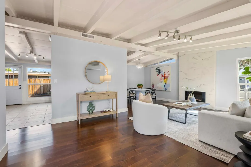 Welcome to this lovely 3-bedroom, 2-bathroom single-family home nestled in the desirable area of Santa Clara. The spacious living room is highlighted by a cozy fireplace and updated hardwood flooring, providing a warm and inviting space. The adjacent kitchen boasts granite countertops, stainless steel appliances, and ample cabinetry, perfect for all your culinary needs. The dining area, conveniently situated next to the kitchen opens to the backyard, offering effortless indoor-outdoor living. The home features a primary en-suite with a bathroom that includes a shower over the tub, along with two additional bedrooms. A hallway bathroom also comes with a shower over the tub and a skylight, providing plenty of natural light. Completing the home is a 2-car garage equipped with a washer and dryer. Located near top tech companies like Nvidia (7min drive), Apple (7min drive), and Google (12min drive), and close to restaurants, shopping, and parks, with easy access to Lawrence and San Tomas Expressways. Dont miss this wonderful opportunity!