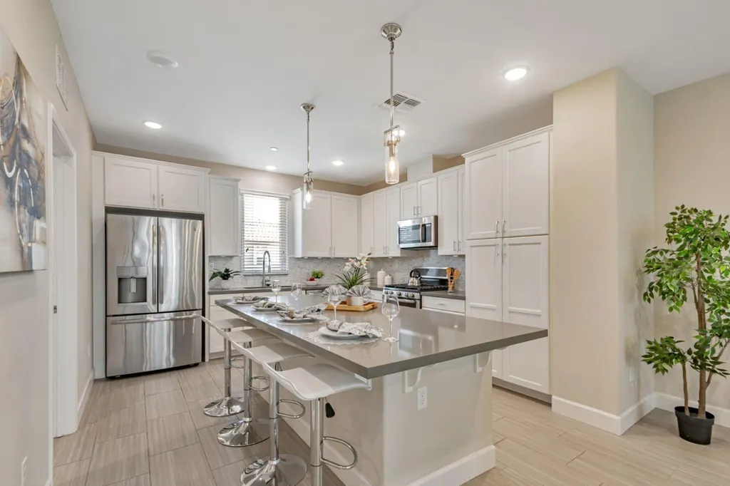 Welcome to this stunning, newer townhouse in the beautiful pristine Prynt community. Boasting an impressive 1,708 square feet of living space, this bright and airy open floor plan features three bedrooms and 3.5 bathrooms, along with a two-car garage that provides direct access to the home and additional storage. The highly sought-after design includes a bedroom and a full bathroom conveniently located on the first floor, with each bedroom having its own dedicated bathroom. Experience the expansive family room and modern kitchen on the second floor, complemented by a sunny balcony perfect for enjoying California's indoor/outdoor lifestyle. It comes complete with stainless steel appliances, including a range, dishwasher, microwave, and refrigerator. Perfect location: close to BART, Great Mall, major tech HQs, public amenities, park, cinema, markets, acclaimed schools, prime retailers, and so much more!