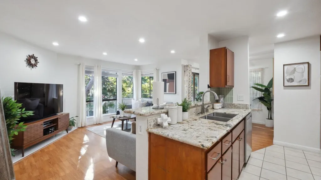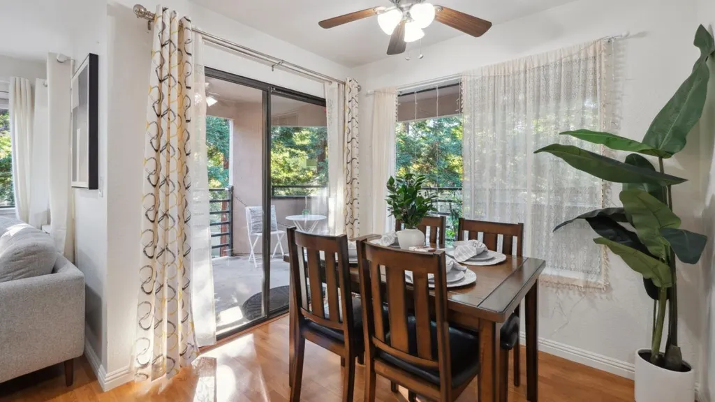 Discover serene living in this beautifully updated north-facing 2-bedroom, 2-bathroom corner-end unit condo, nestled among majestic redwoods. With an open floor plan and abundant natural light, this home is perfect for entertaining or unwinding in your private retreat. Step outside to your expansive wrap-around balcony, offering a peaceful oasis surrounded by nature. Inside, enjoy the convenience of in-unit laundry and a wealth of community amenities, including a pool, tennis court, gym, and more. This unit also boasts incredible perks like HOA coverage for water, garbage, and amenities! Situated in a highly desirable neighborhood with top-rated schools, 39029 Guardino Drive is within walking distance from BART, minutes from the charming Niles District, Lake Elizabeth, and various top international cuisines. If you're looking for a home that combines modern convenience, a healthy lifestyle, and an unbeatable location, this is the one for you!