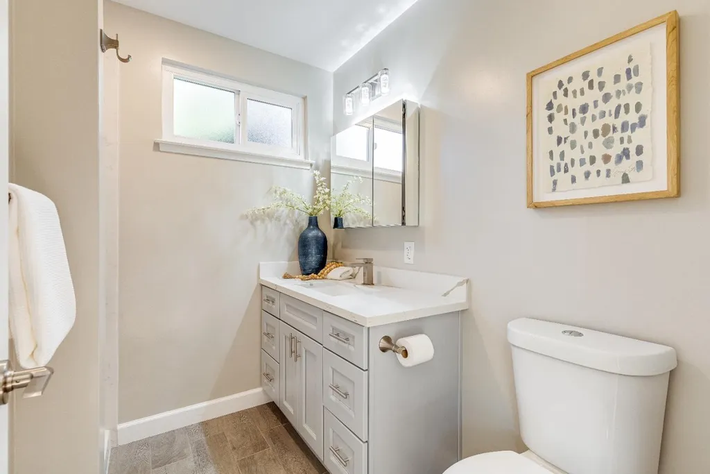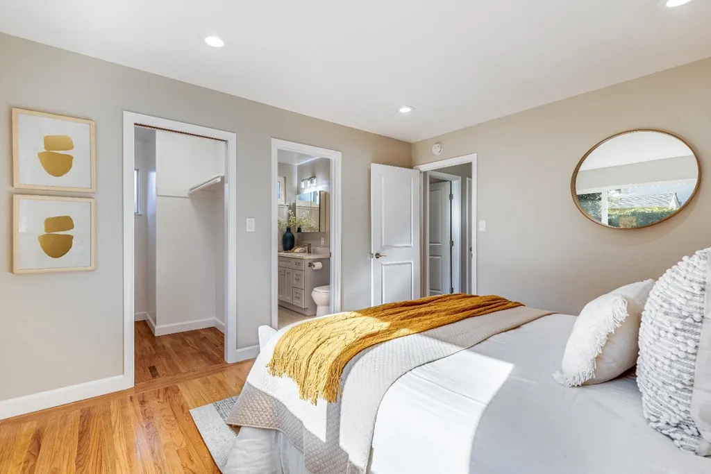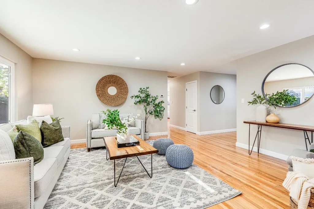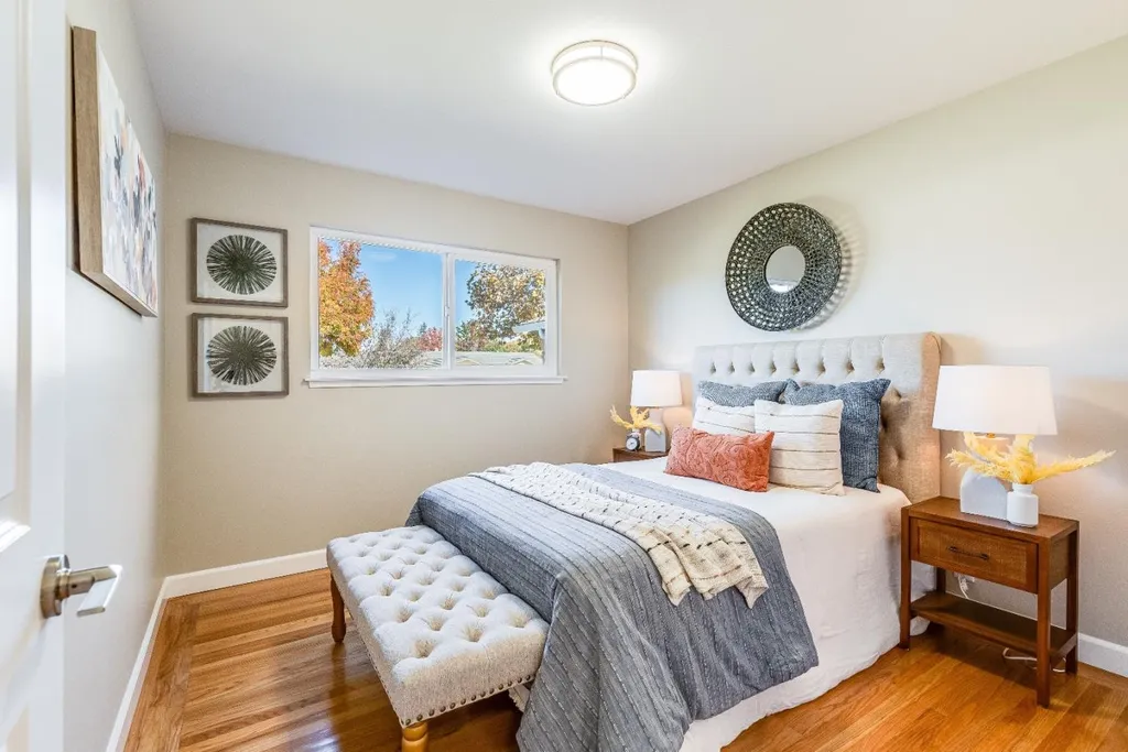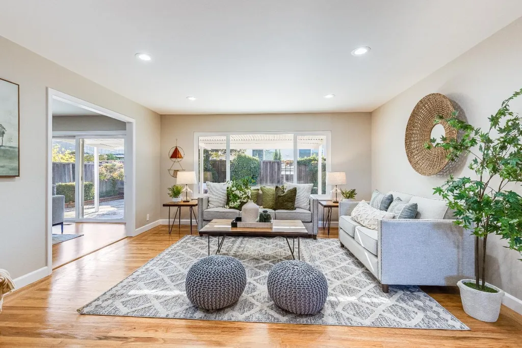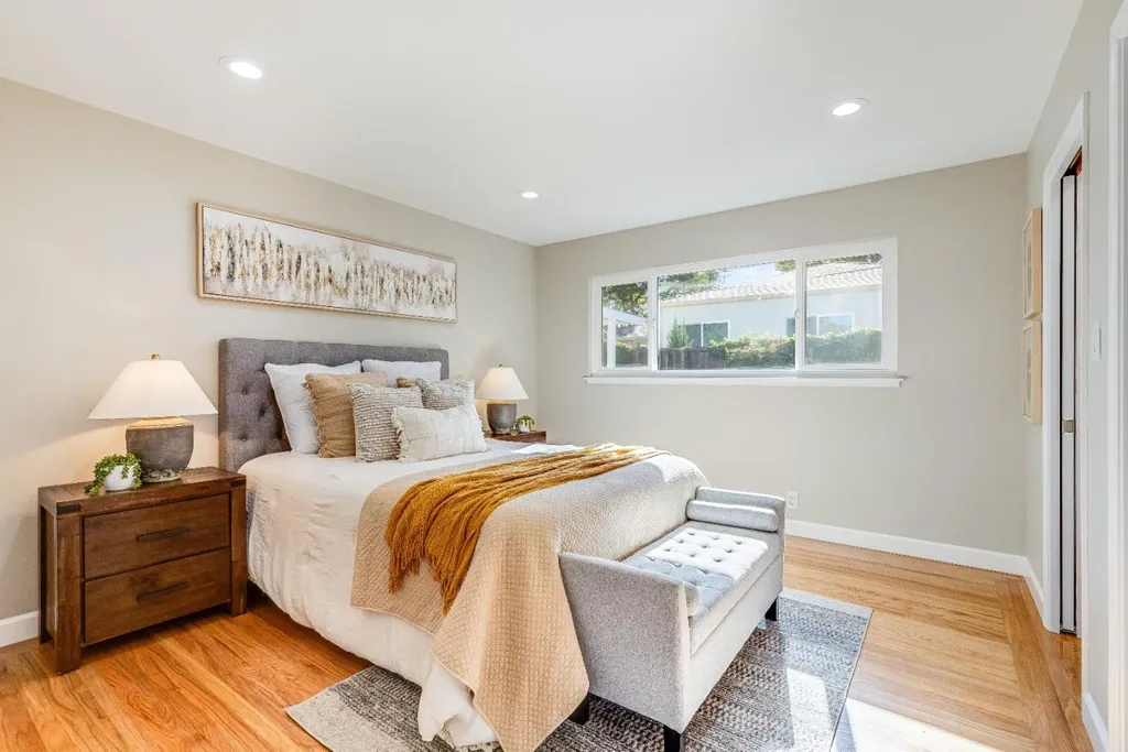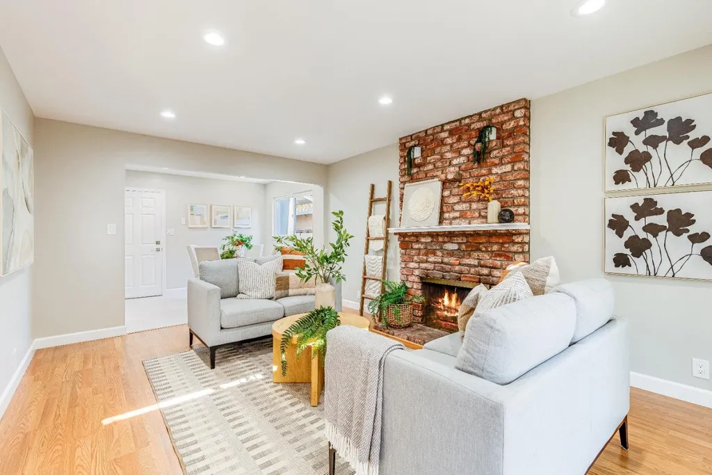 Stunning residence in highly sought after Strawberry Park neighborhood of West San Jose! Attractive single-story floorplan with distinctive living & family room, remodeled bathrooms, spacious primary bedroom with walk-in closet, refinished hardwood floors, new kitchen tile, freshly painted inside and out, updated landscaping, recessed LED lights and newer roof. Additional appealing features include central forced heat and AC, wood burning brick fireplace with mantel, dual pane windows, attached 2 car garage, and private backyard with patio cover and lemon tree. Located near Mitsuwa Marketplace, Westgate Center, Valley Fair, Santana Row, major freeways (280, 880, 17, & 85), several parks, great restaurants, quality public/private schools, plus easy access to Apple headquarters, multiple tech companies, & more!