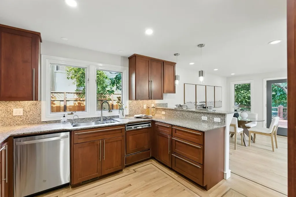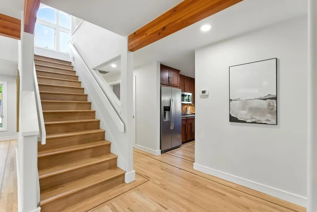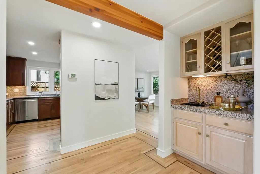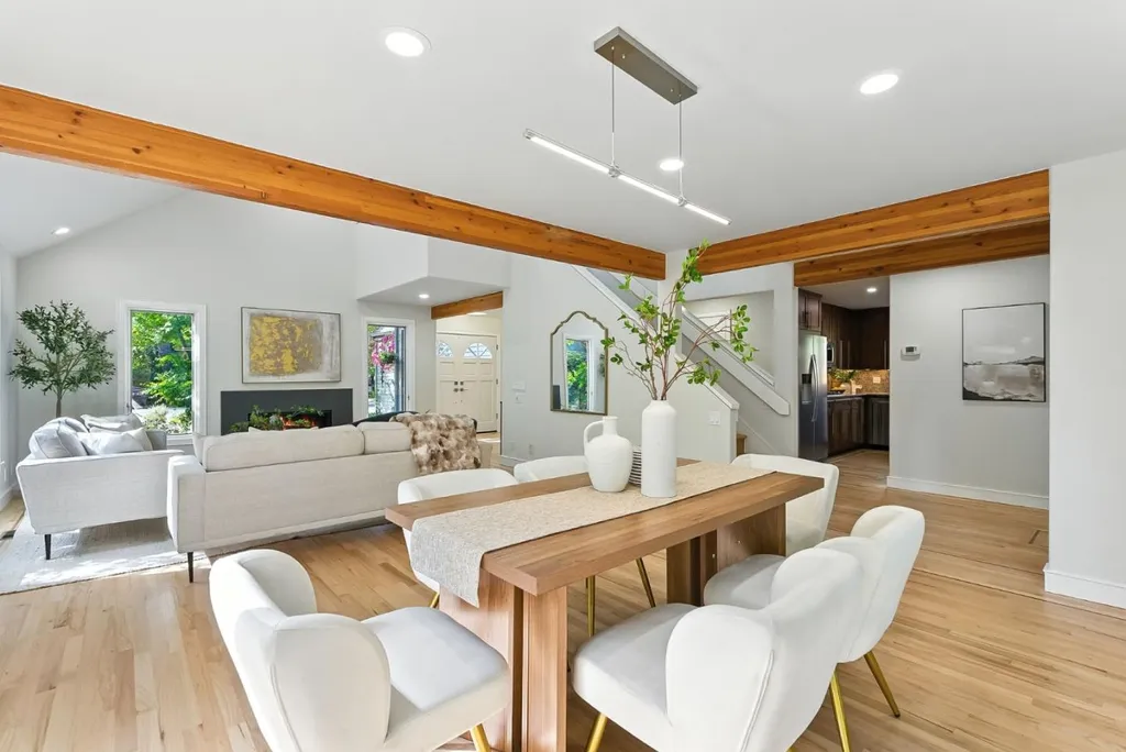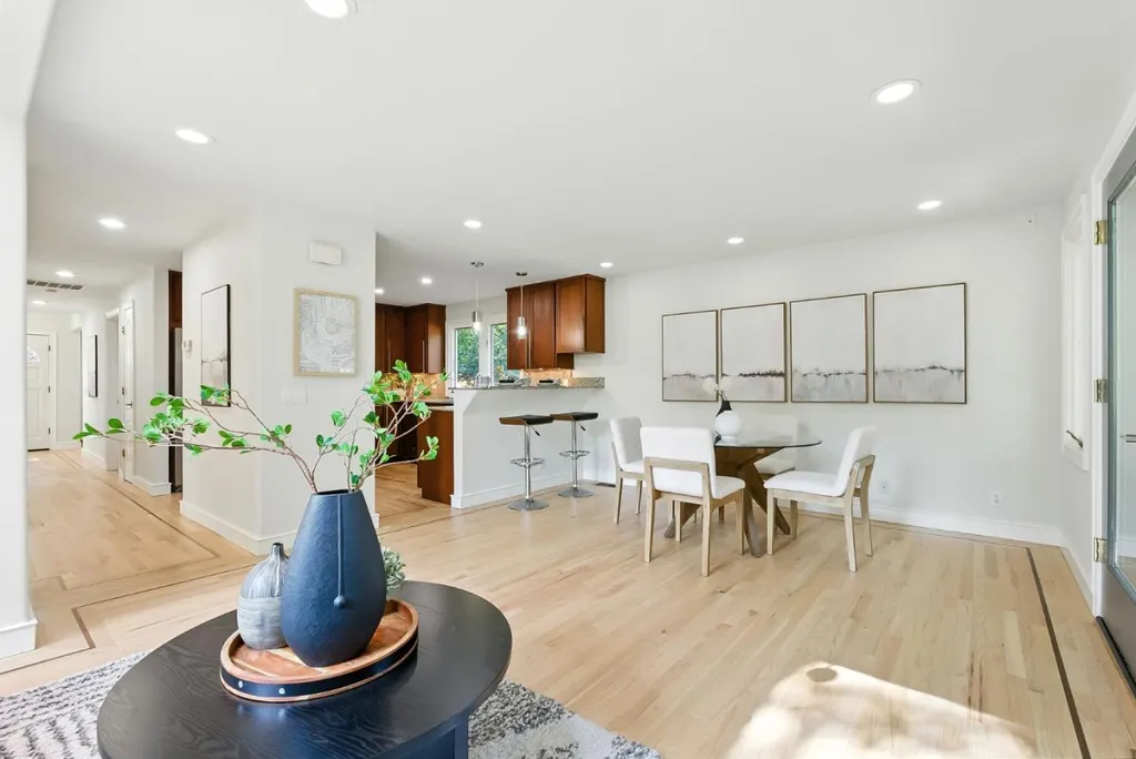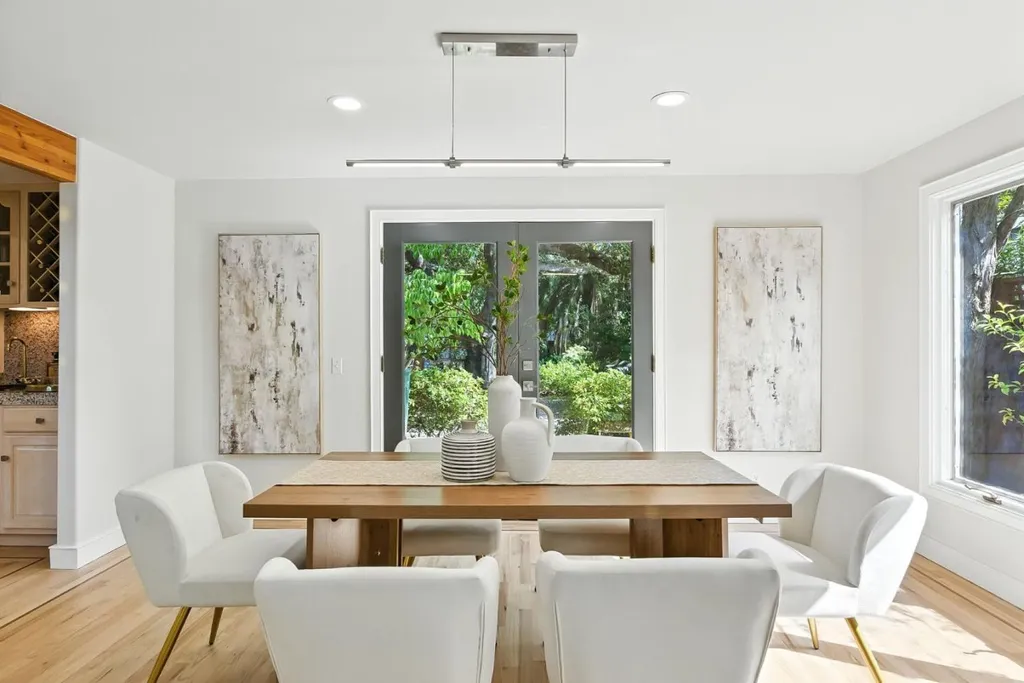 Tucked away on a quiet, tree-lined street, 715 Matadero Ave is a light-filled home that blends comfort, elegance, and versatility. With soaring ceilings and abundant natural light, this spacious layout is ideal for everyday living and effortless entertaining. The main level features a generous living room, formal dining room, and an inviting family room off the kitchen is perfect for casual gatherings. The gourmet kitchen includes ample counter space and two dishwashers for easy entertaining. A main-floor bedroom and full bath provide flexibility for guests, multigenerational living, or a home office. Upstairs, three vaulted-ceiling bedrooms include a serene primary suite with private balcony overlooking Matadero Creek. Two additional bedrooms and a full bath complete the upper level. A bonus attic space -- not in the square footage -- offers the ideal retreat for an office, studio, or storage. Enjoy outdoor living on the expansive redwood deck with tranquil views of the creek and surrounding greenery -- perfect for alfresco dining. With a two-car attached garage, flexible layout, and a prime Palo Alto location near shops, restaurants, parks, and top-rated schools (buyer to verify), this home is a rare find.