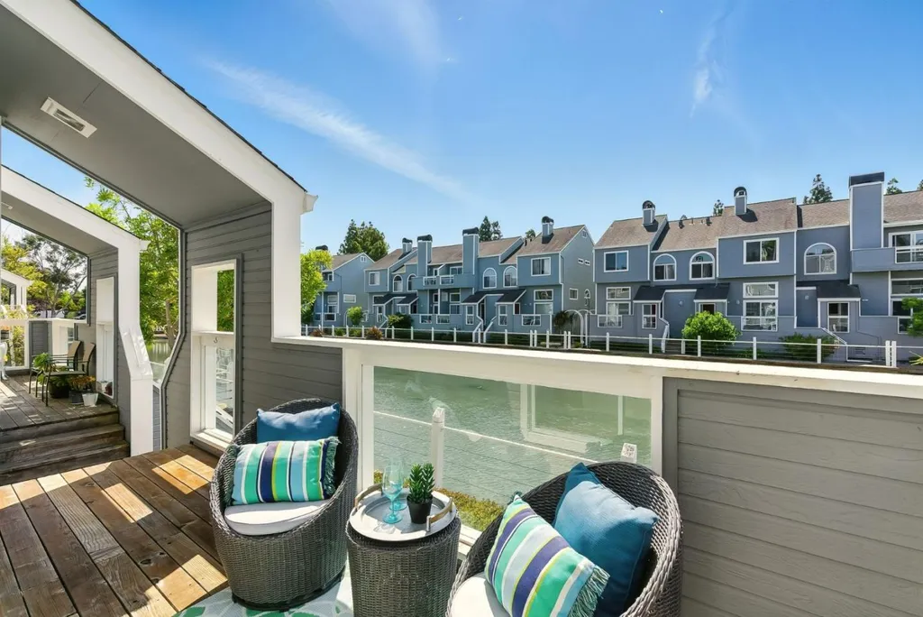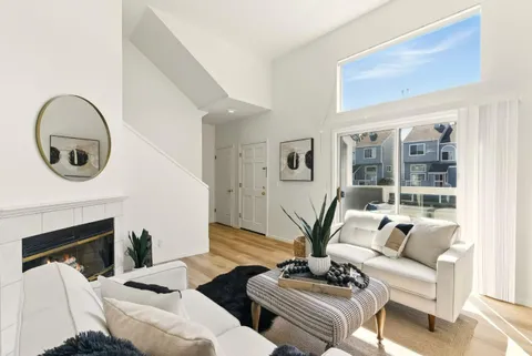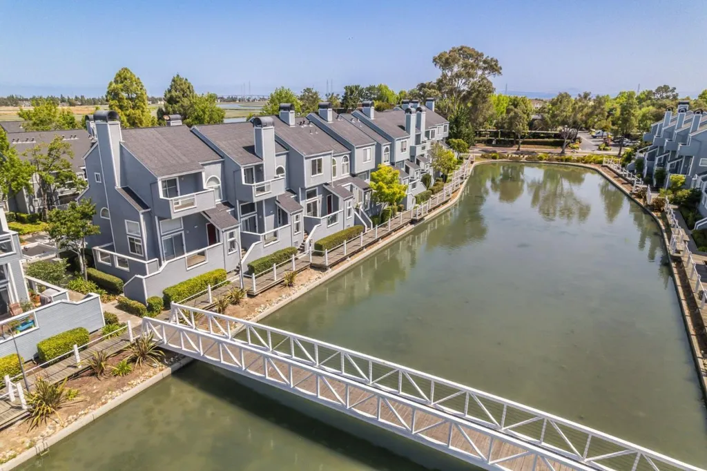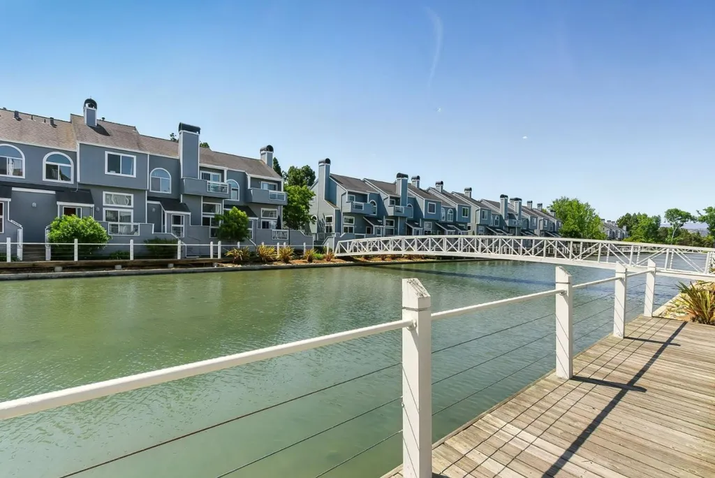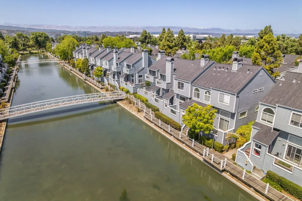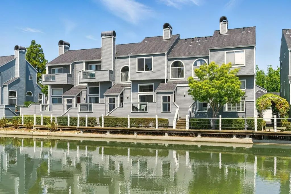Enjoy spectacular waterfront living in this beautifully upgraded 3 bedroom, 2.5 bathroom townhome in desirable Redwood Shores. Set along a wide canal framed by picturesque footbridges, this light-filled home features soaring ceilings, brand new luxury vinyl flooring, and new carpet throughout. The open-concept layout includes a spacious kitchen with stainless steel appliances, a connected family room, and a formal dining room that overlooks the living room, complete with a cozy fireplace and serene water views. Upstairs, you'll find three bedrooms and two bathrooms, including a luxurious primary suite with vaulted ceilings, a walk-in closet, and dual vanity. Step outside the living room to a peaceful front deck, perfect for bird watching, al fresco dining, or simply taking in the tranquil water views. The home also offers an attached two-car garage with a washer, dryer, and plenty of extra storage. Enjoy access to excellent schools, scenic trails, nearby shops, and easy commute routes. Community amenities include a sparkling pool and spa, ideal for warm summer days. Don't miss this rare opportunity to live waterside in one of the Peninsulas most sought-after neighborhoods!