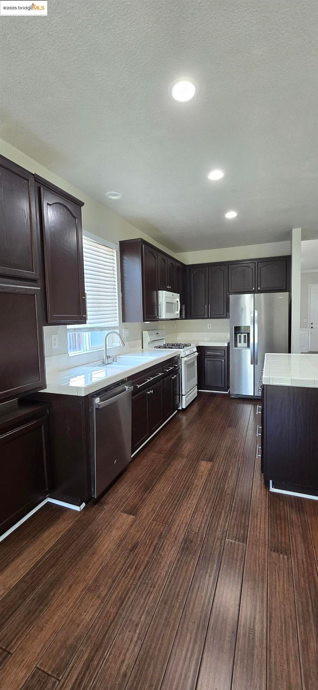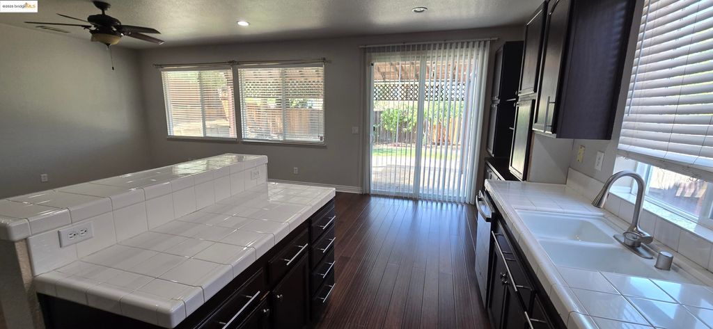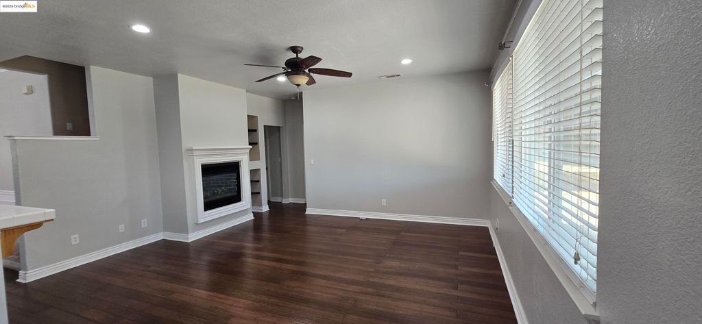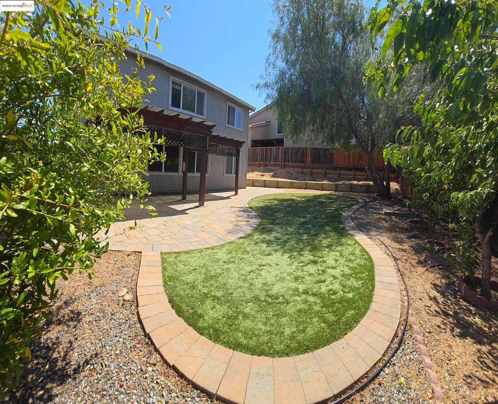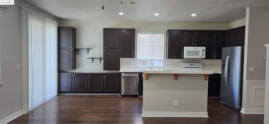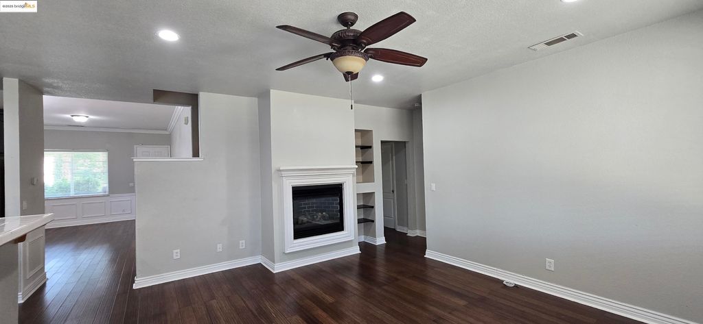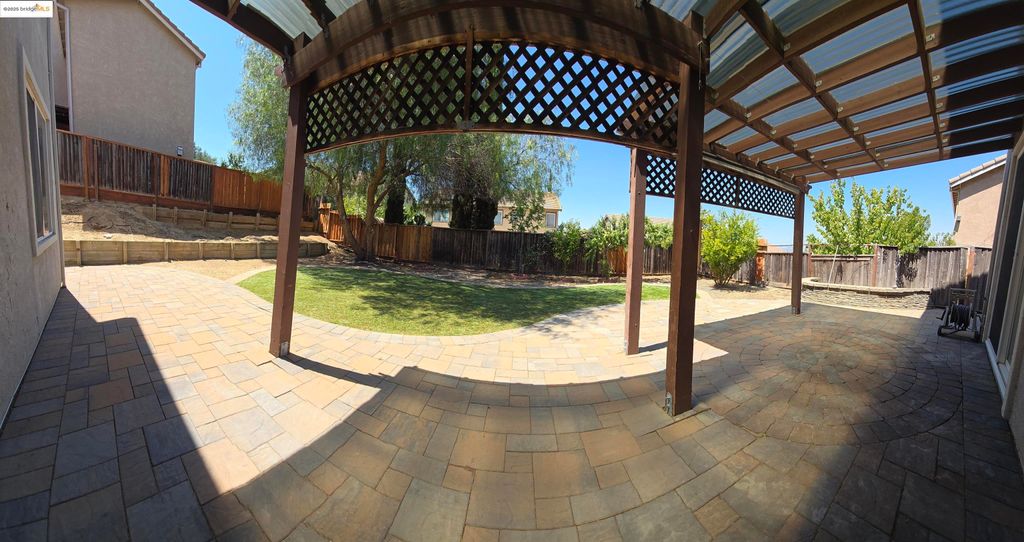 Step through the inviting covered porch into a spacious living room featuring classic raised-panel wainscoting, crown molding, and an adjacent formal dining area. The open-concept kitchen is a chef's delight, complete with a stylish island, pantry, stainless steel refrigerator, and modern finishes - perfect for entertaining. The family room, with its cozy gas fireplace, creates a warm gathering space for friends and family. The thoughtfully designed floor plan includes a guest bedroom and full bath on the main level - ideal for visitors or a home office. Downstairs showcases new, high-quality laminate flooring throughout, adding a sleek, modern touch. Upstairs, you'll find three additional bedrooms, including a versatile bonus room, and a serene primary suite with a private office nook, walk-in closet, and luxurious en-suite bath. A convenient upstairs laundry with a washer and dryer is also included. The backyard offers a great space for entertaining or weekend relaxation. Conveniently located near Bay Point BART, with easy freeway access and just minutes from shopping.